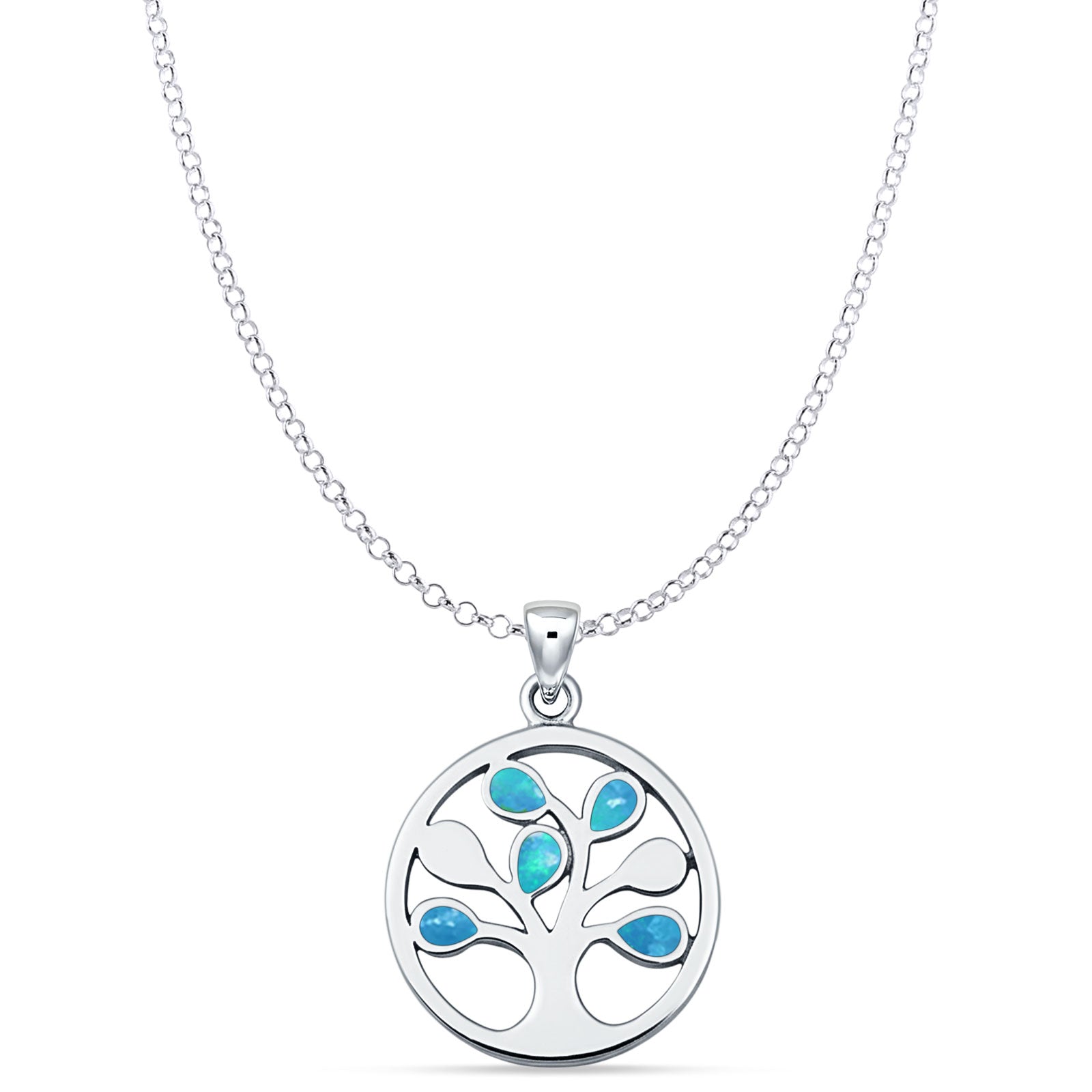 Style: Lab Created Blue Opal Tree Pendant Necklace