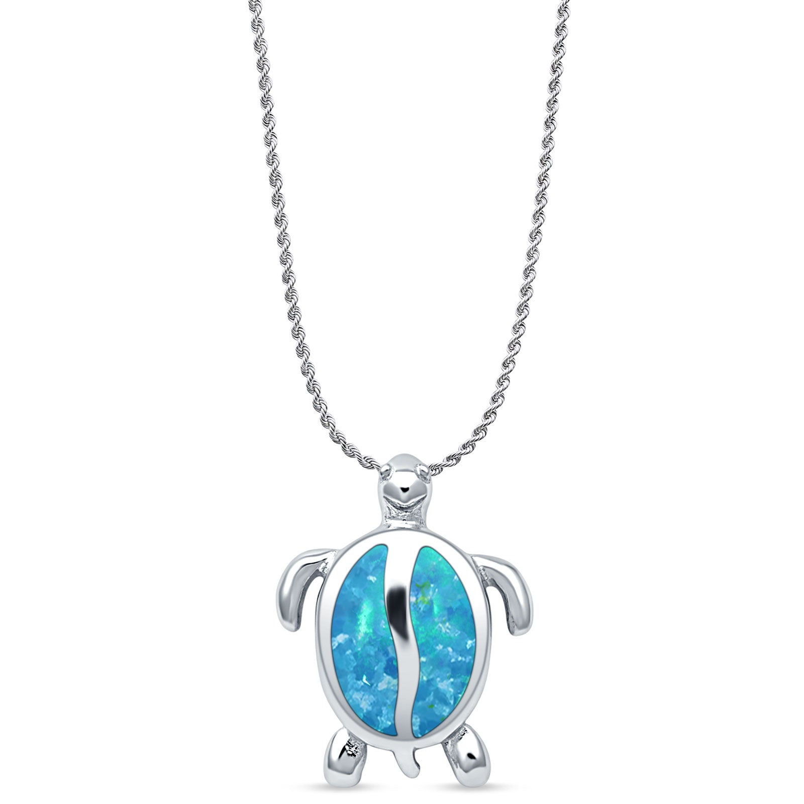 Style: Lab Created Blue Opal Turtle Pendant Necklace