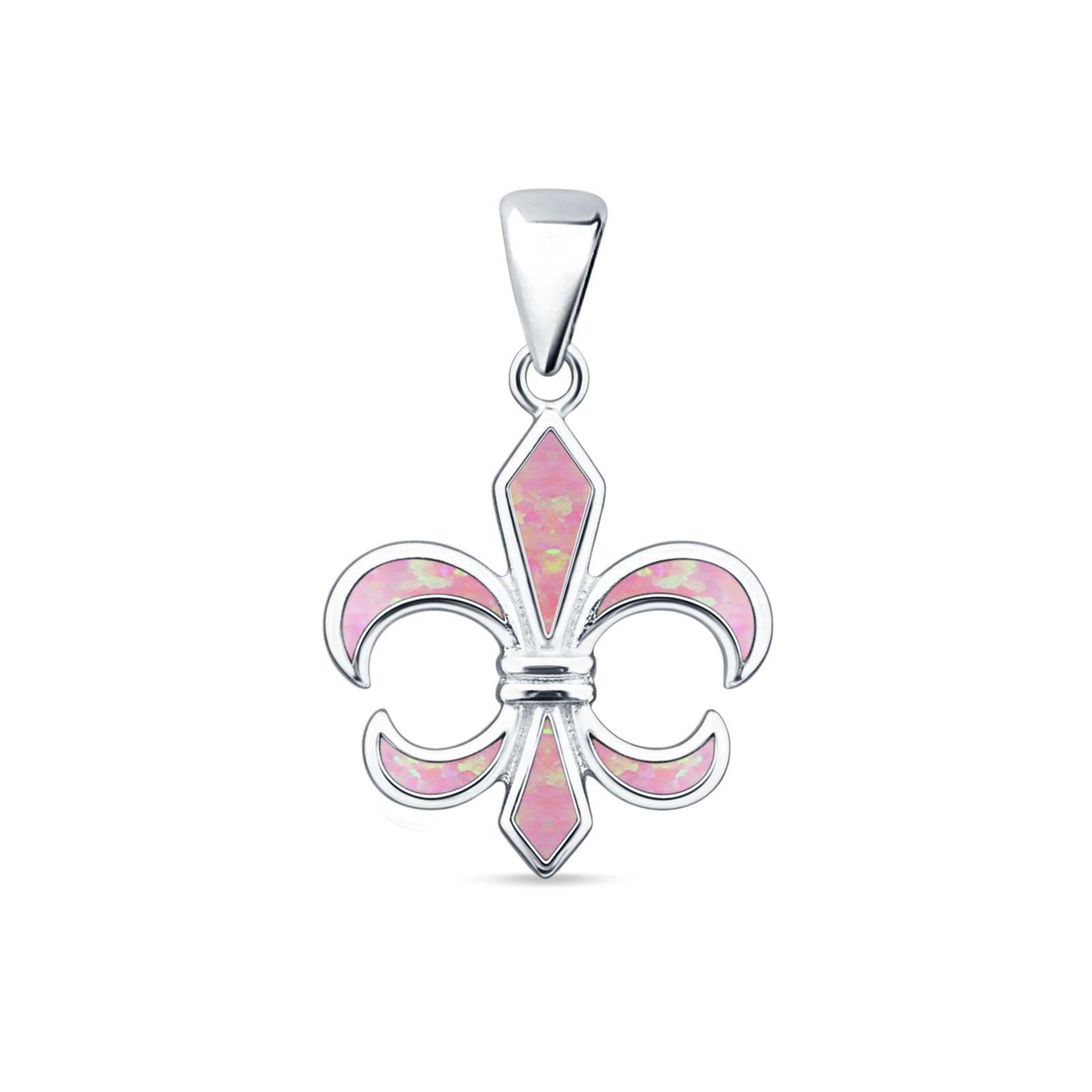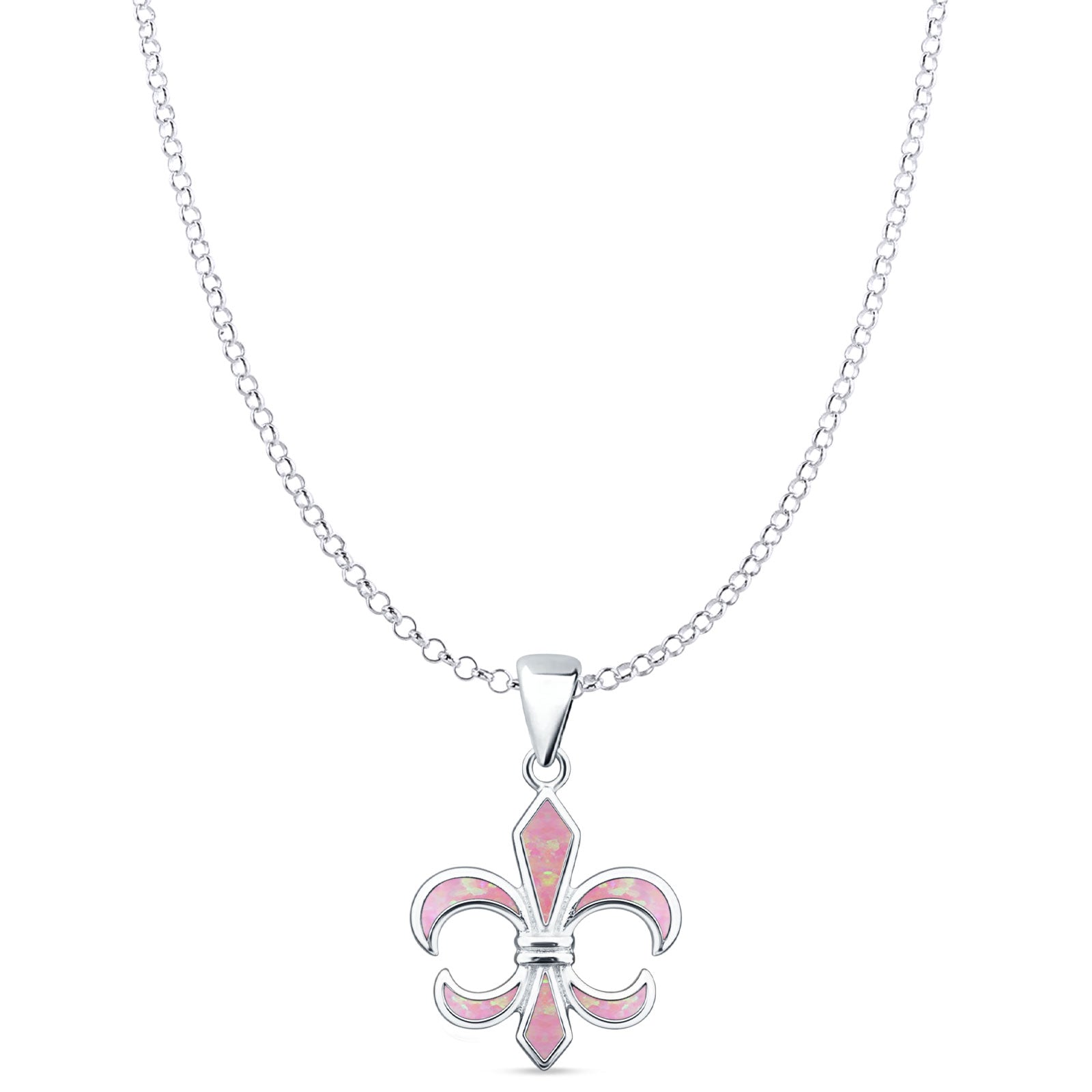 Lab Created Pink Opal Fleur De Lis Pendant Rolo Chain Necklace 925 Sterling Silver