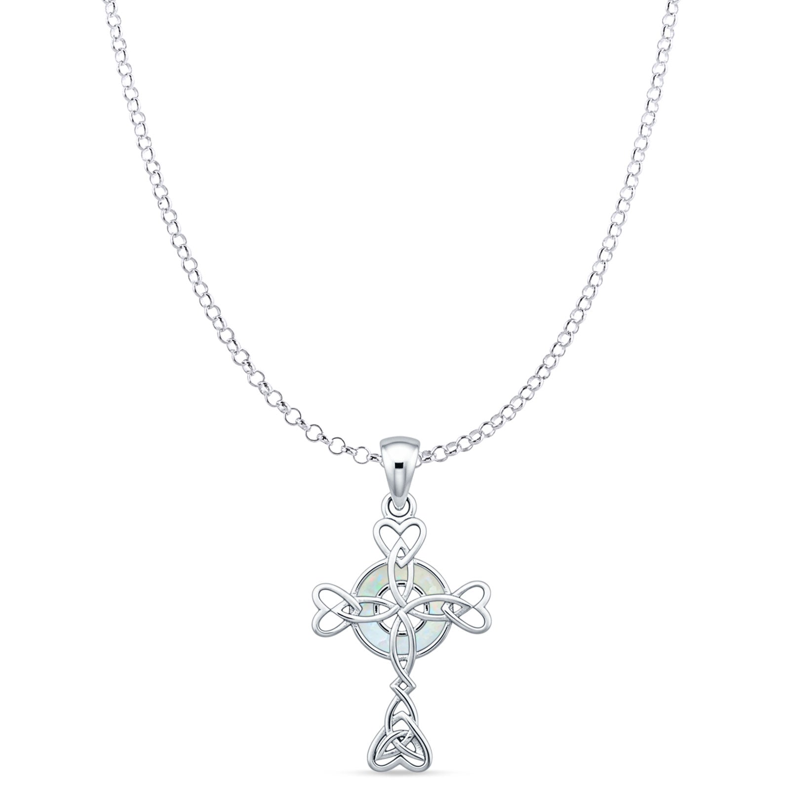 Style: Lab Created White Opal Celtic Cross Pendant Necklace