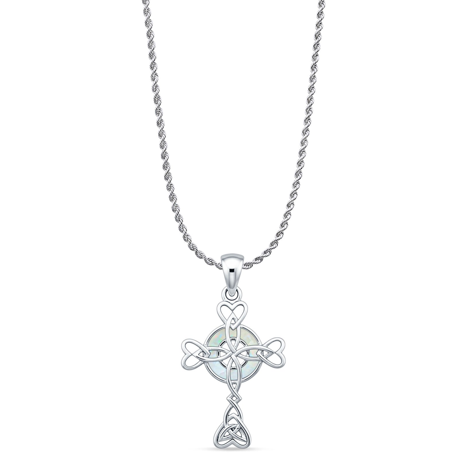 Style: Lab Created White Opal Celtic Cross Pendant Necklace
