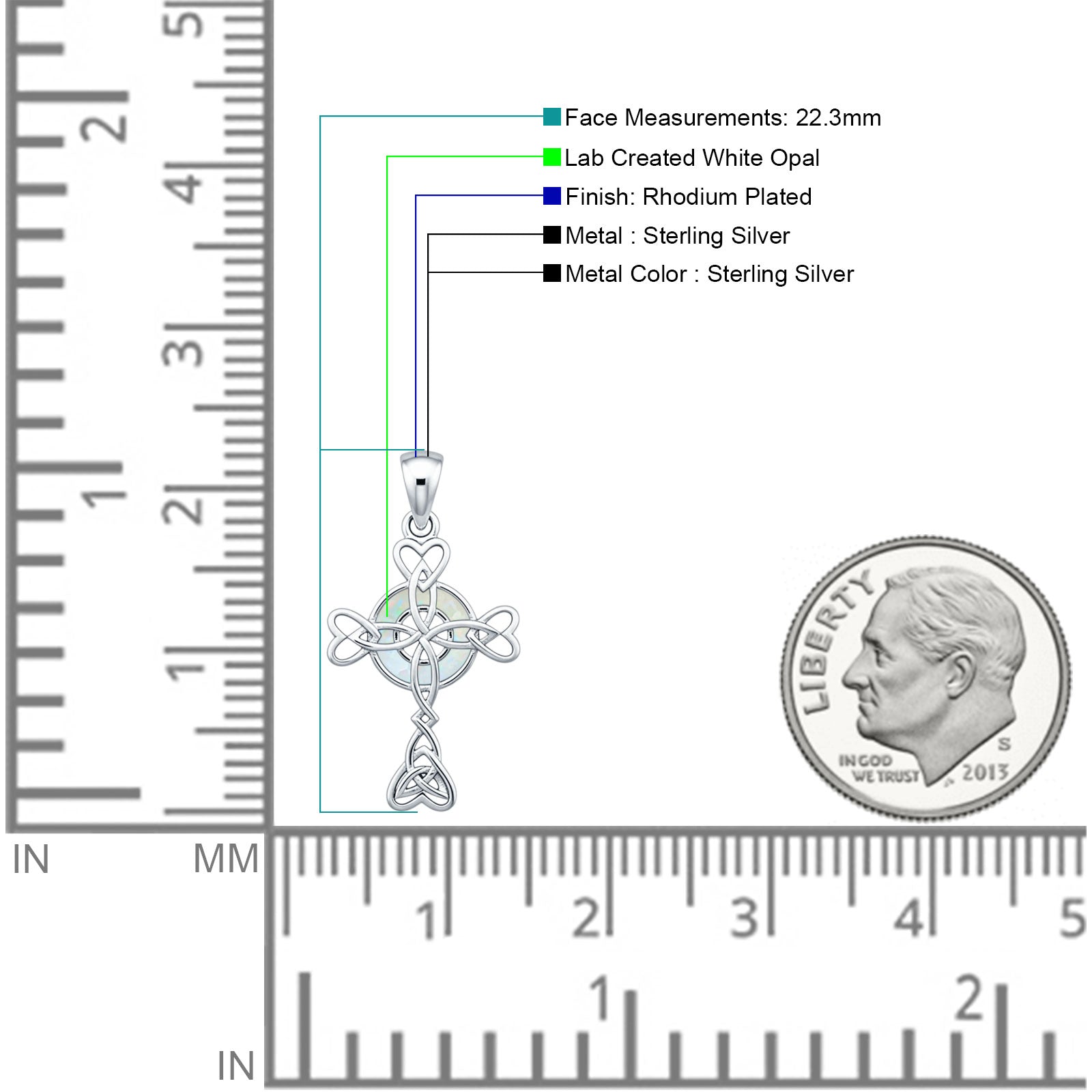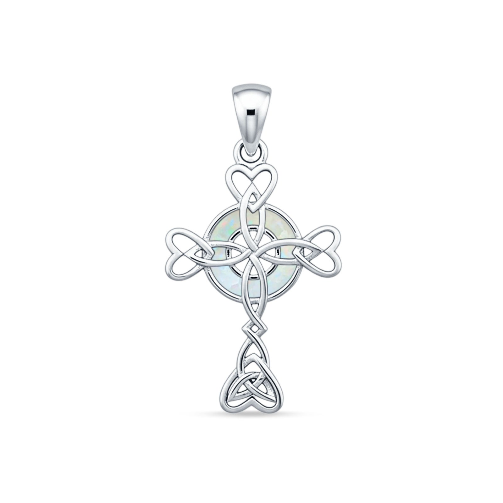 Style: Lab Created White Opal Celtic Cross Pendant Necklace