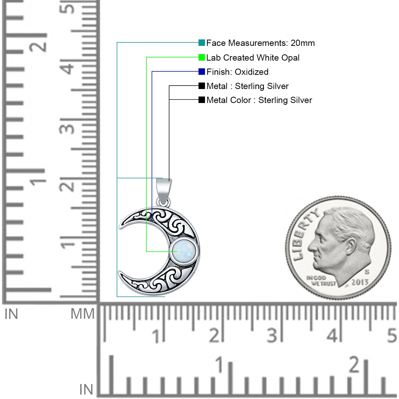 Style: Lab Created White Opal Oxidized Celtic Moon Pendant Necklace