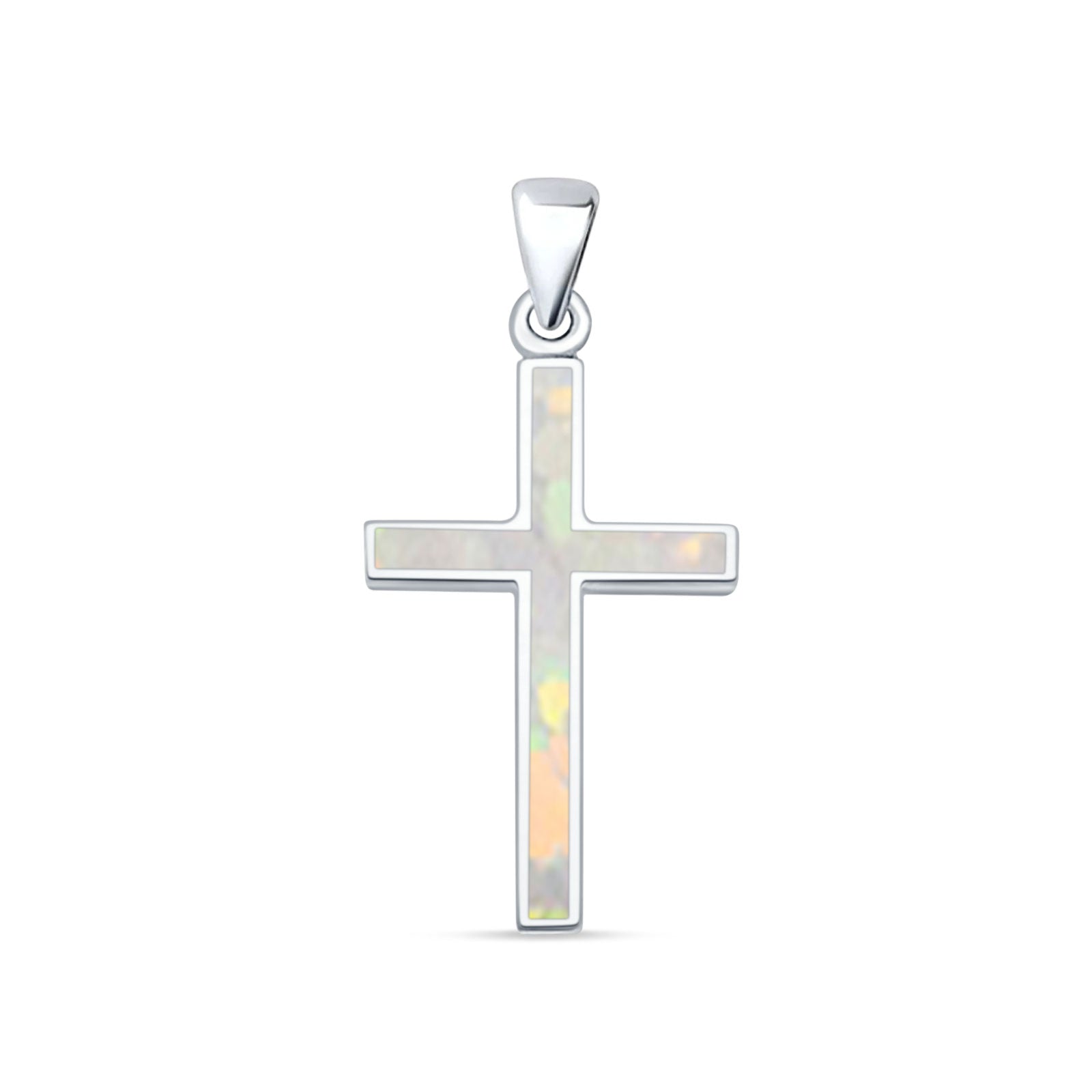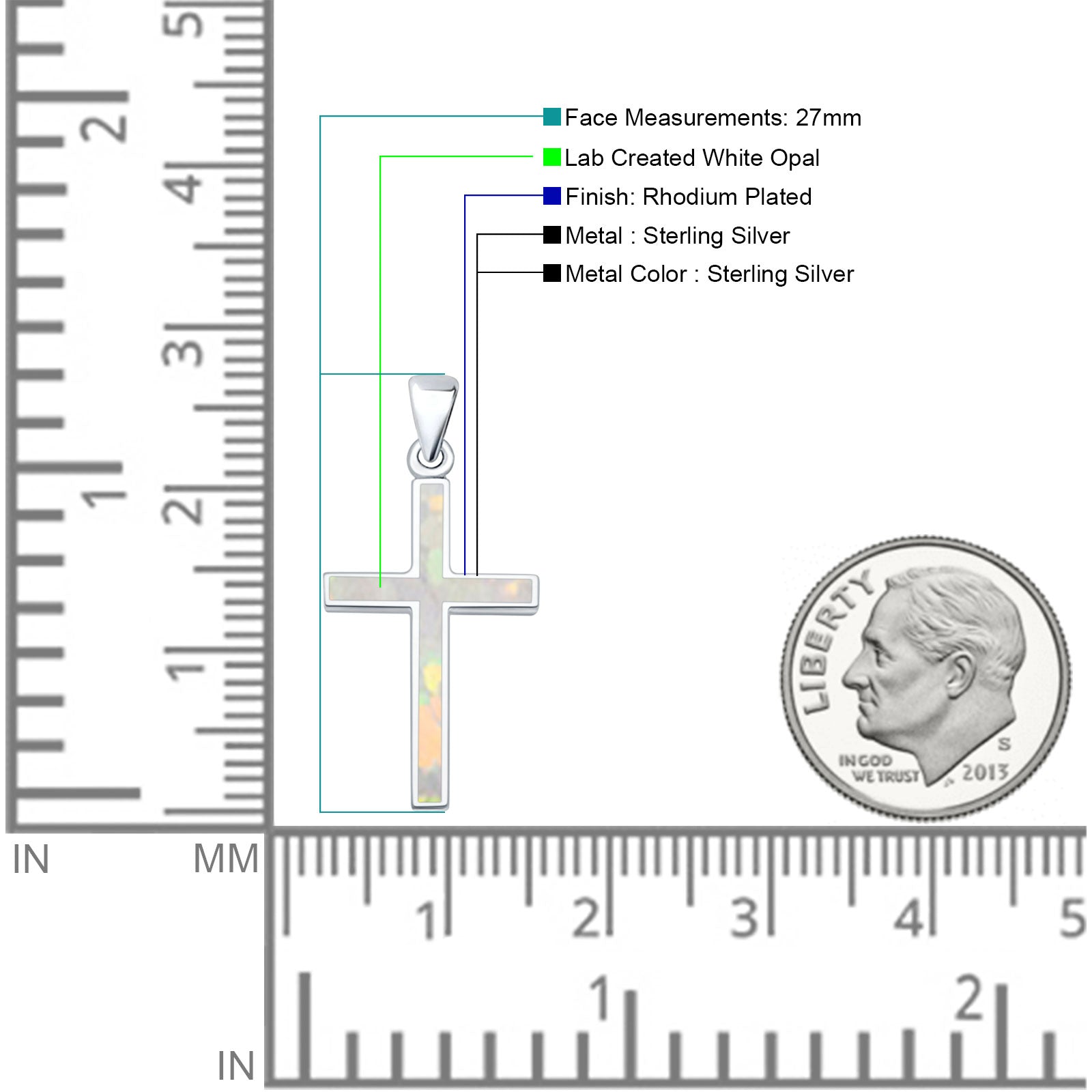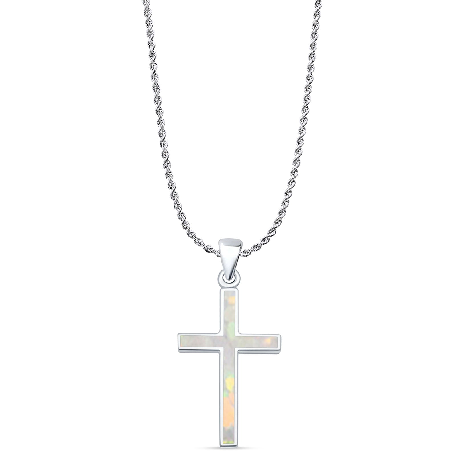 Lab Created White Opal Cross Pendant Rope Chain Necklace 925 Sterling Silver