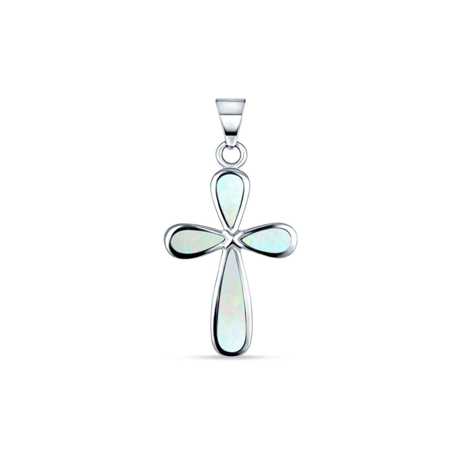 Style: Lab Created White Opal Oxidized Cross Pendant Necklace