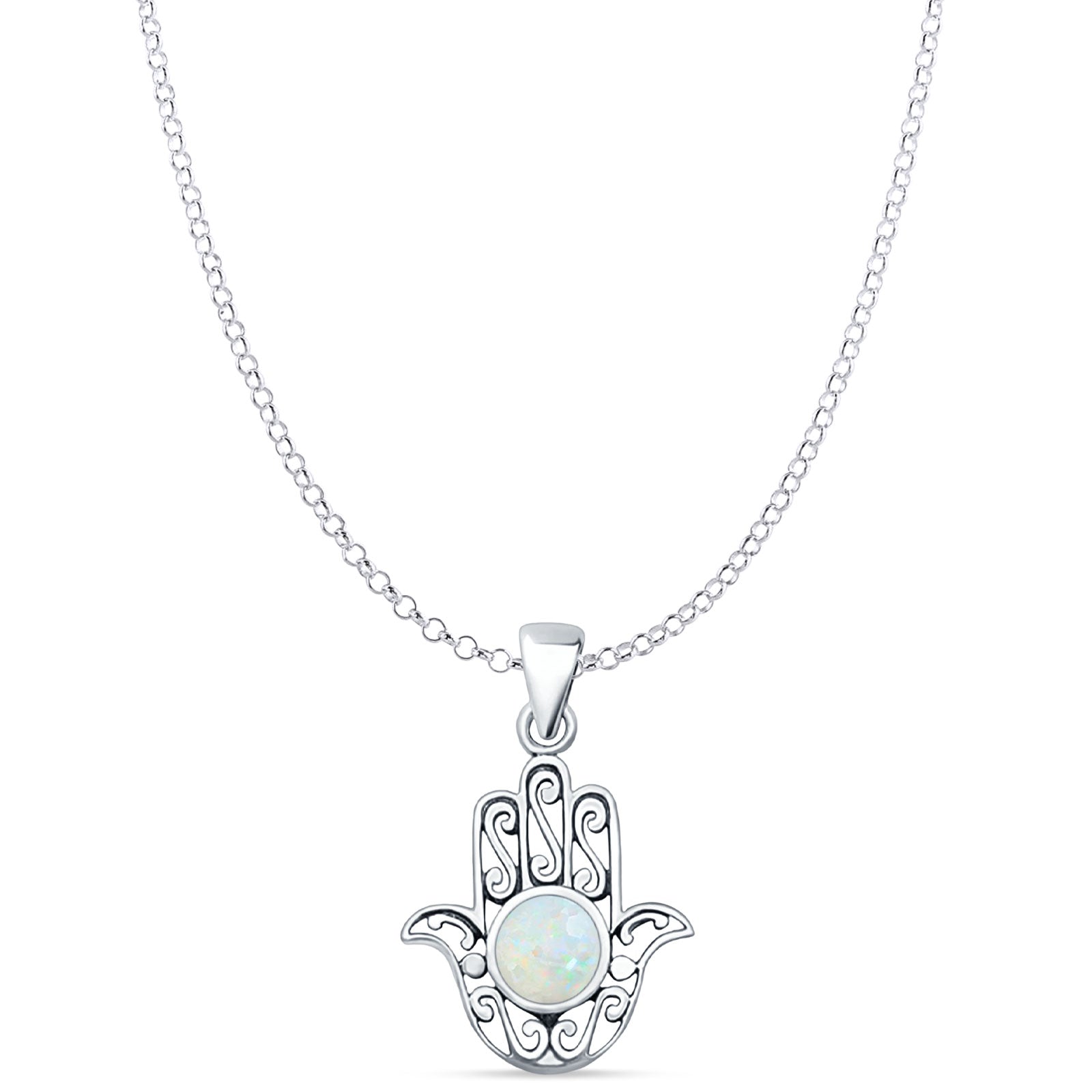 Style: Lab Created White Opal Hand Of Hamsa Pendant Necklace
