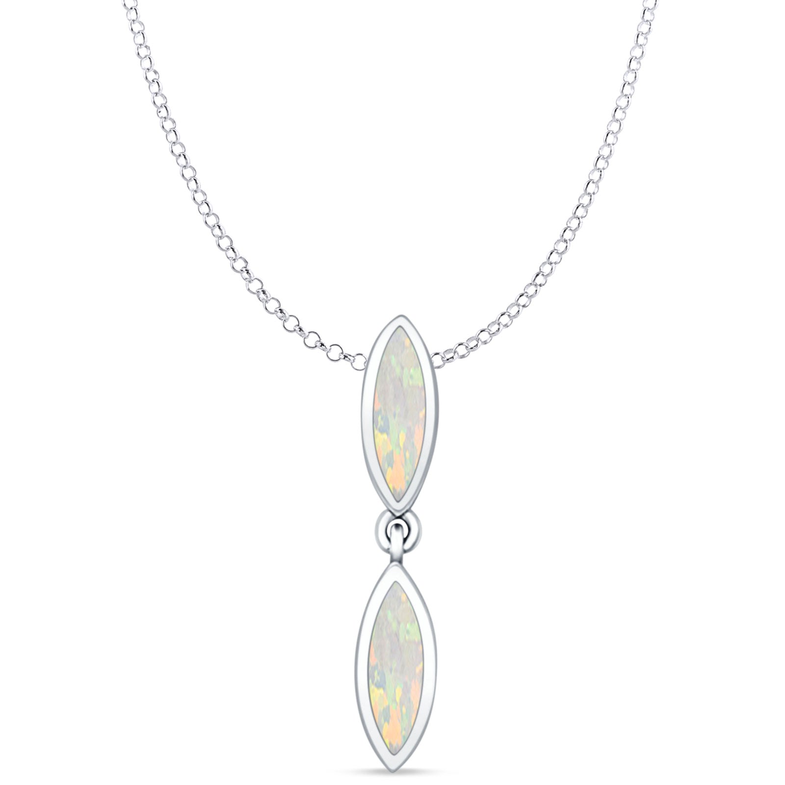 Style: Lab Created White Opal Marquise Dangle Pendant Necklace