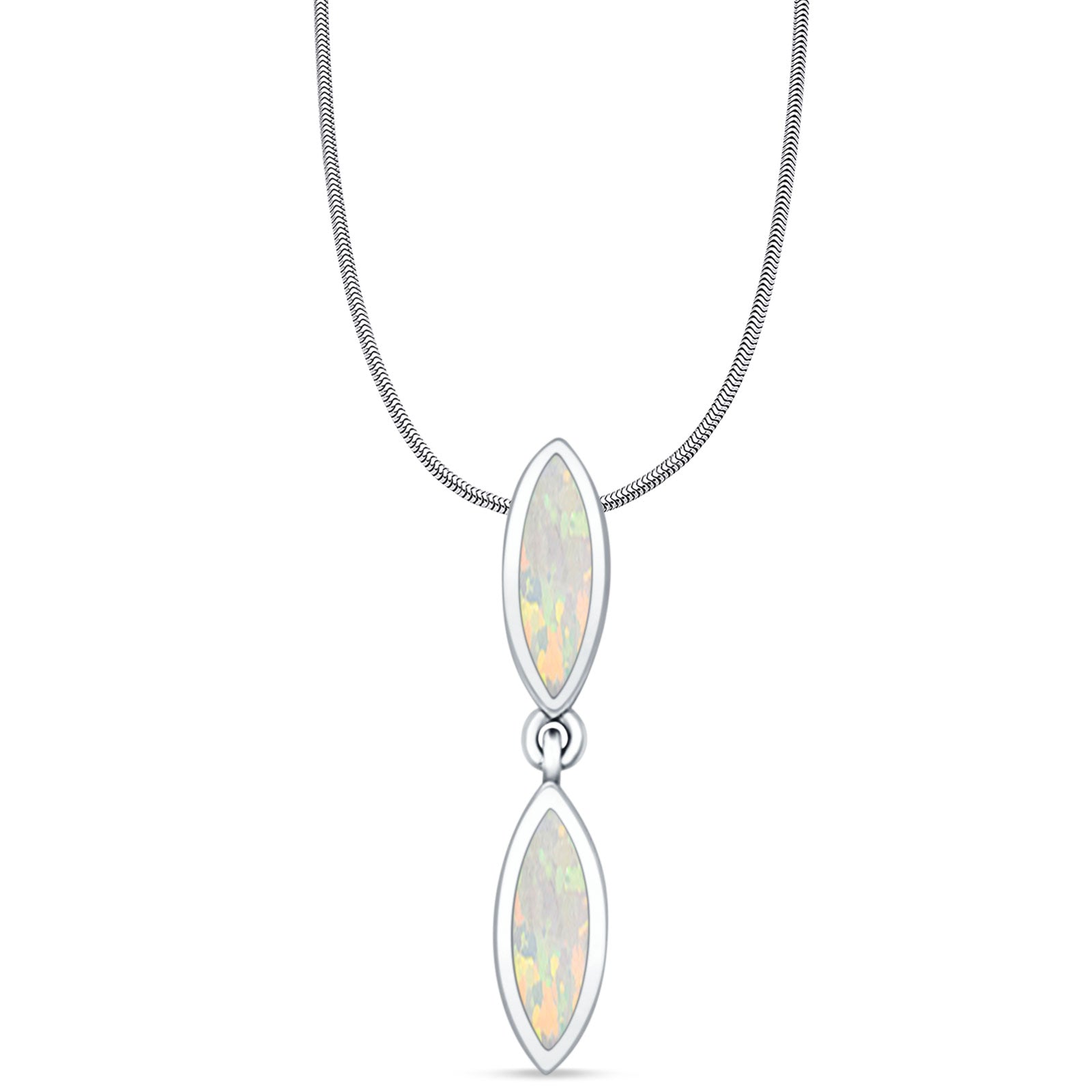 Lab Created White Opal Marquise Dangle Pendant Snake Chain Necklace 925 Sterling Silver