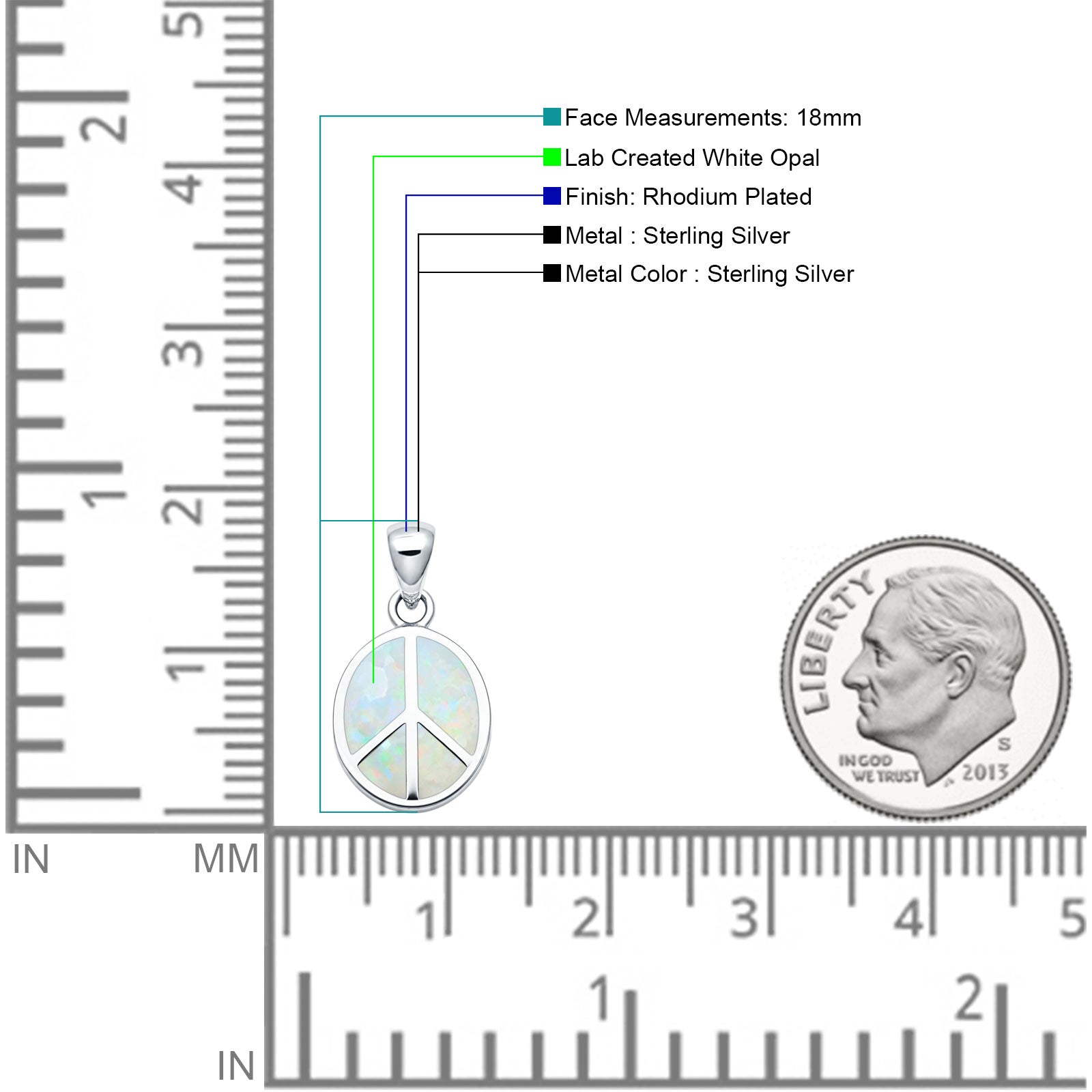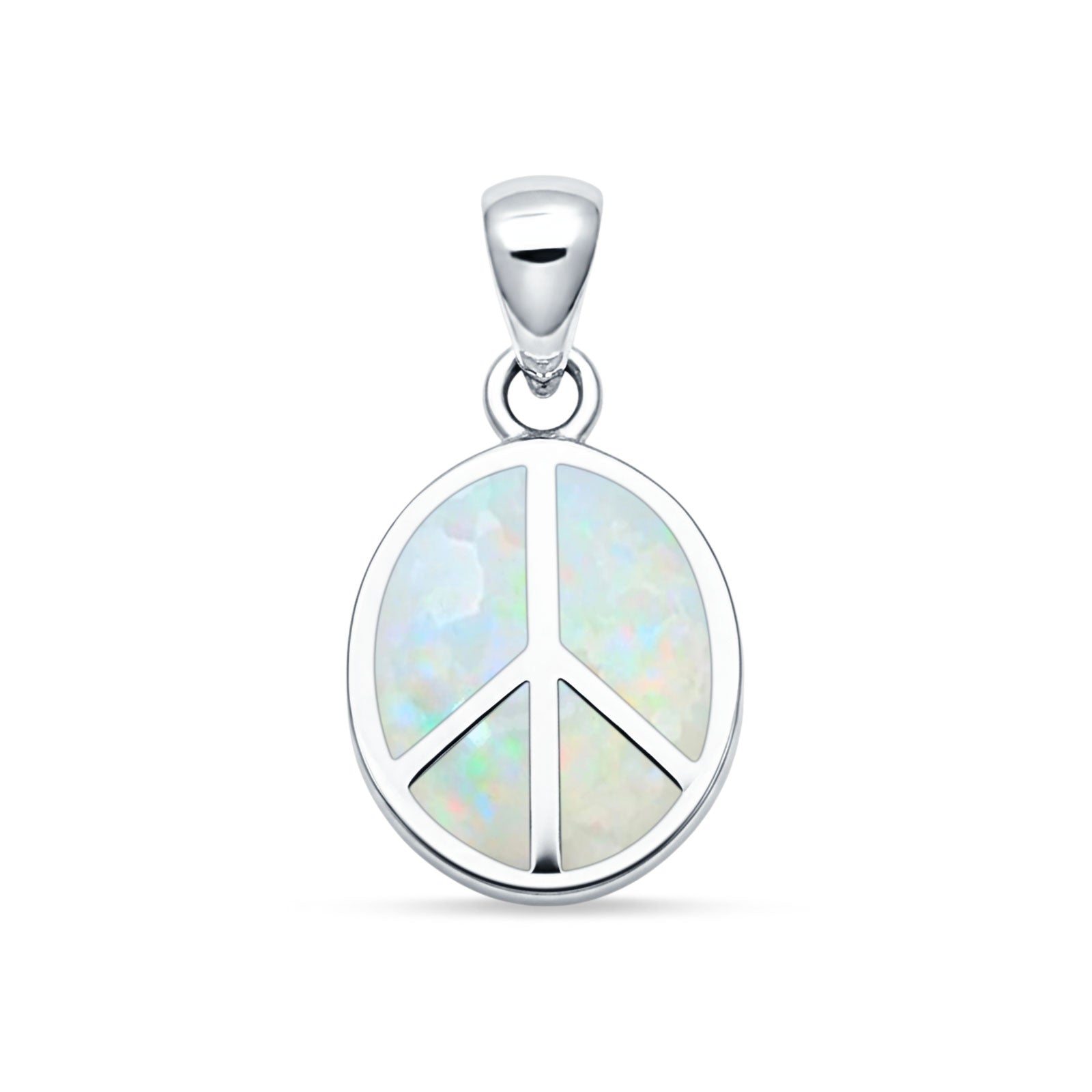 Style: Lab Created White Opal Oval Peace Sign Pendant Necklace