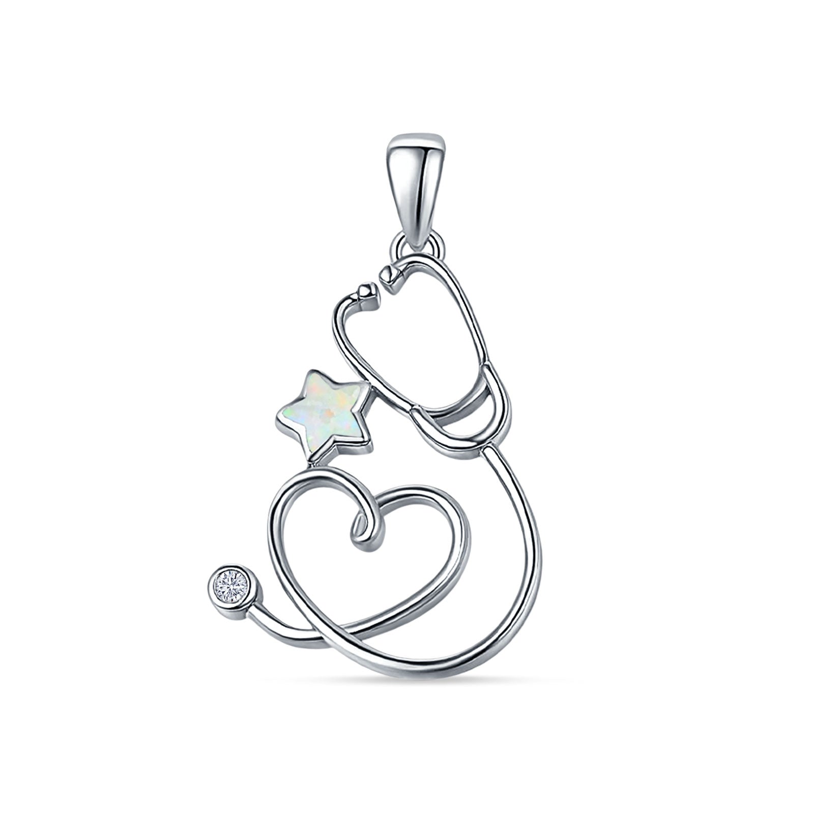 Style: Lab Created White Opal Star & Stethoscope Pendant Necklace
