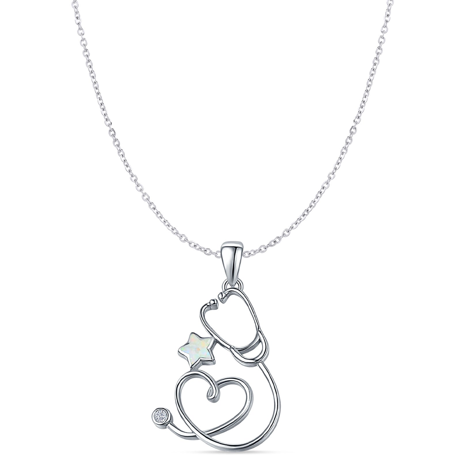Style: Lab Created White Opal Star & Stethoscope Pendant Necklace