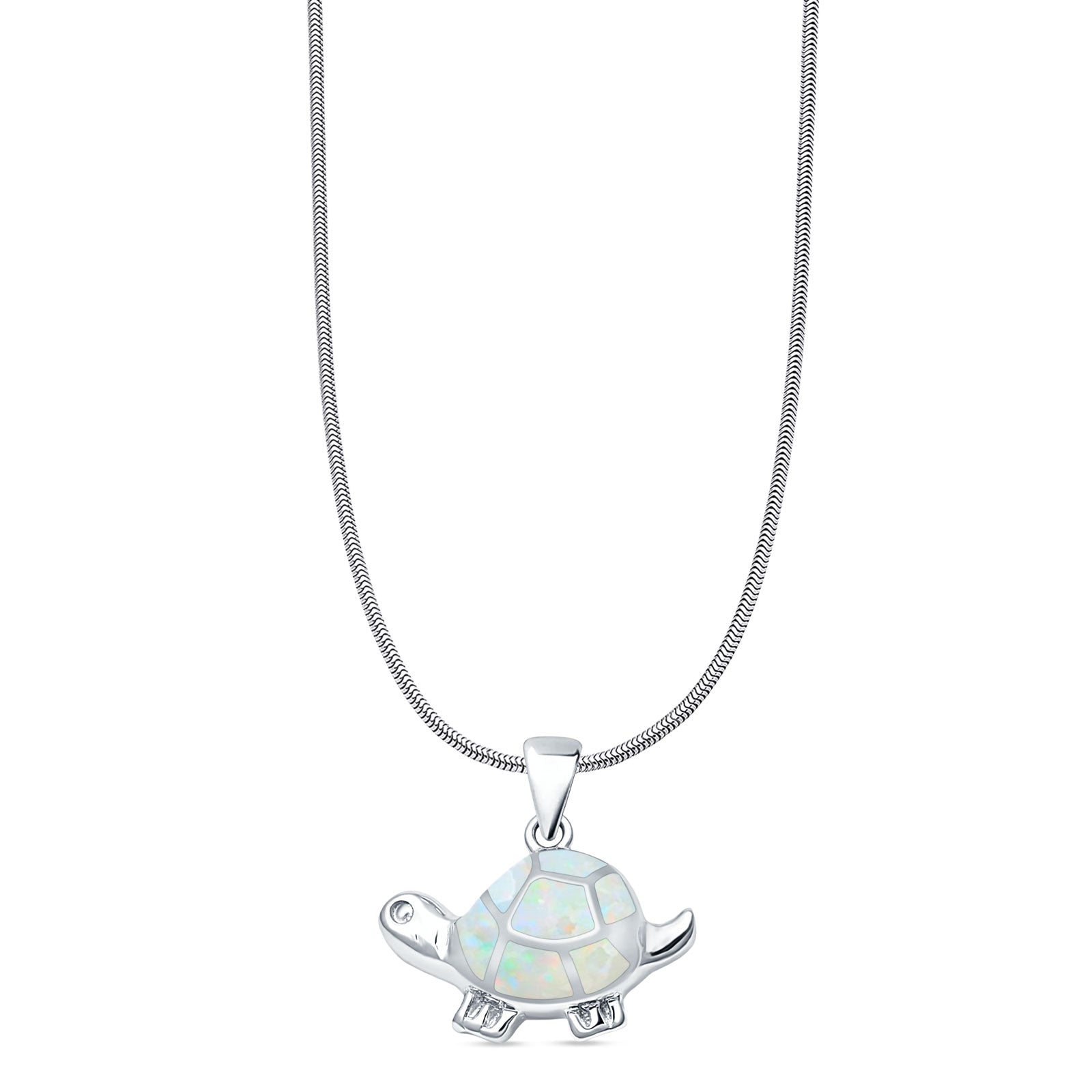Style: Lab Created White Opal Turtle Pendant Necklace