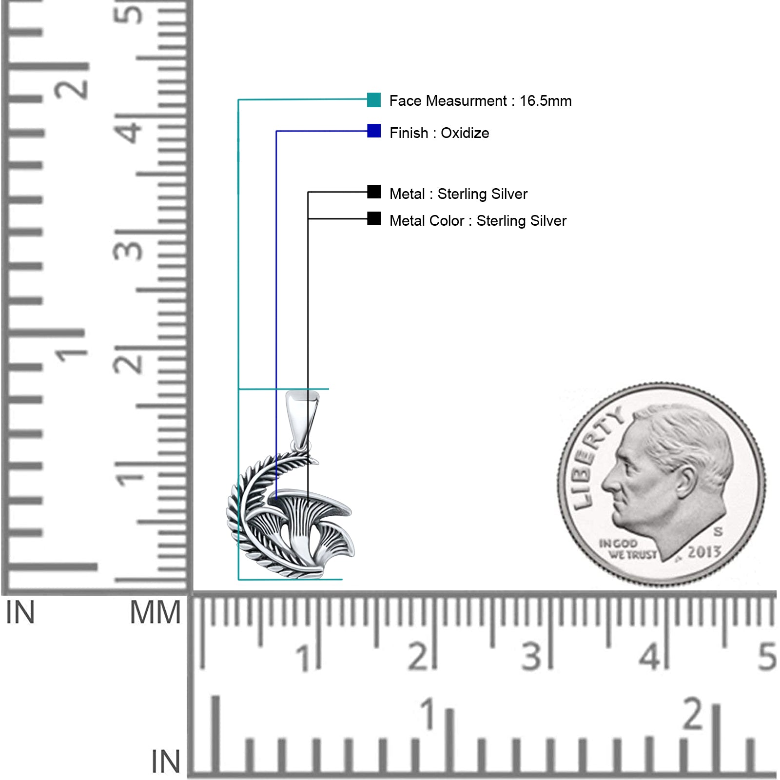 Leaf & Mushroom Pendant Rolo Chain Necklace Oxidized 925 Sterling Silver