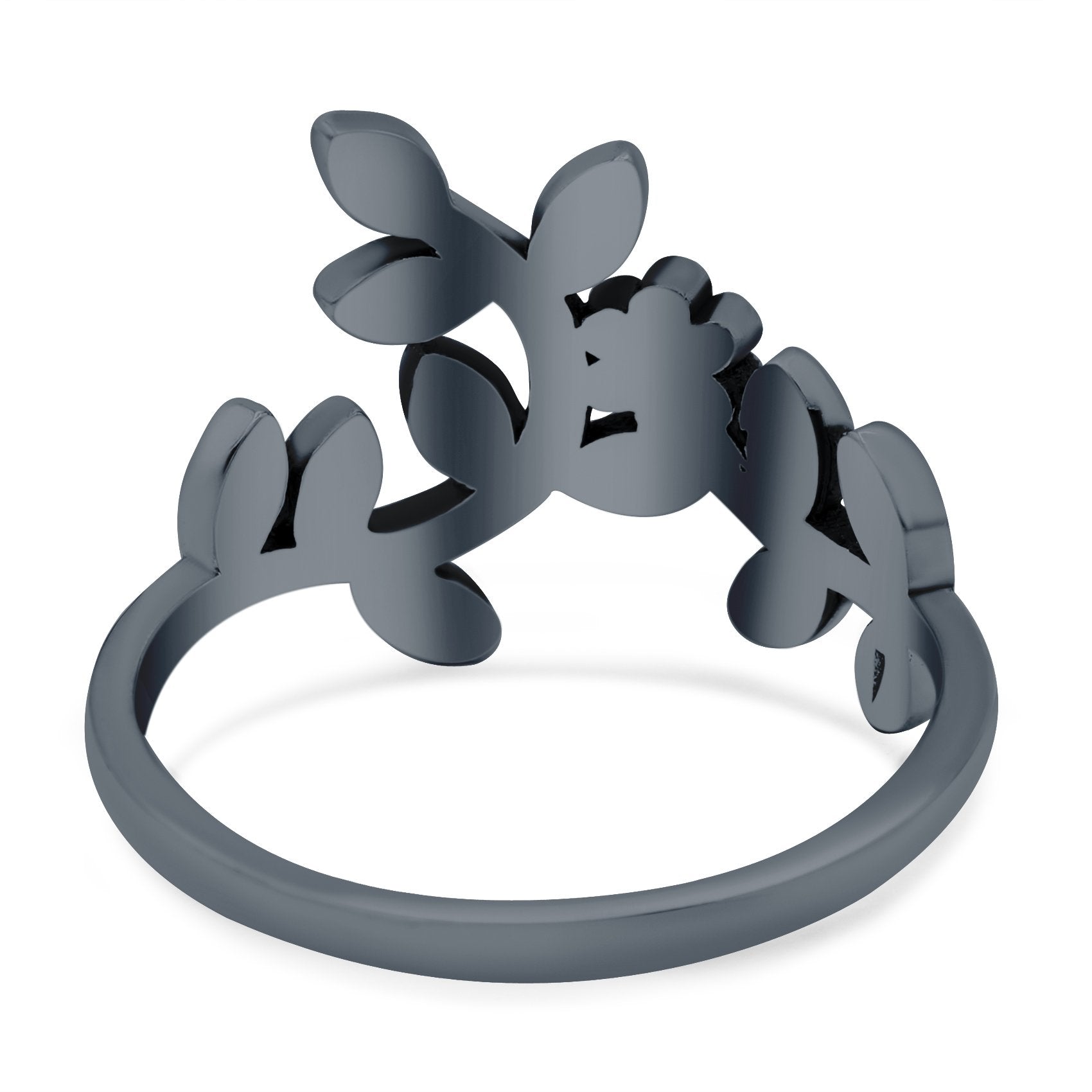 Leaves & Vines Band Oxidized Ring Solid 925 Sterling Silver Thumb Ring (14mm)