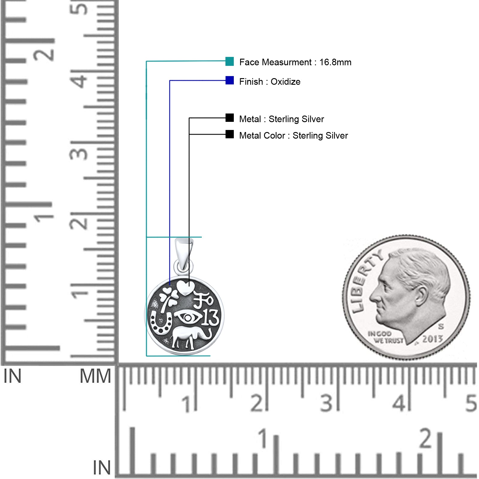 Pendant Length: 16.8mm(0.66 inch)
