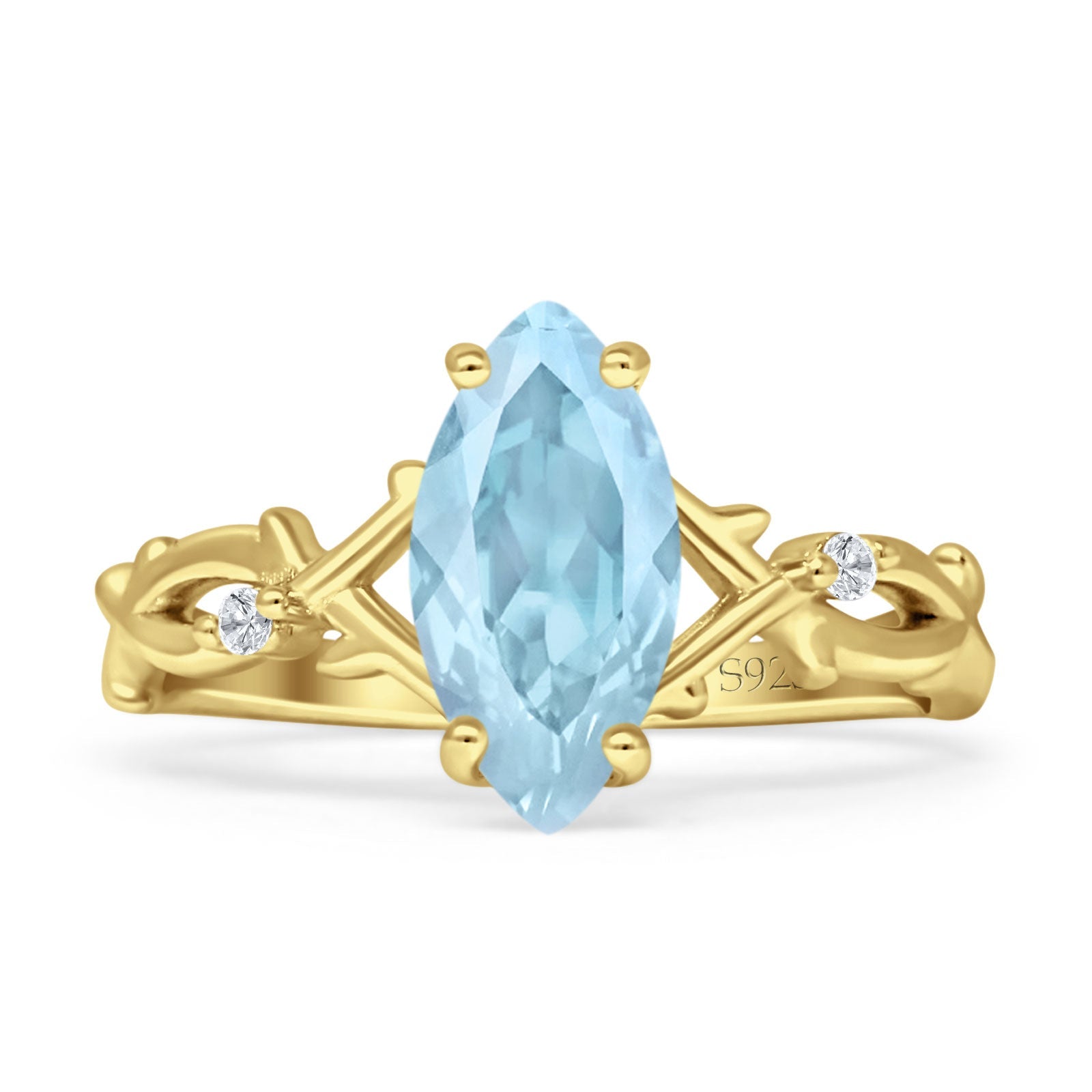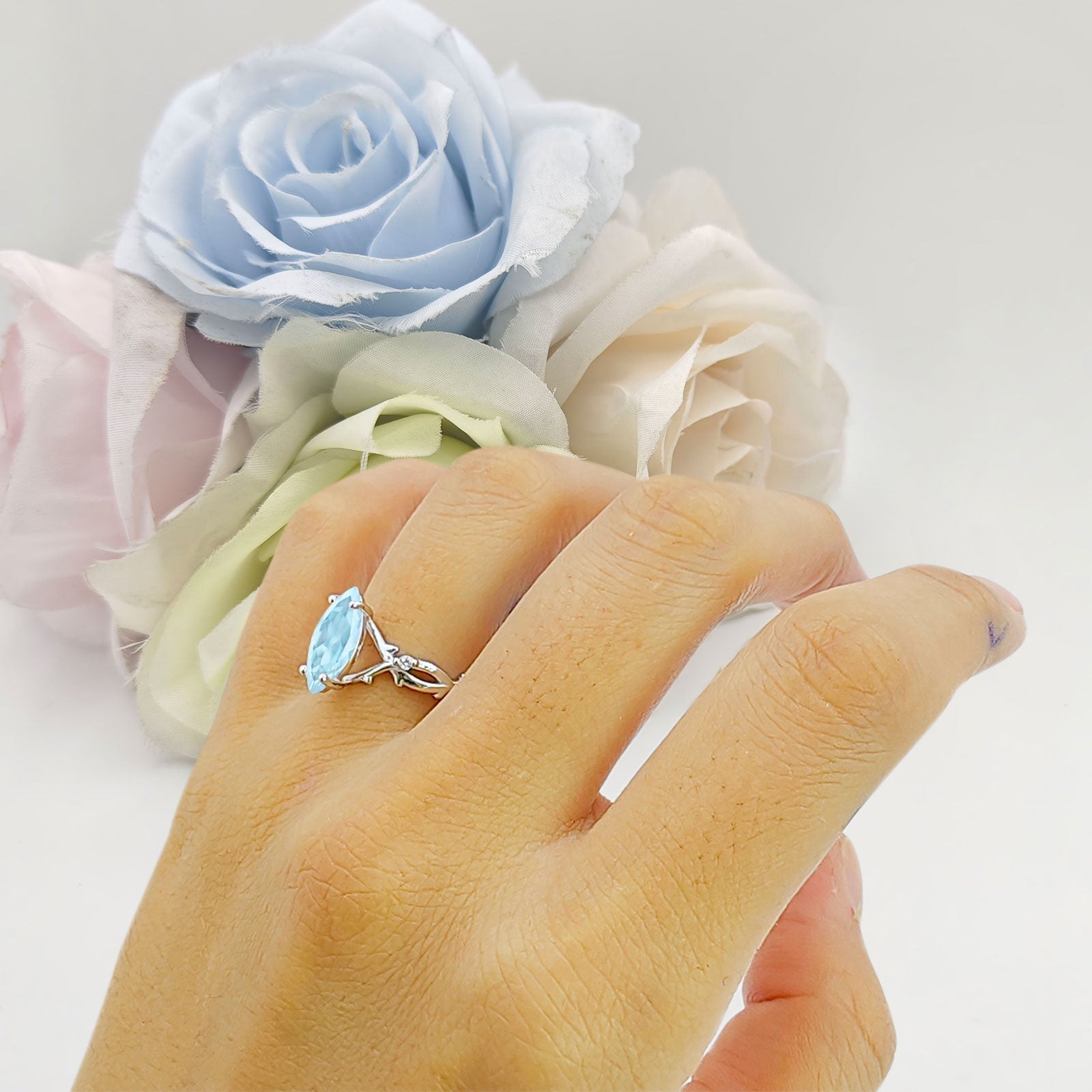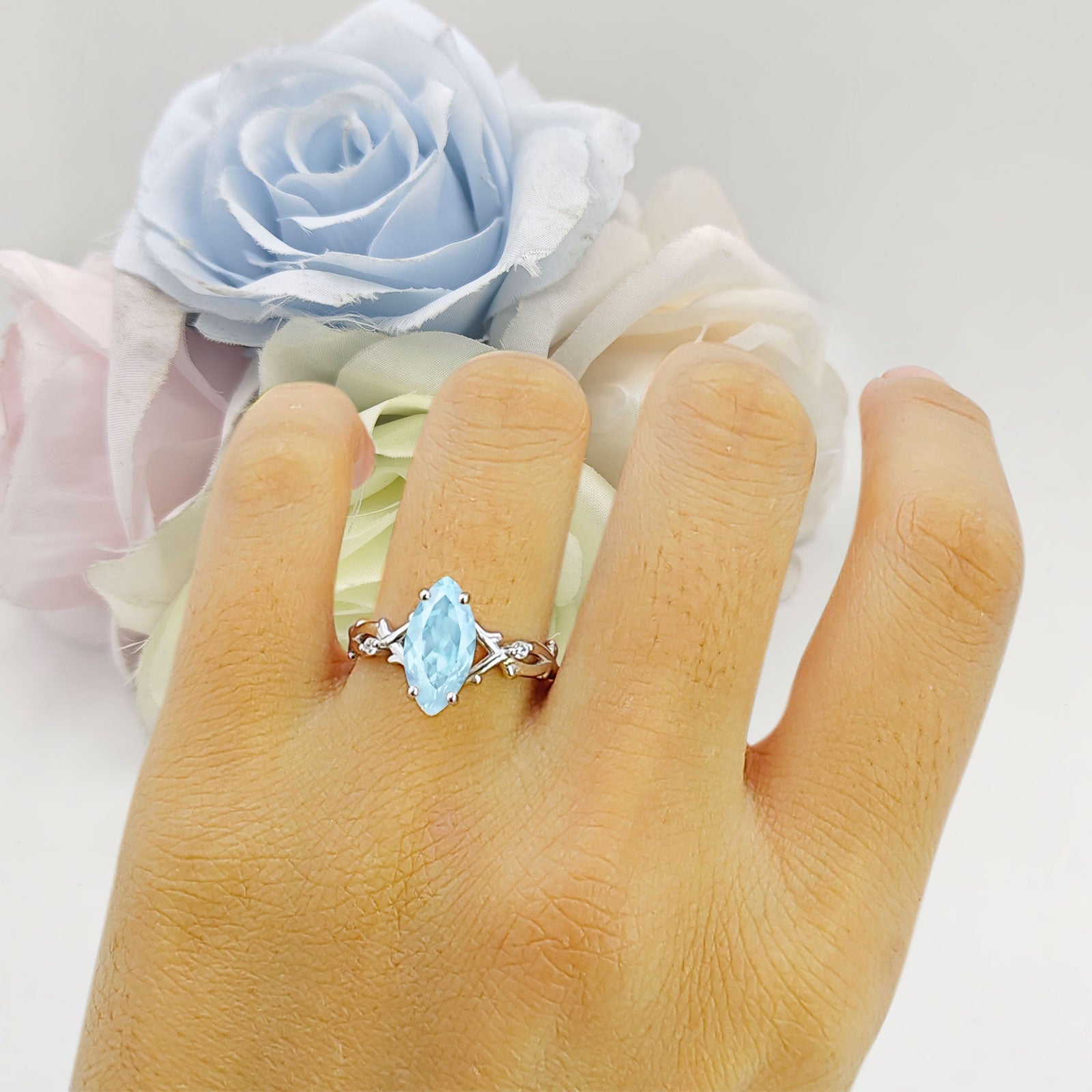 Product Description:Elegance meets sophistication in our marquise natural aquamarine ring. Crafted in solid 925 sterling silver, this exquisite piece features a mesmerizing marquise-cut natural aquamarine stone. Set within a split shank infinity twisted band, this ring exudes timeless charm and contemporary flair. Perfect for adding a touch of sophistication to any ensemble.