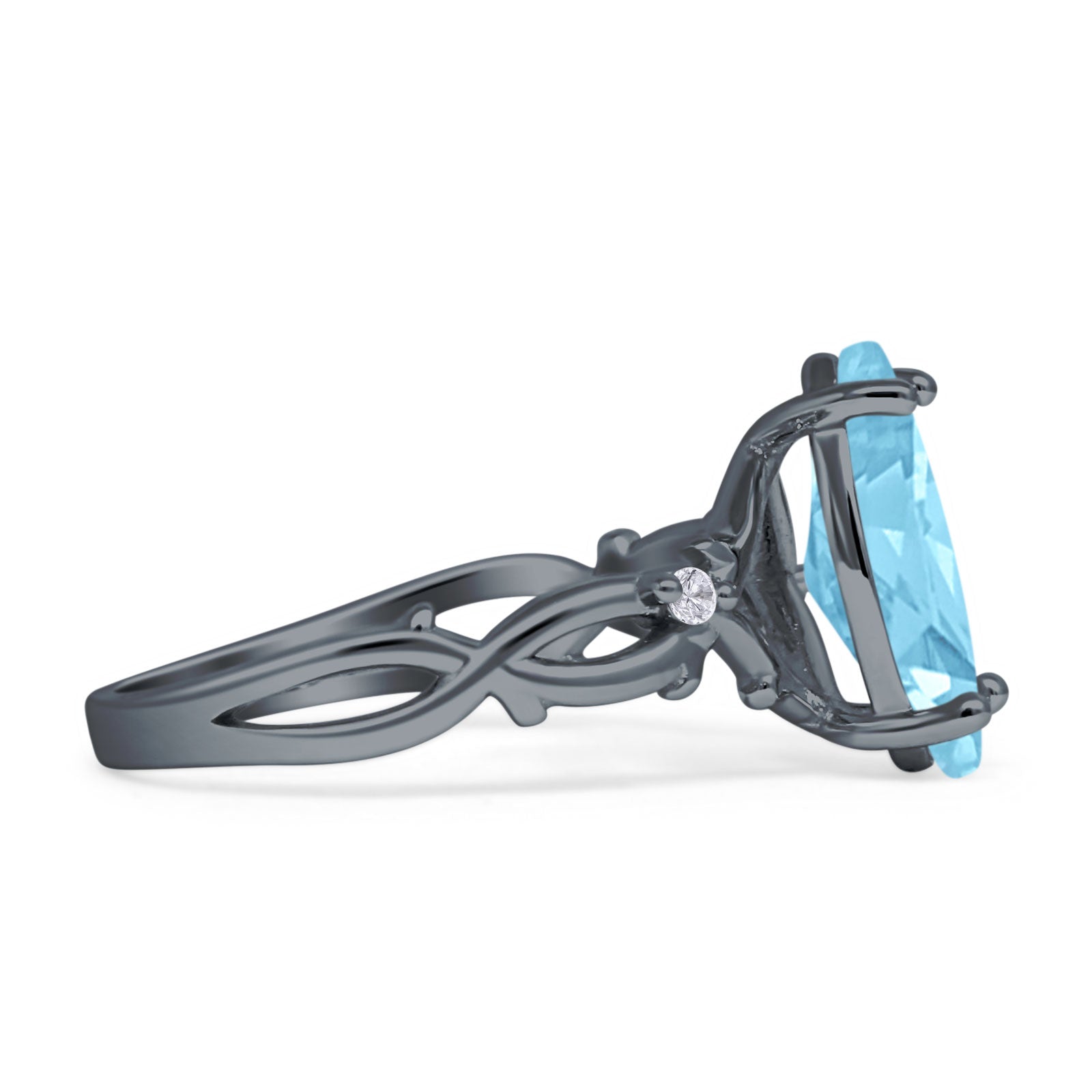 Marquise Natural Aquamarine Split Shank Infinity Twisted Ring 925 Sterling Silver