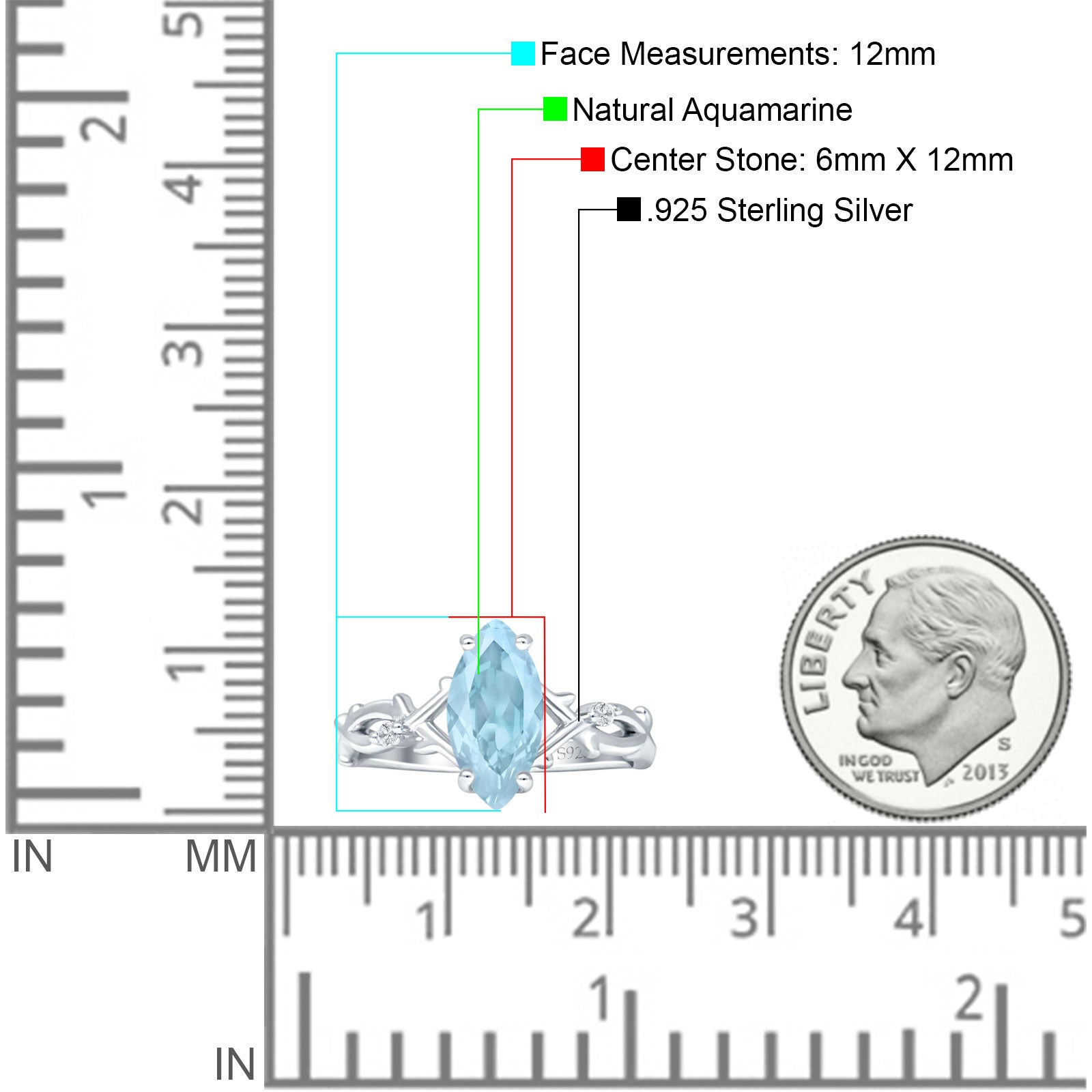Center Stone Measurements: 6mmX12mm