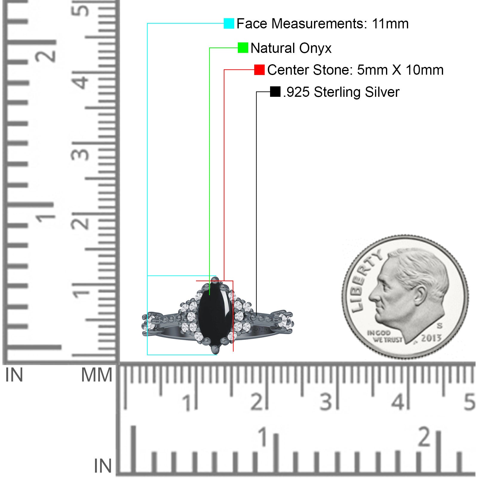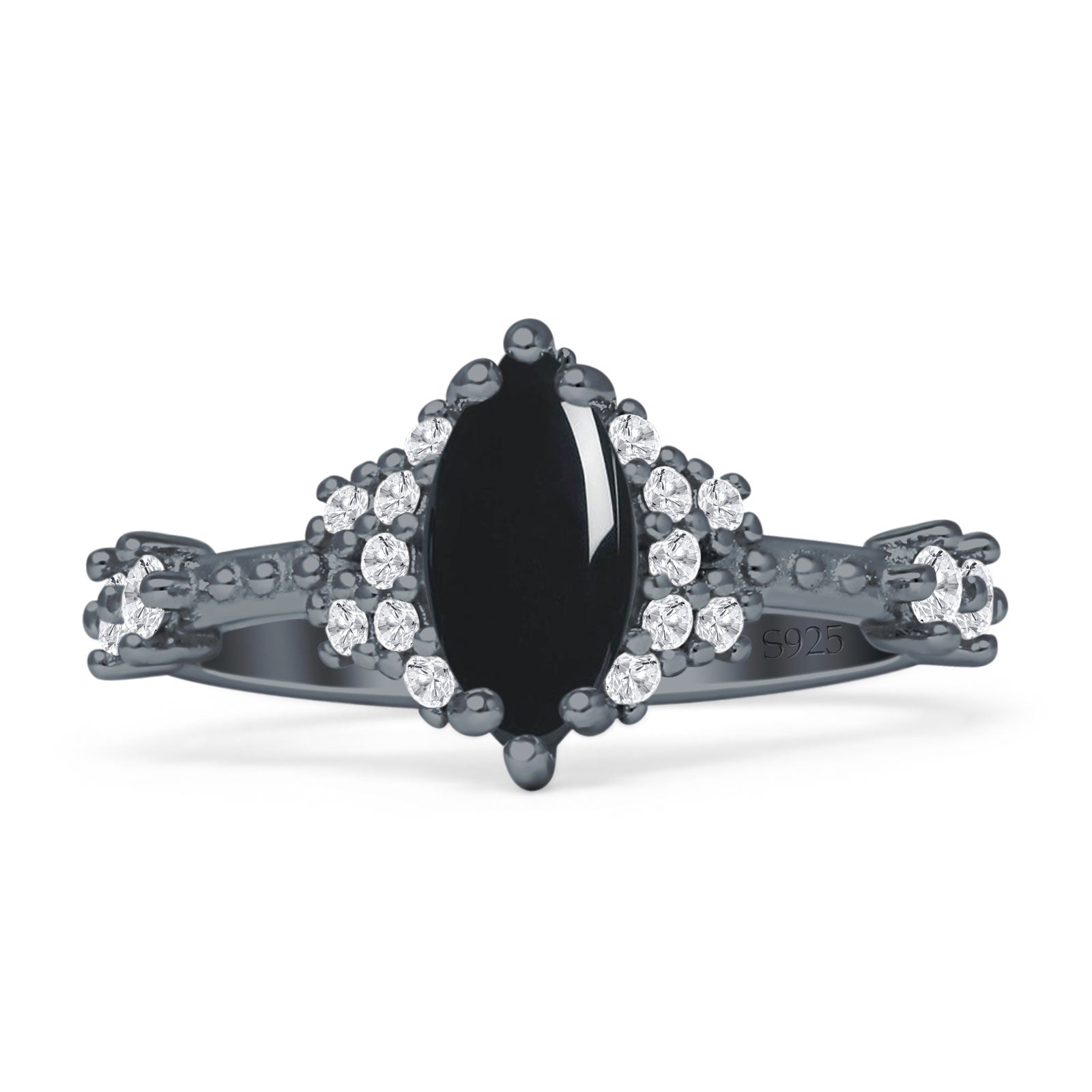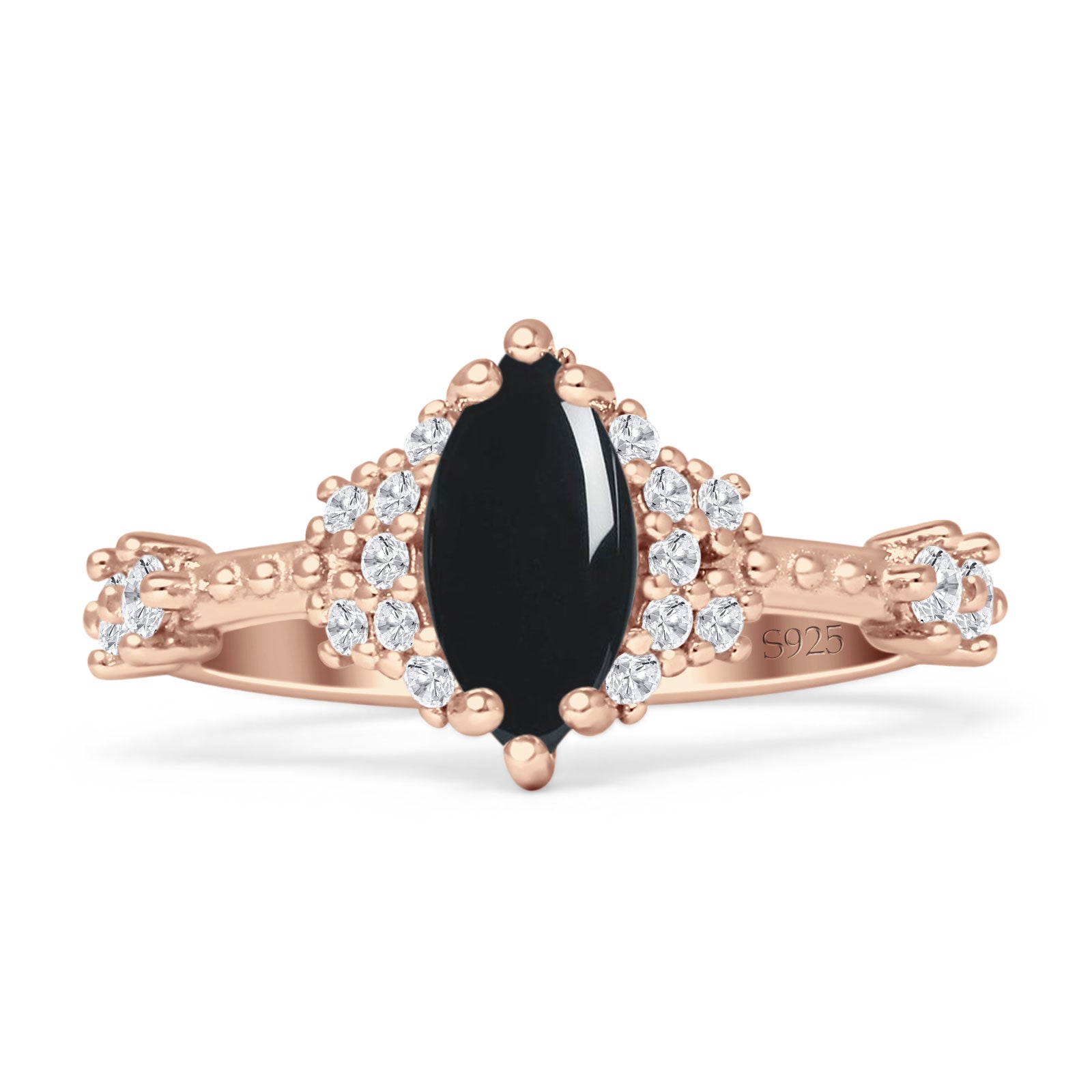 Marquise Natural Black Onyx Halo Beaded Ring 925 Sterling Silver