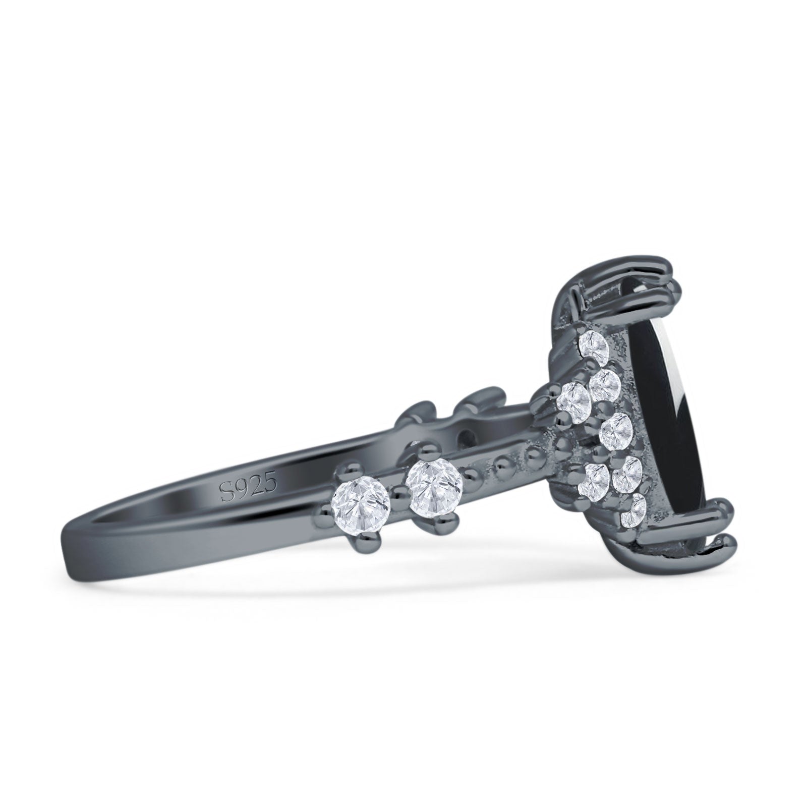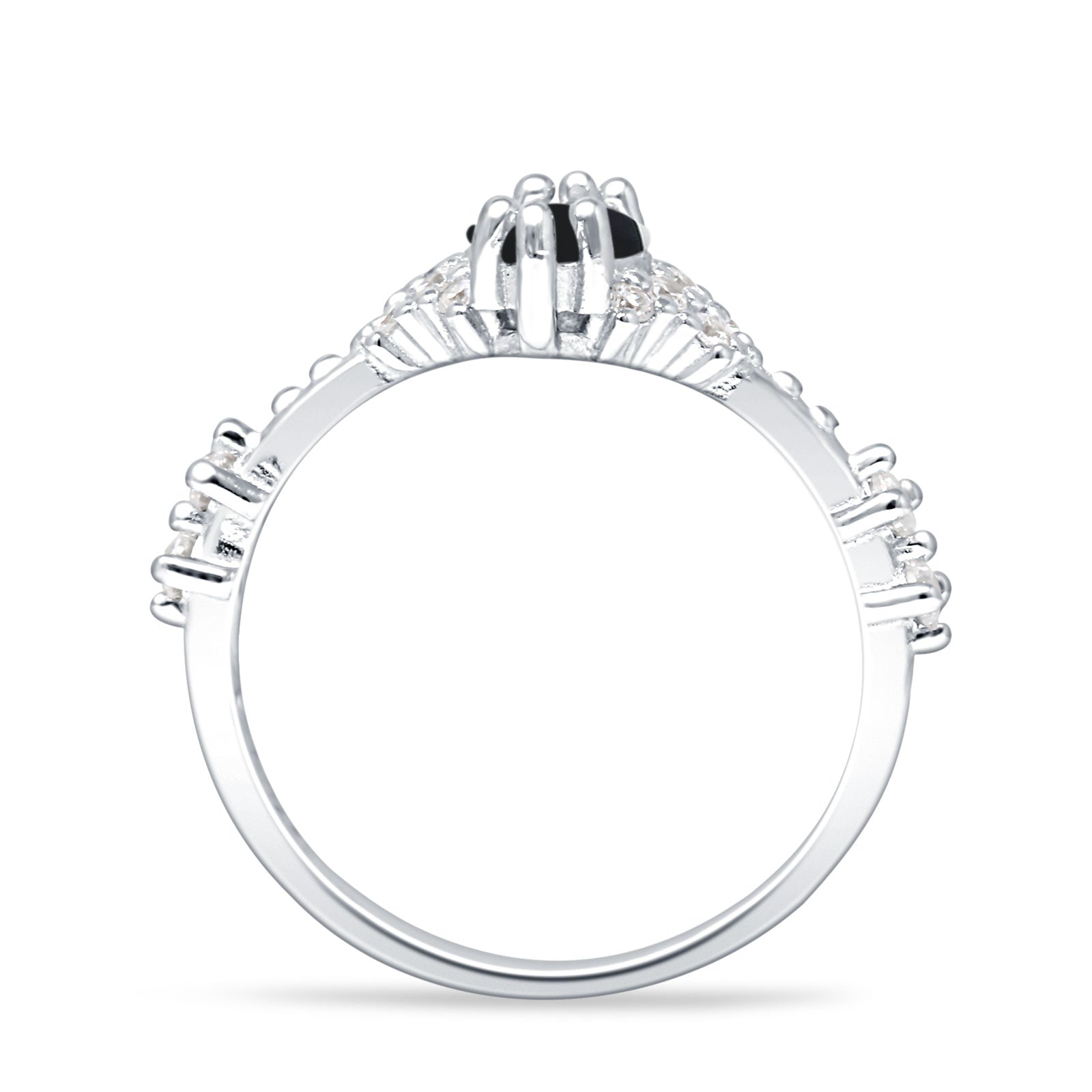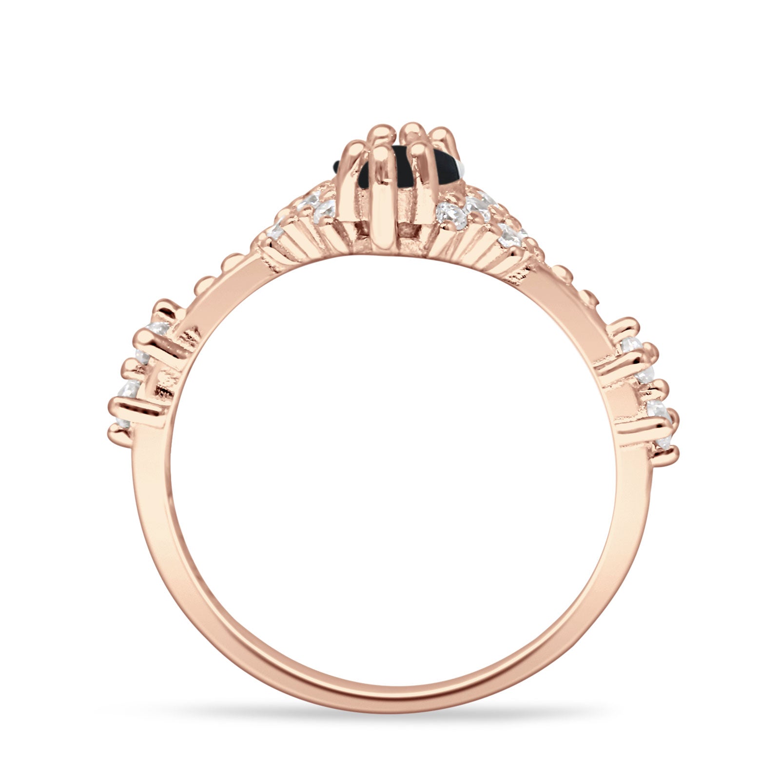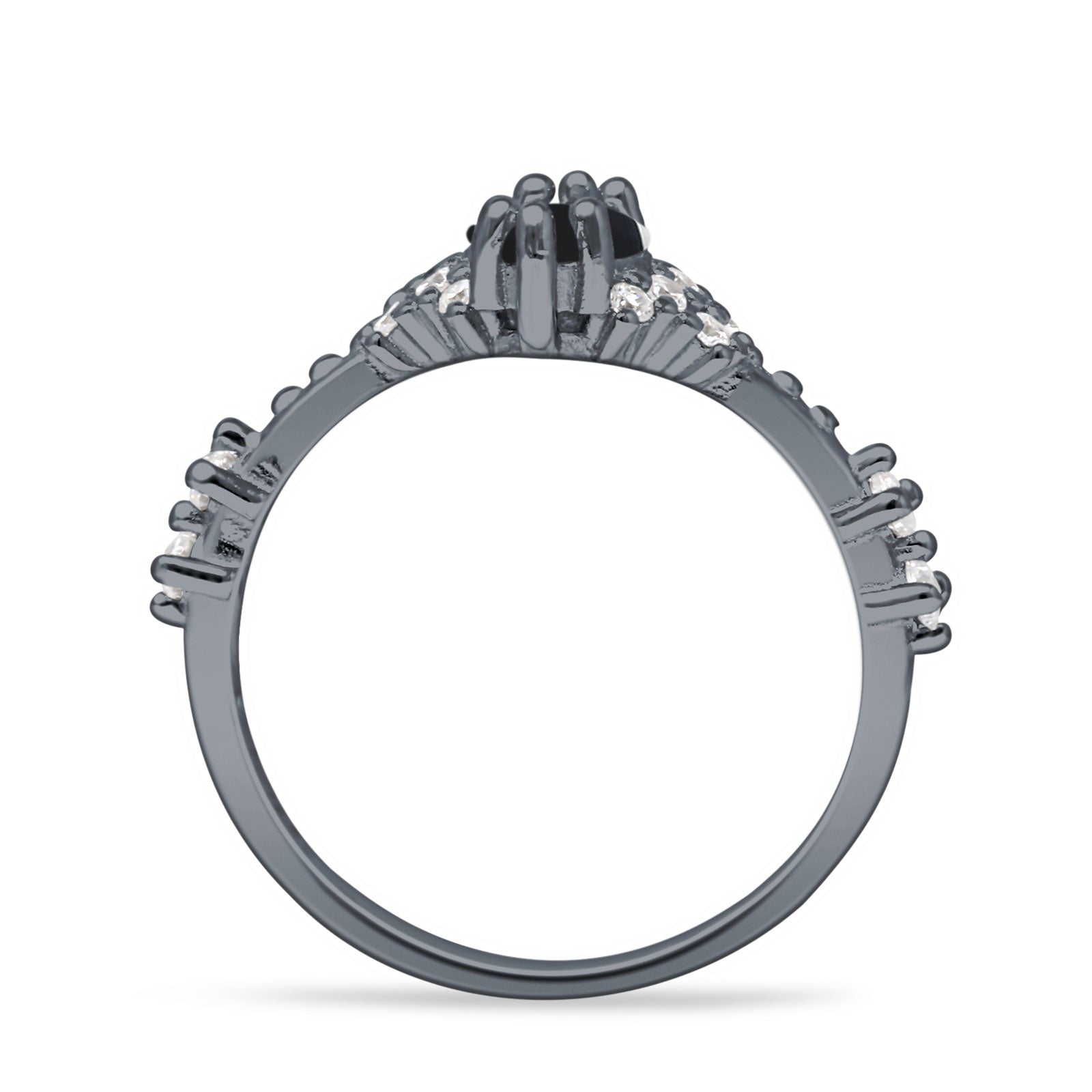 Marquise Natural Black Onyx Halo Beaded Ring 925 Sterling Silver