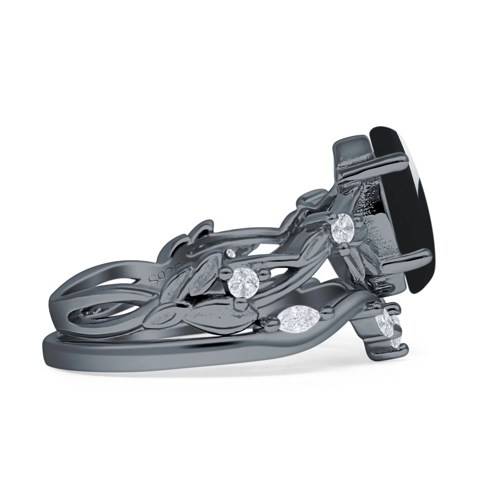 Product Description:Indulge in timeless elegance with our marquise natural Black Onyx split shank ring. Crafted from sterling silver, it features a stunning marquise-cut Black Onyx gemstone set amidst intricate leaf and floral detailing. A perfect blend of vintage style and modern sophistication, this ring is a captivating choice for any occasion.