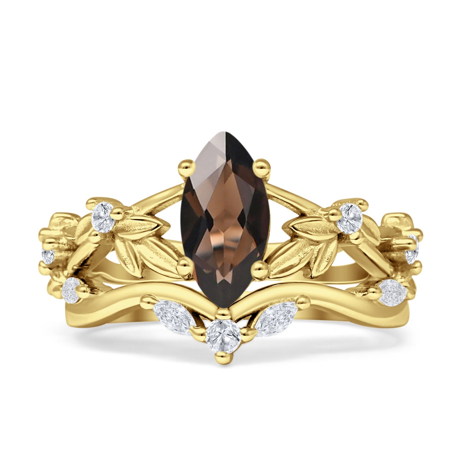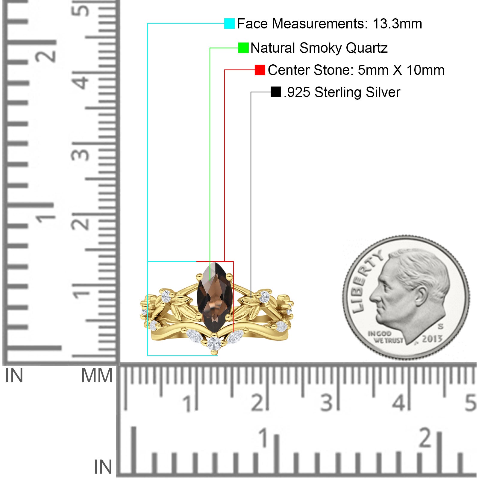Product Description:Indulge in timeless elegance with our marquise natural Chocolate Smoky Quartz split shank ring. Crafted from sterling silver, it features a stunning marquise-cut Chocolate Smoky Quartz gemstone set amidst intricate leaf and floral detailing. A perfect blend of vintage style and modern sophistication, this ring is a captivating choice for any occasion.