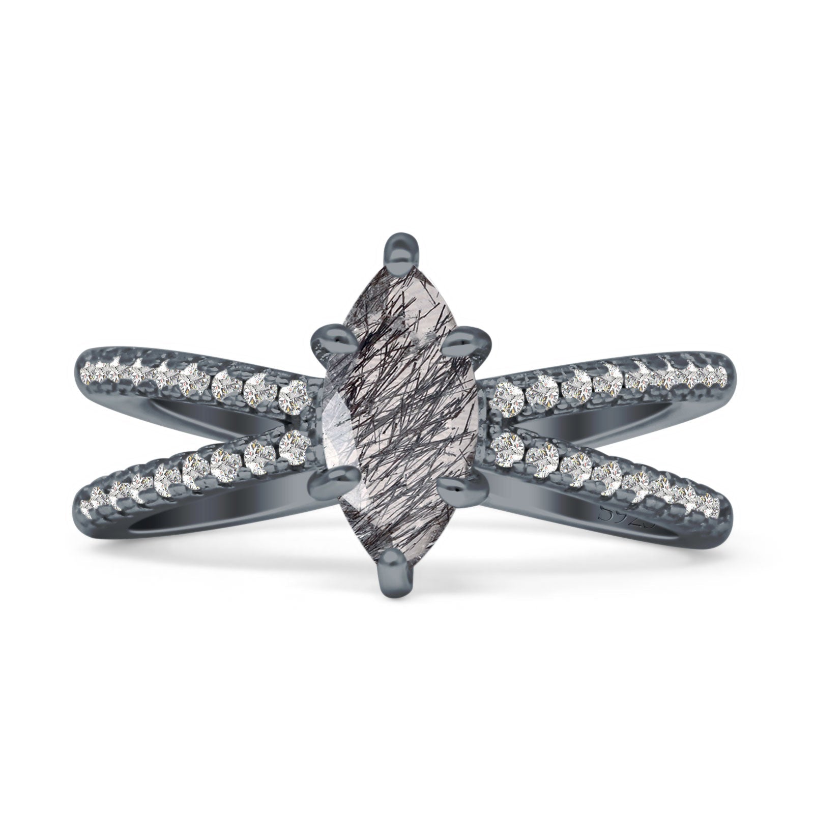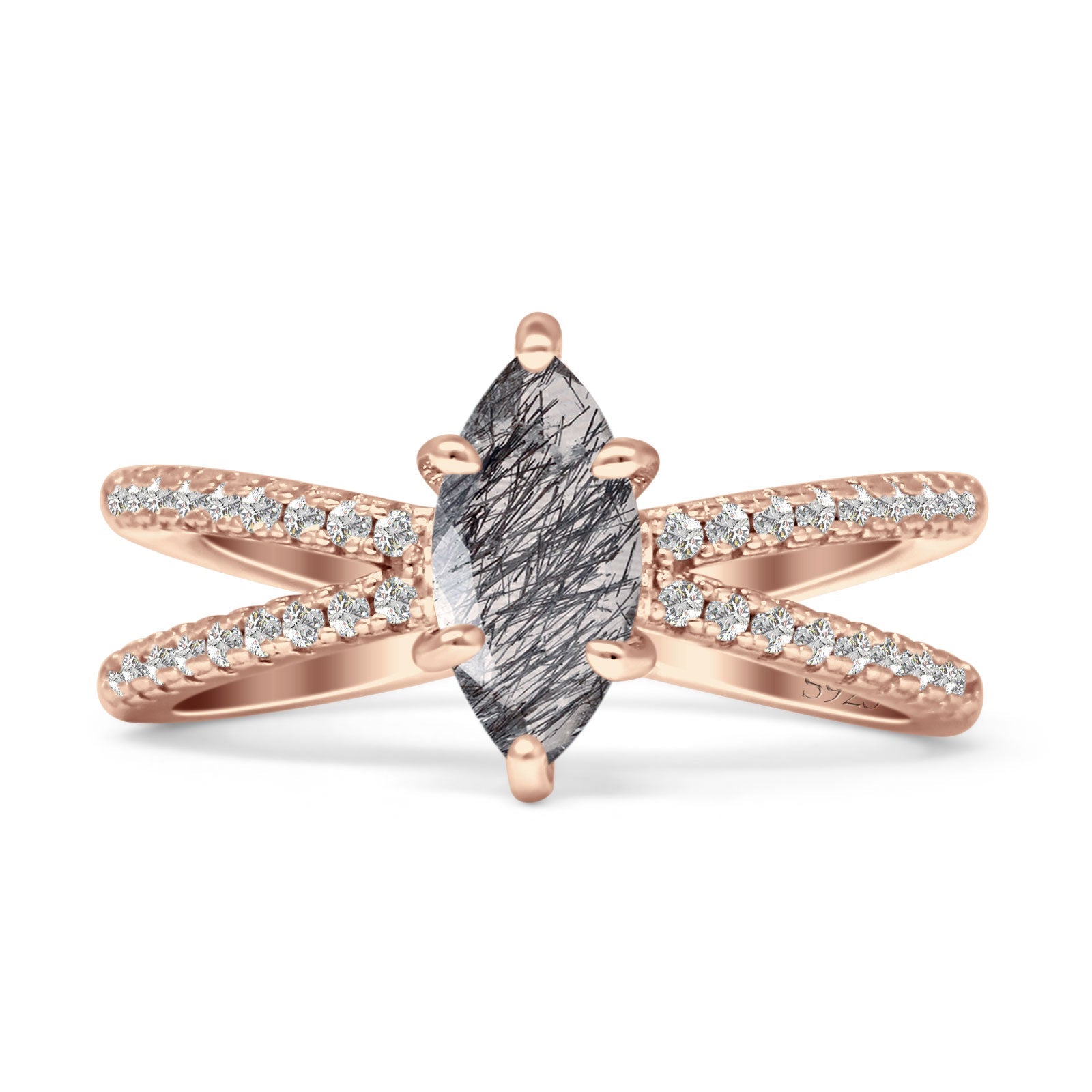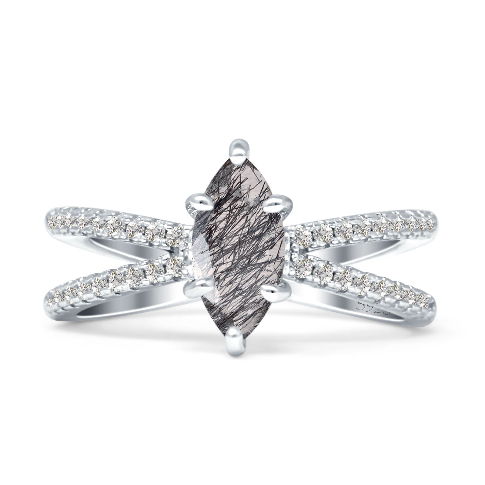 Marquise Natural Chocolate Smoky Quartz Split Shank X Ring 925 Sterling Silver