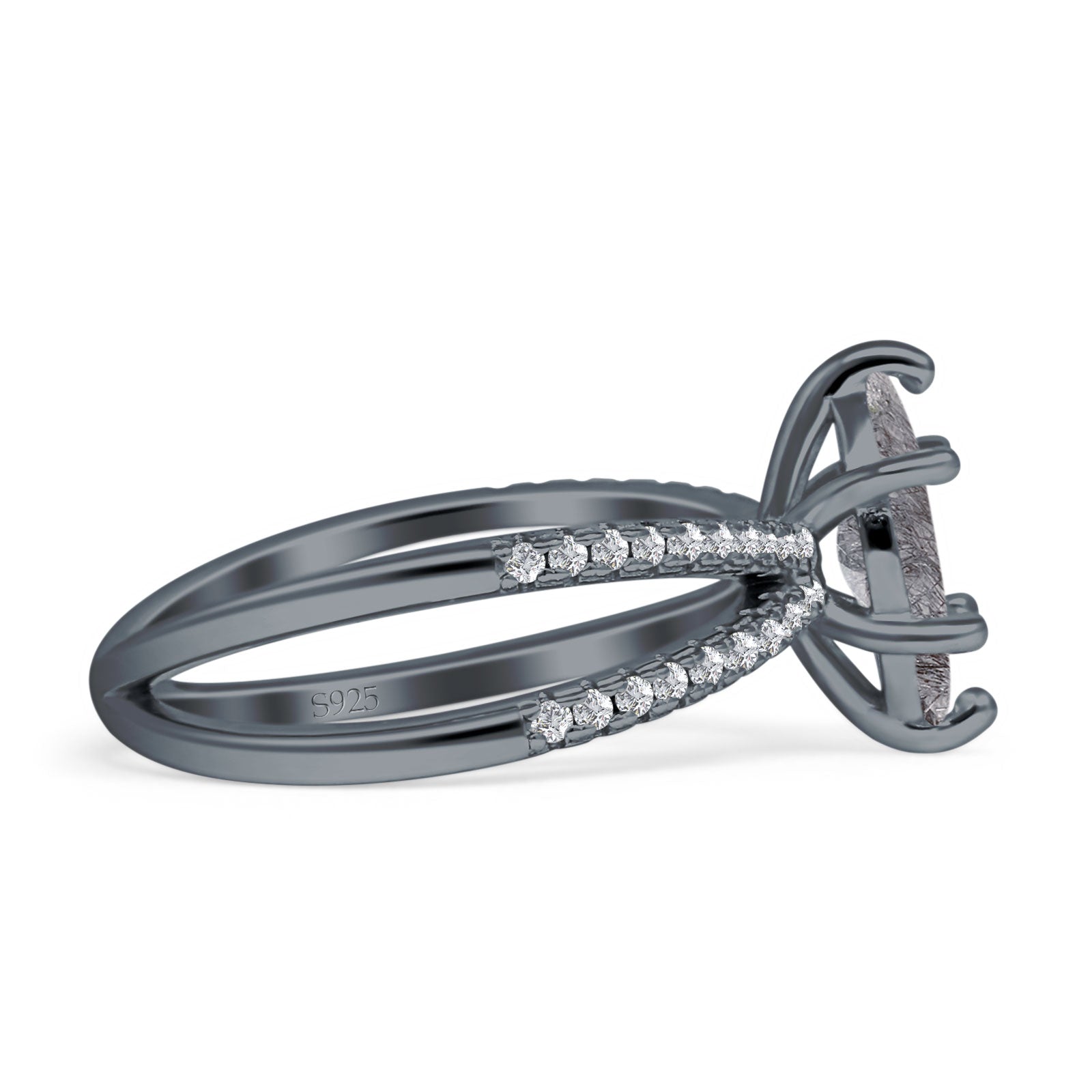 Natural Rutilated Quartz Black Tone Silver