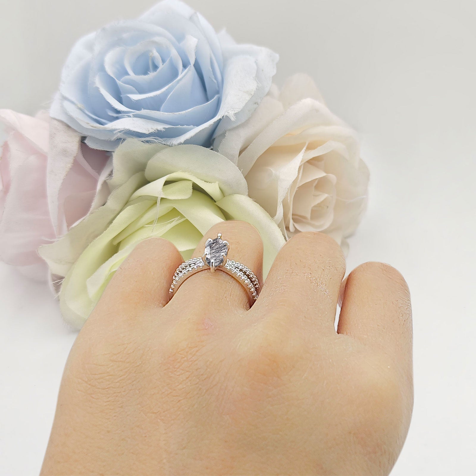 Natural Rutilated Quartz Engagement Ring