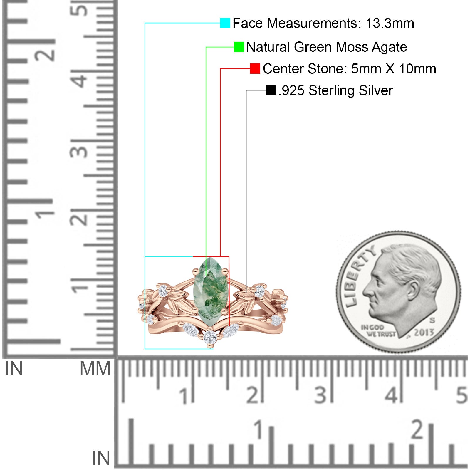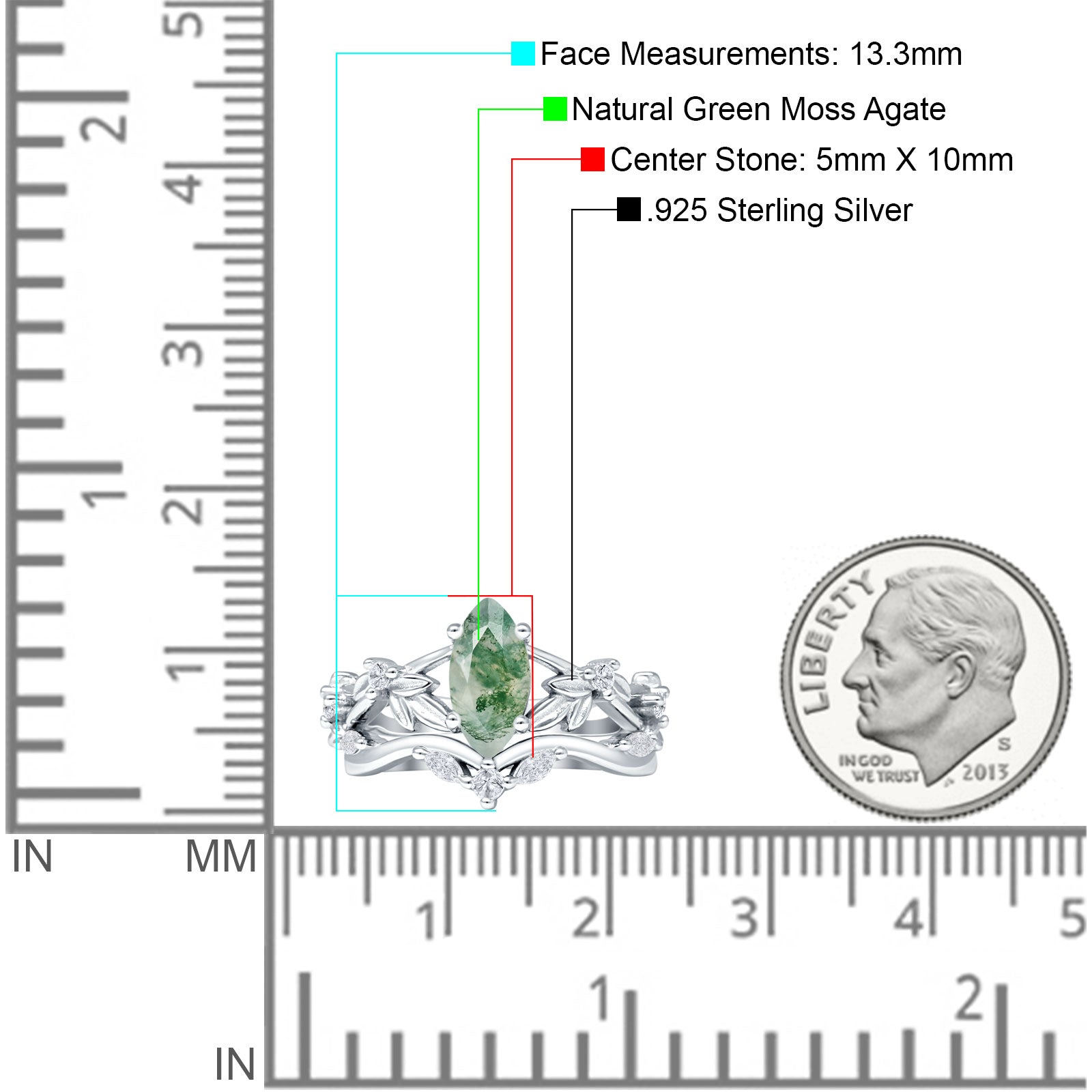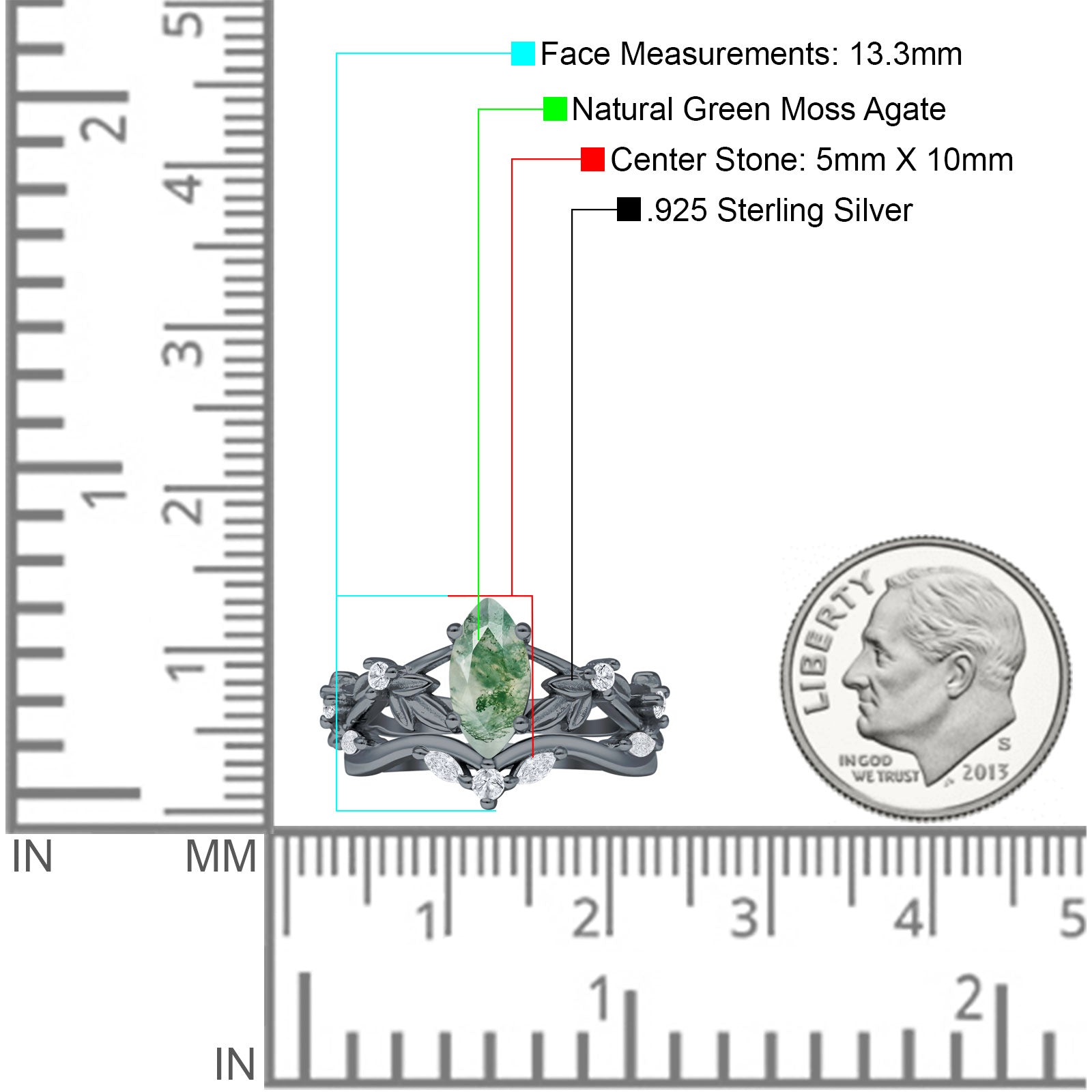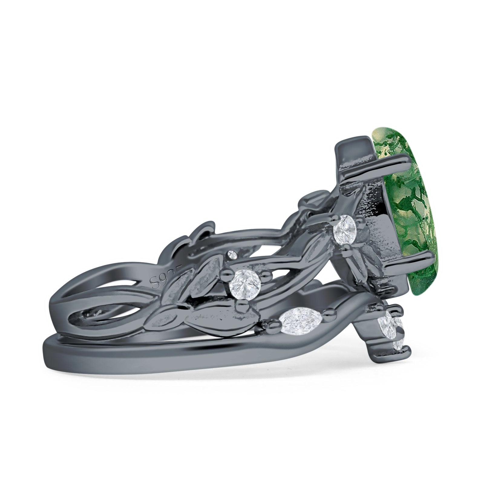 Product Description:Indulge in timeless elegance with our marquise natural Green Moss Agate split shank ring. Crafted from sterling silver, it features a stunning marquise-cut Green Moss Agate gemstone set amidst intricate leaf and floral detailing. A perfect blend of vintage style and modern sophistication, this ring is a captivating choice for any occasion.