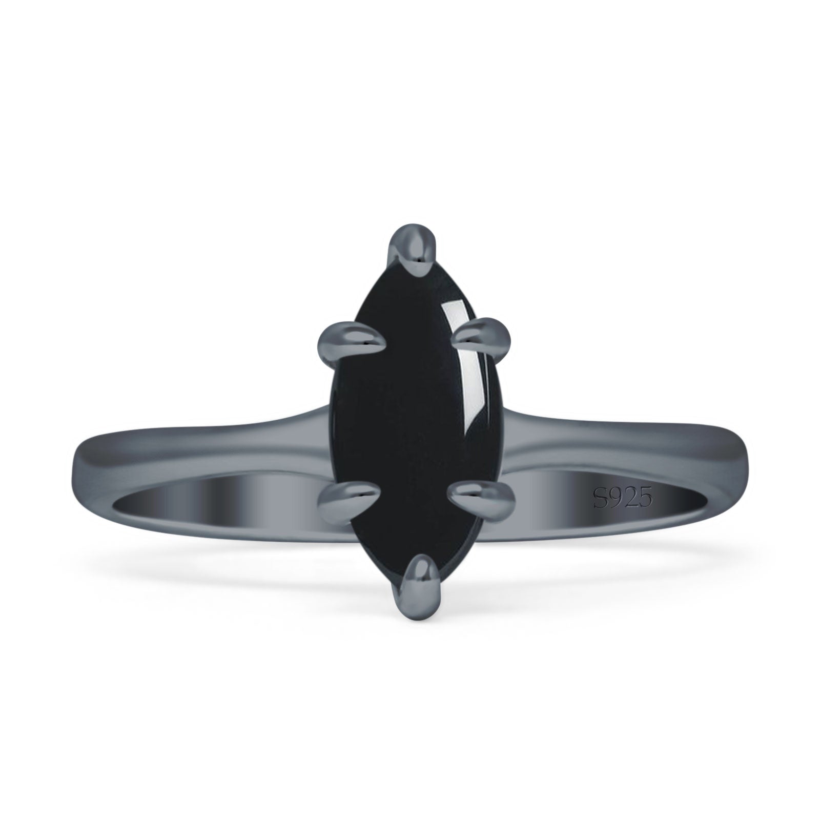 Marquise Solitaire Engagement Ring 5X10 Natural Black Onyx 925 Sterling Silver