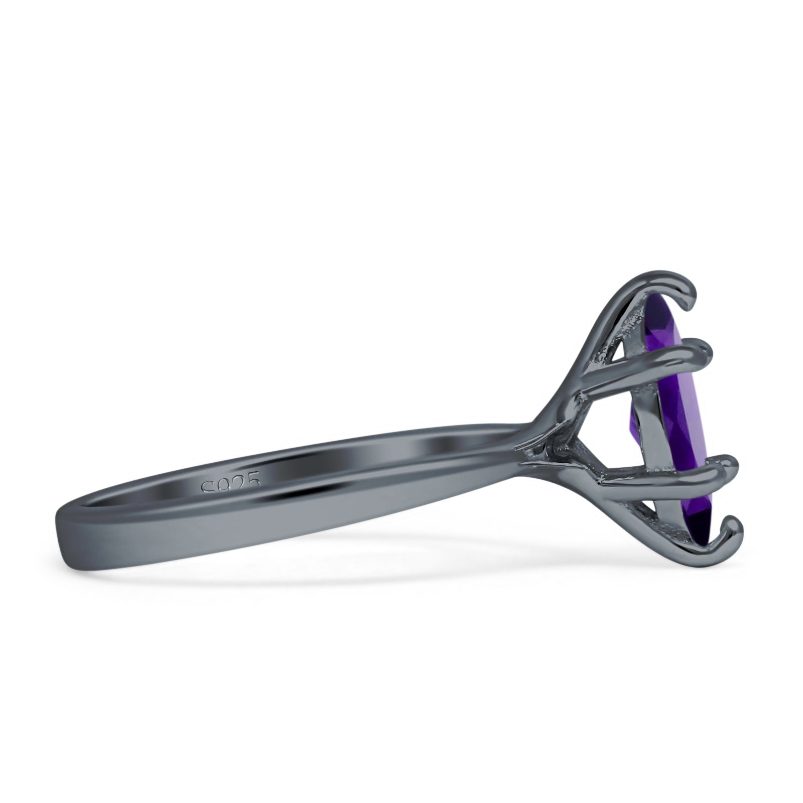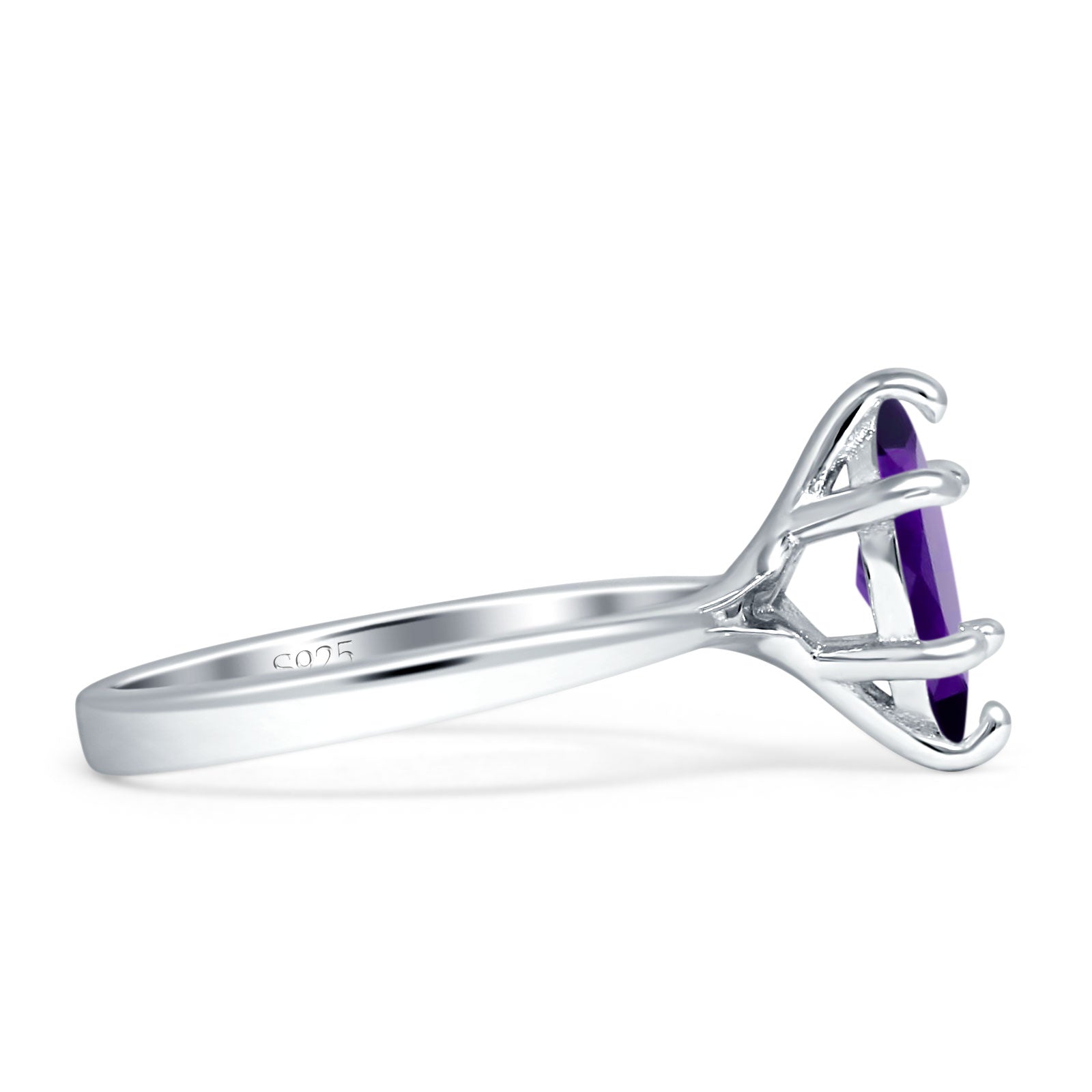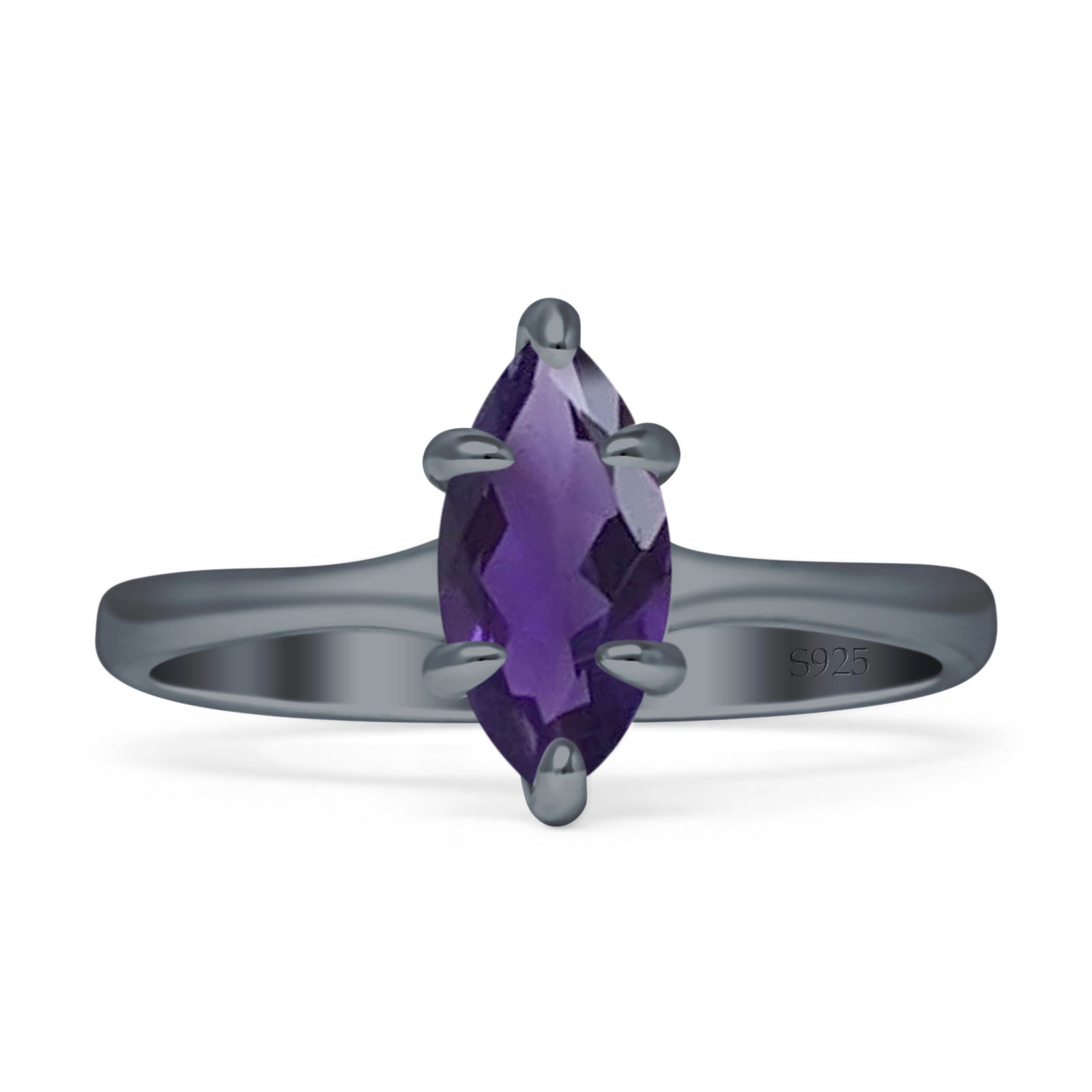 Marquise Solitaire Engagement Ring 6X12 Natural Amethyst 925 Sterling Silver