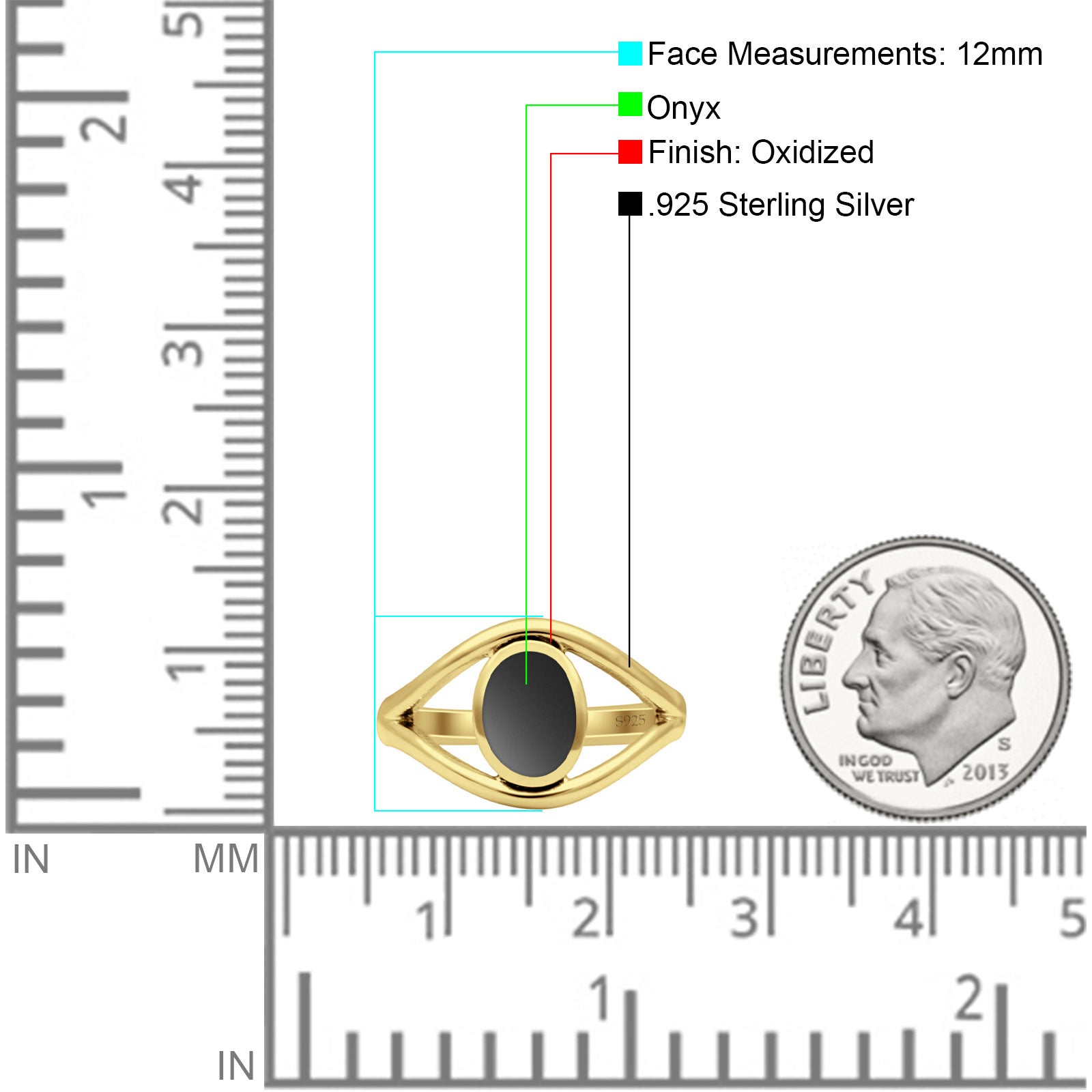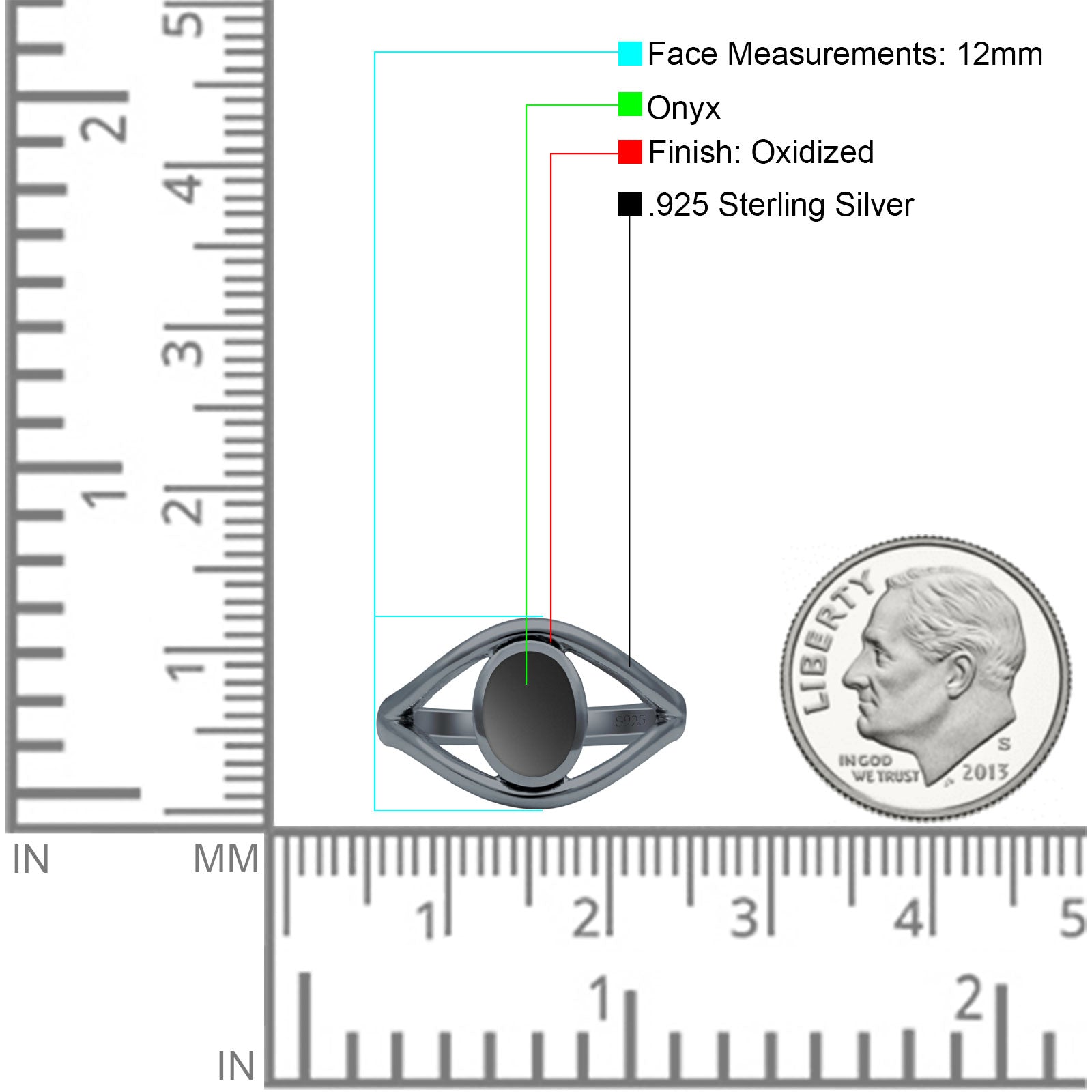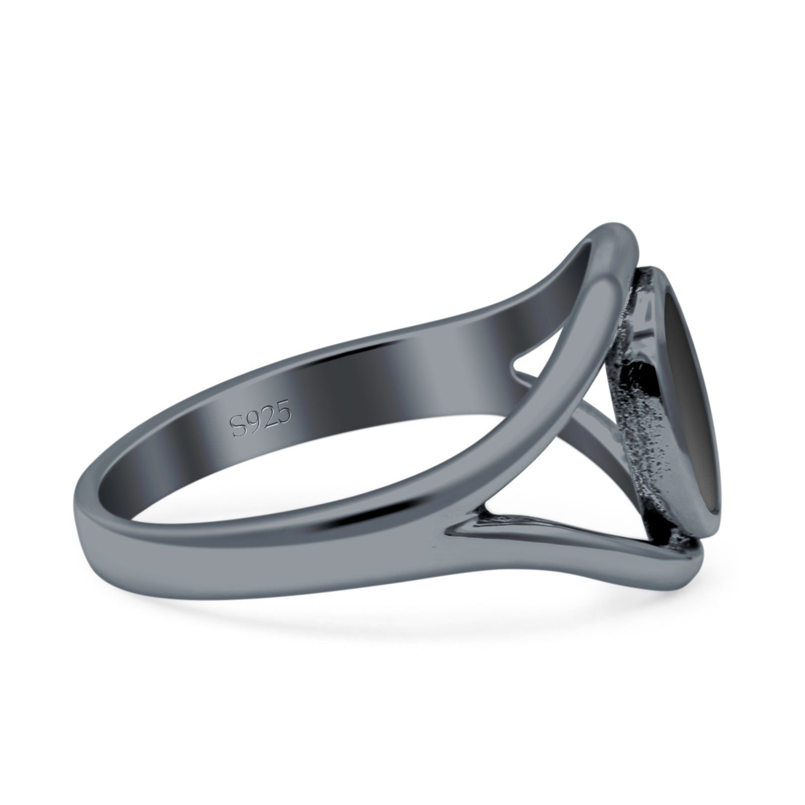 Minimalist 12mm Black Onyx Split Shank Oxidized Ring 925 Sterling Silver