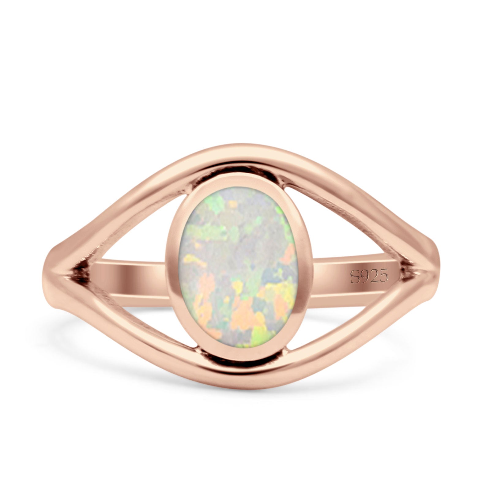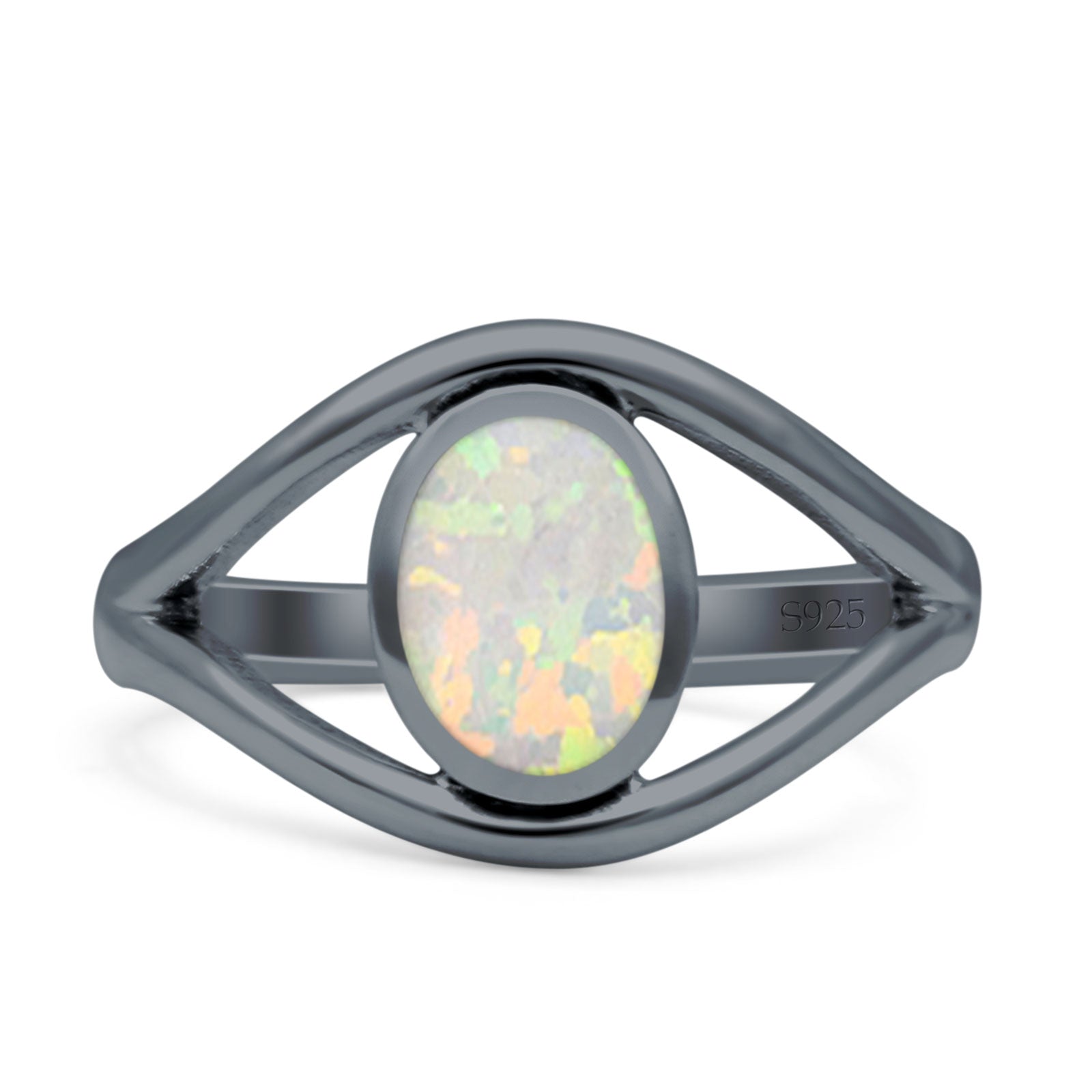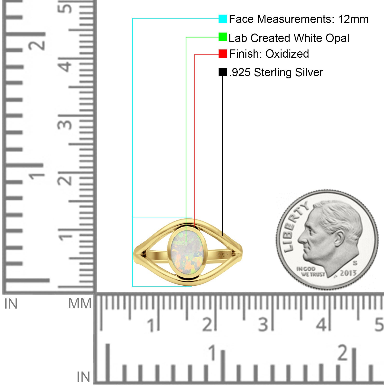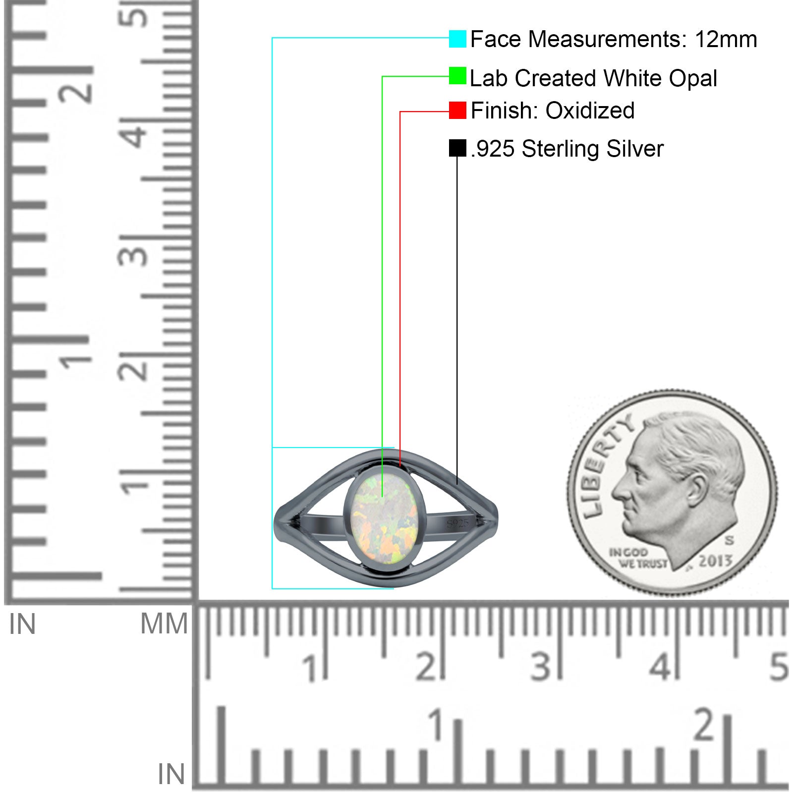 Minimalist 12mm Lab Created White Opal Split Shank Oxidized Ring 925 Sterling Silver