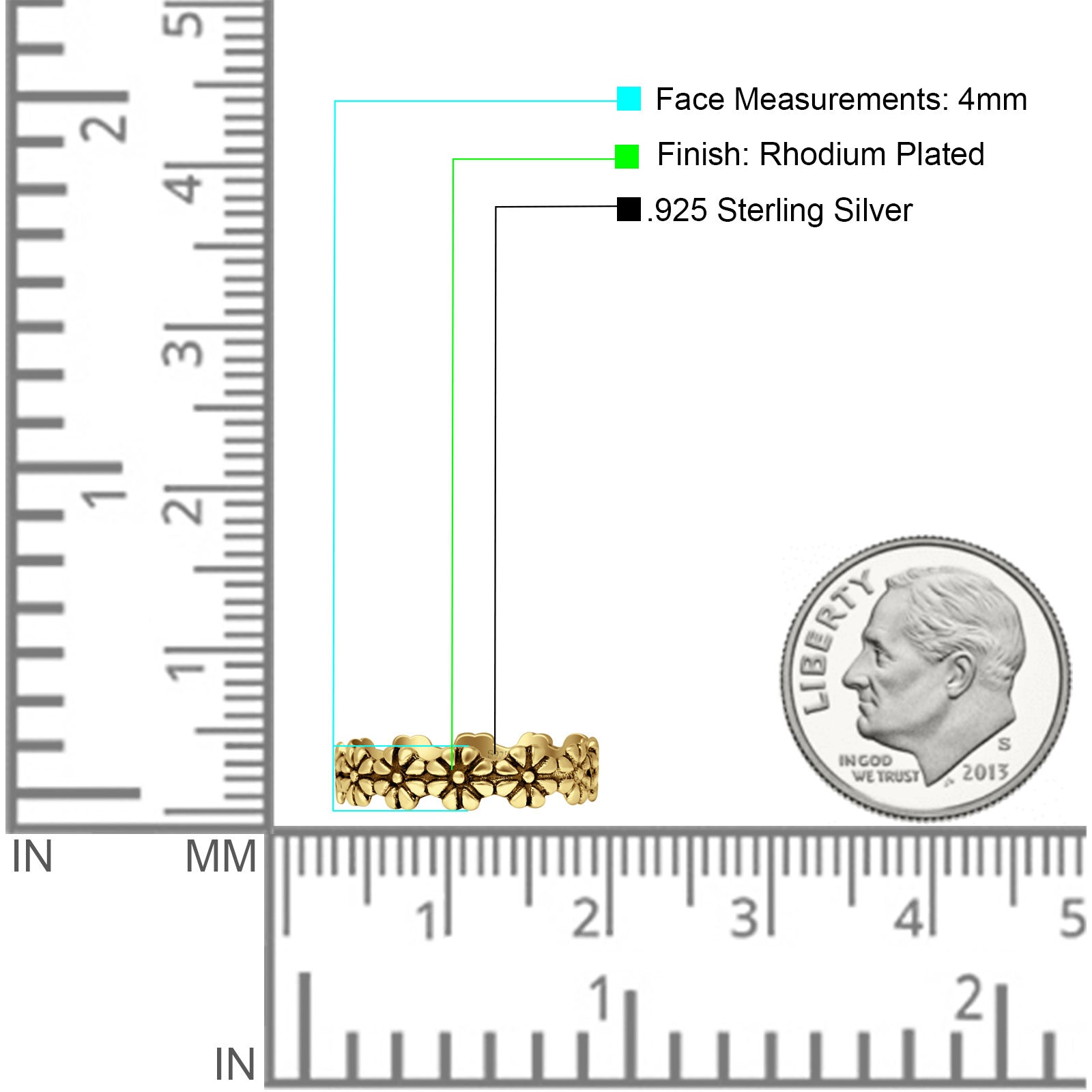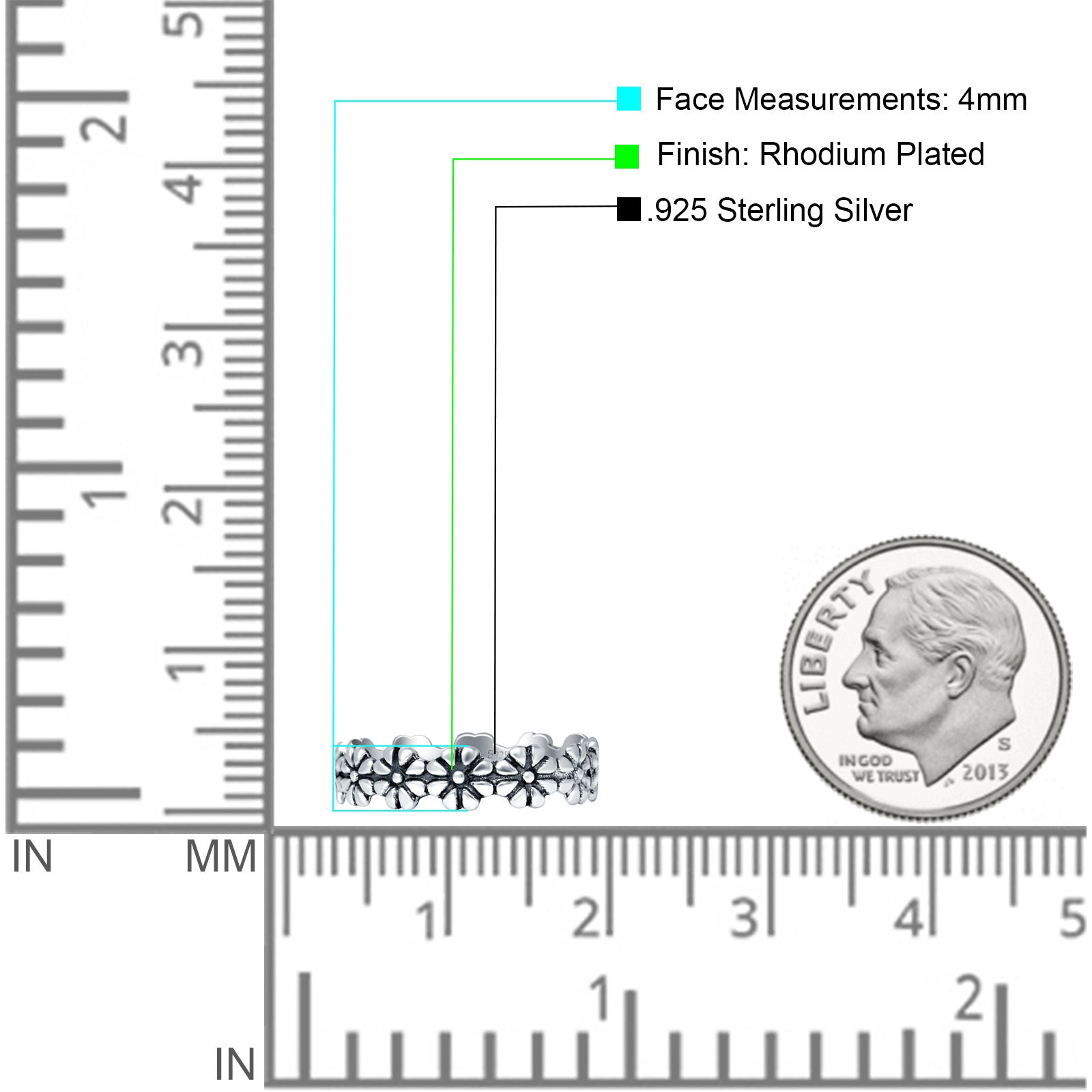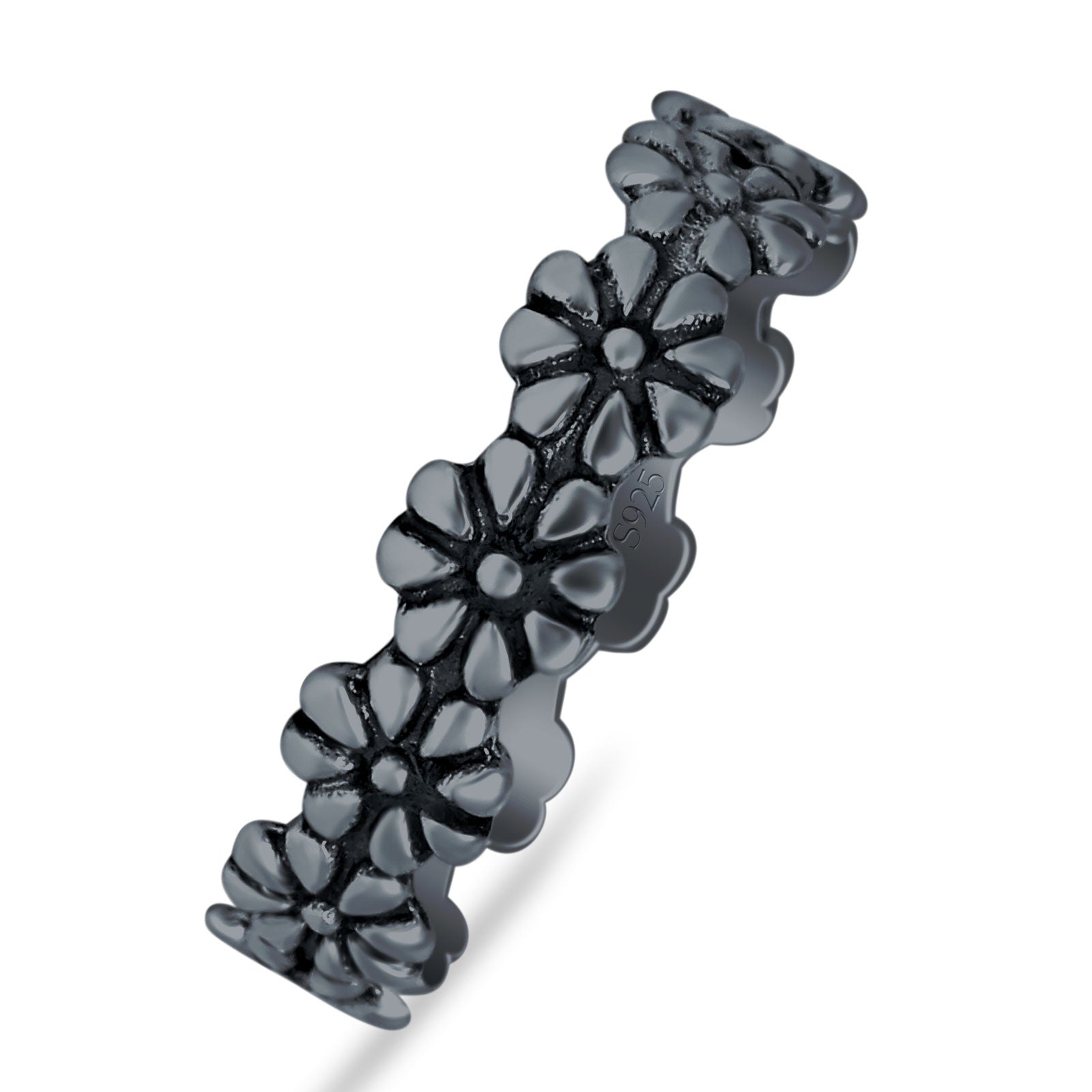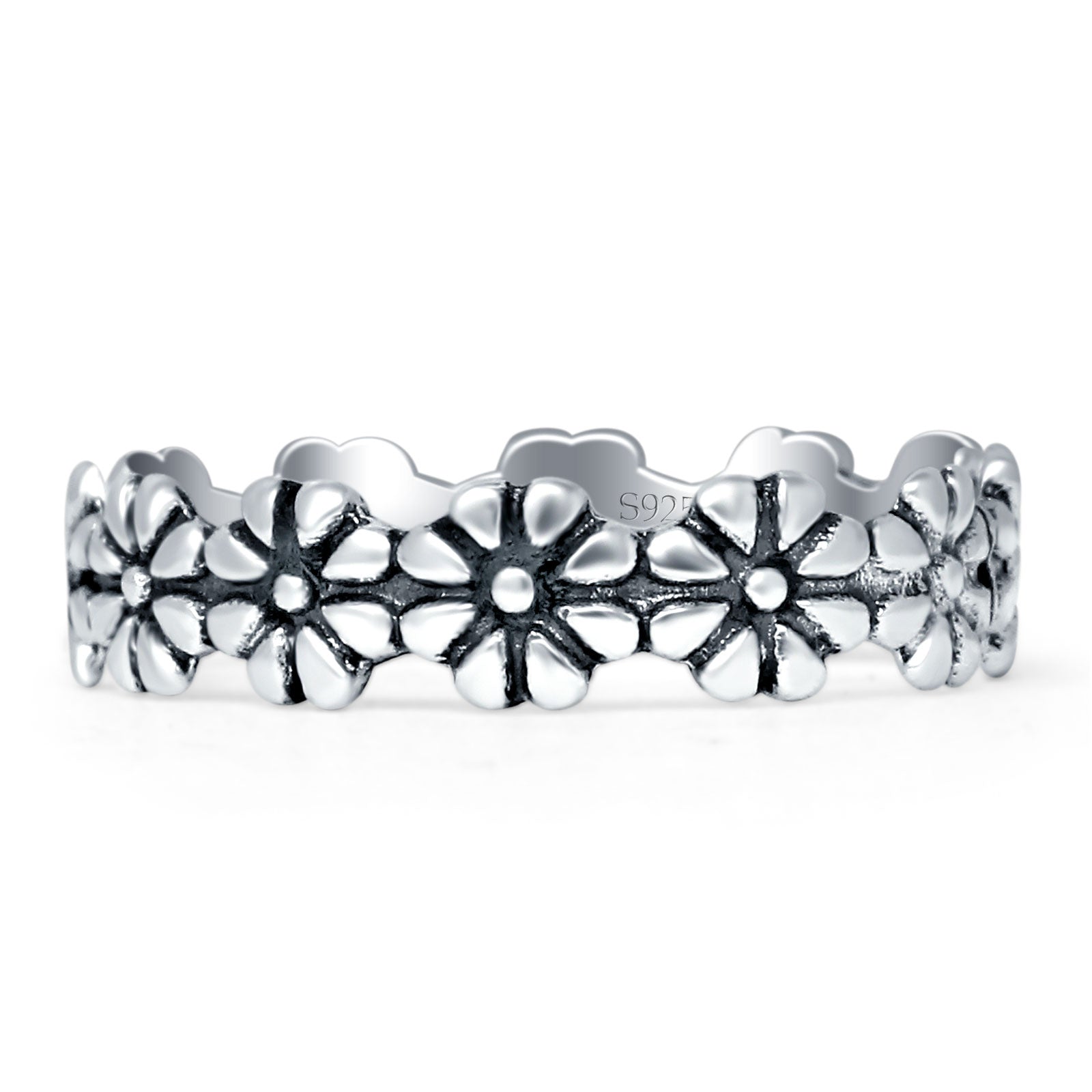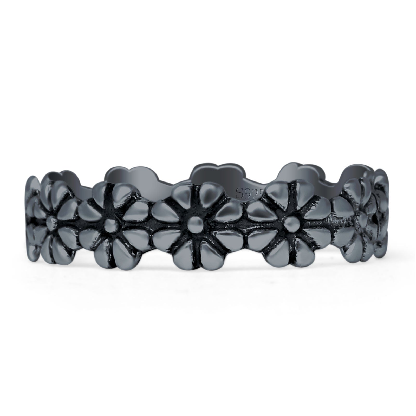Minimalist 4mm Daisy Flower Ring Oxidized Bands 925 Sterling Silver