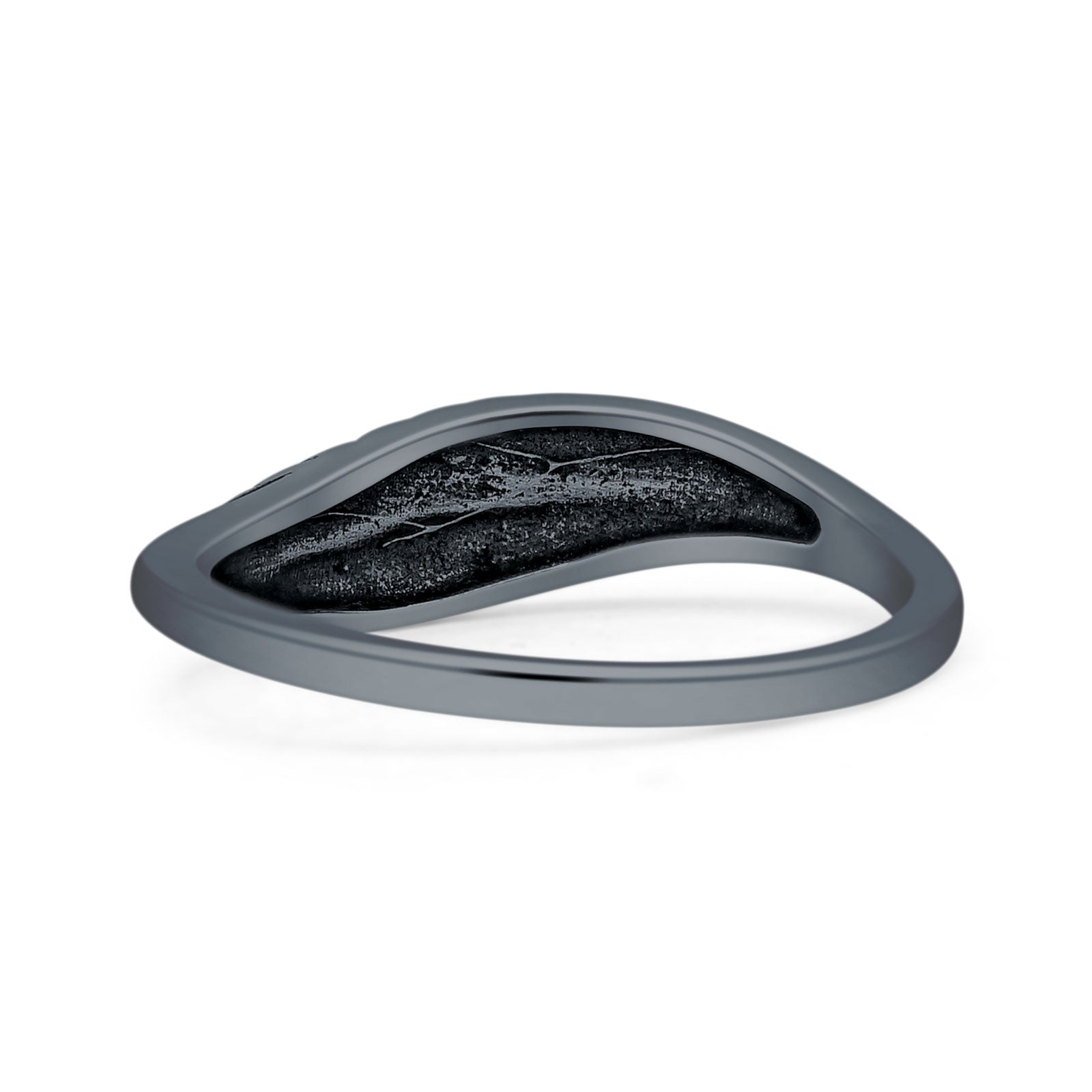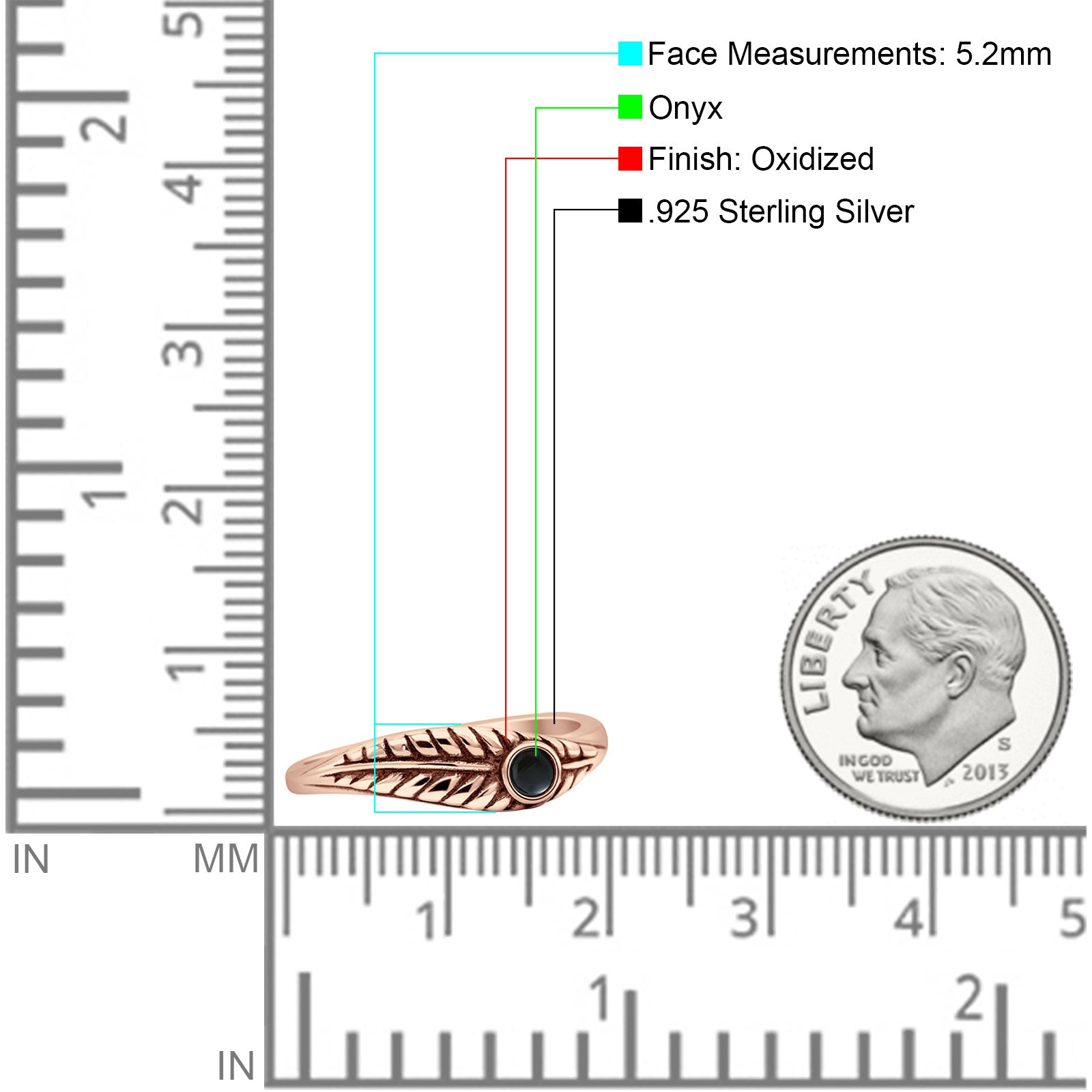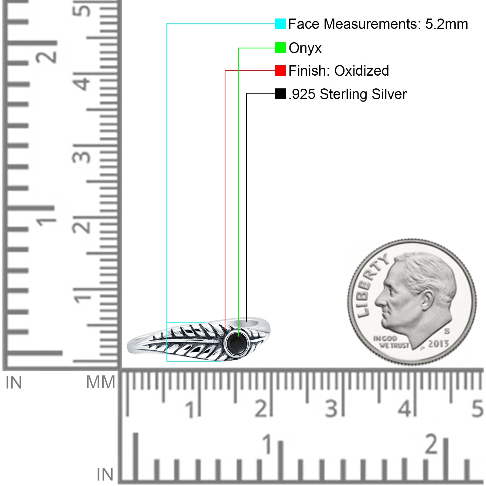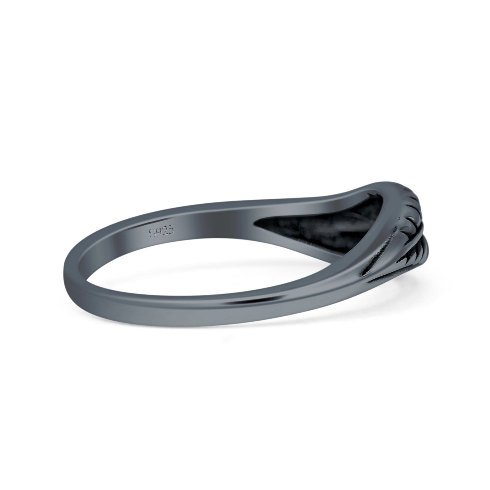 Minimalist 5.2mm Round Black Onyx Leaf Ring Oxidized 925 Sterling Silver