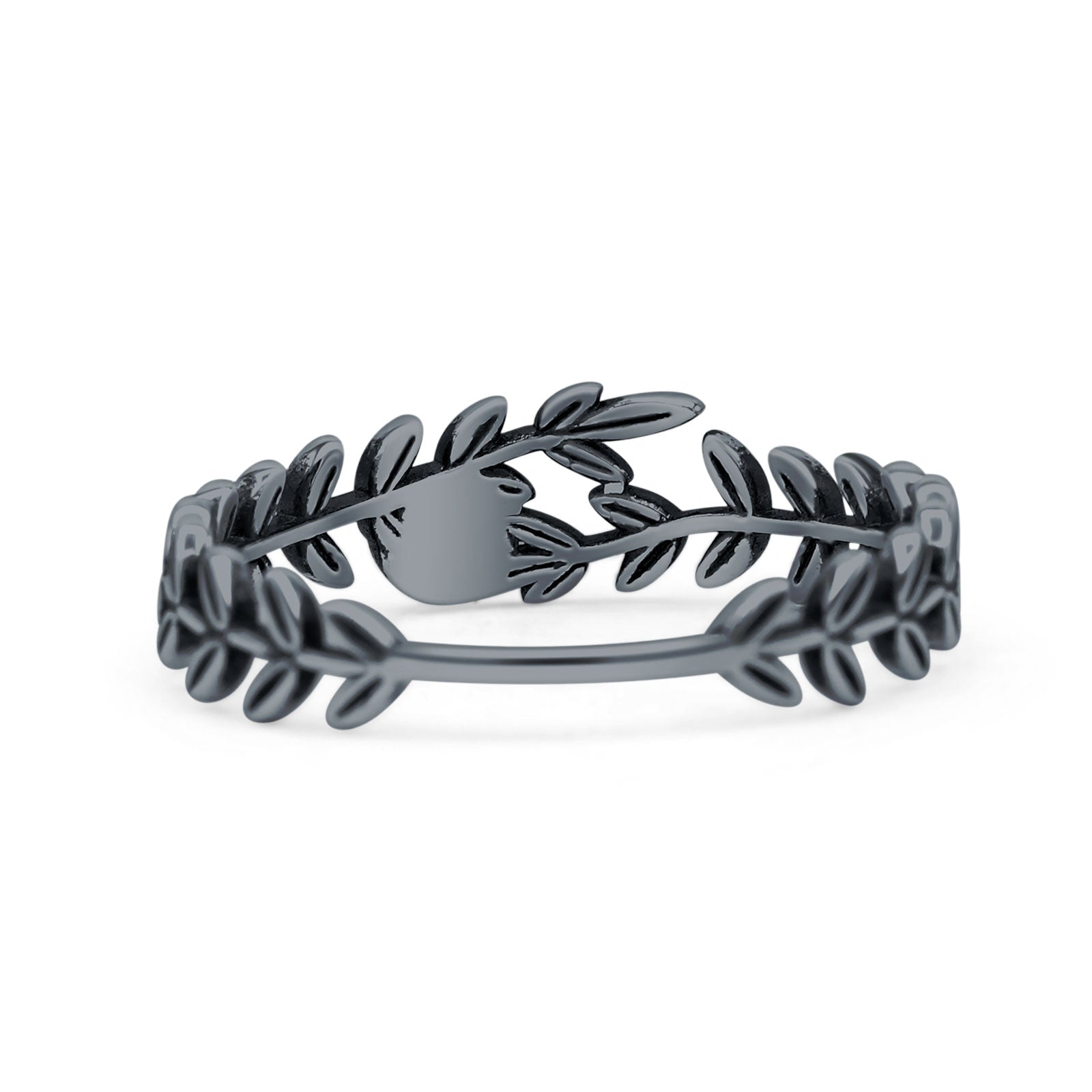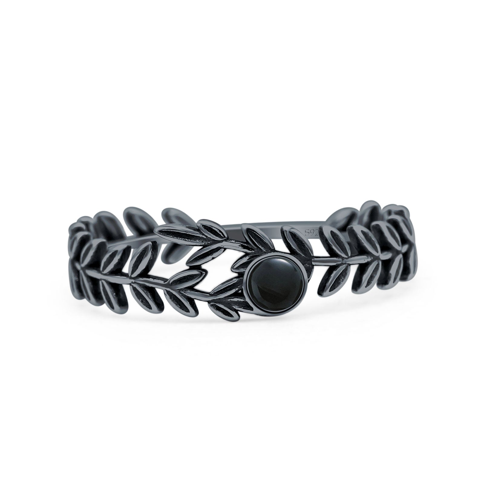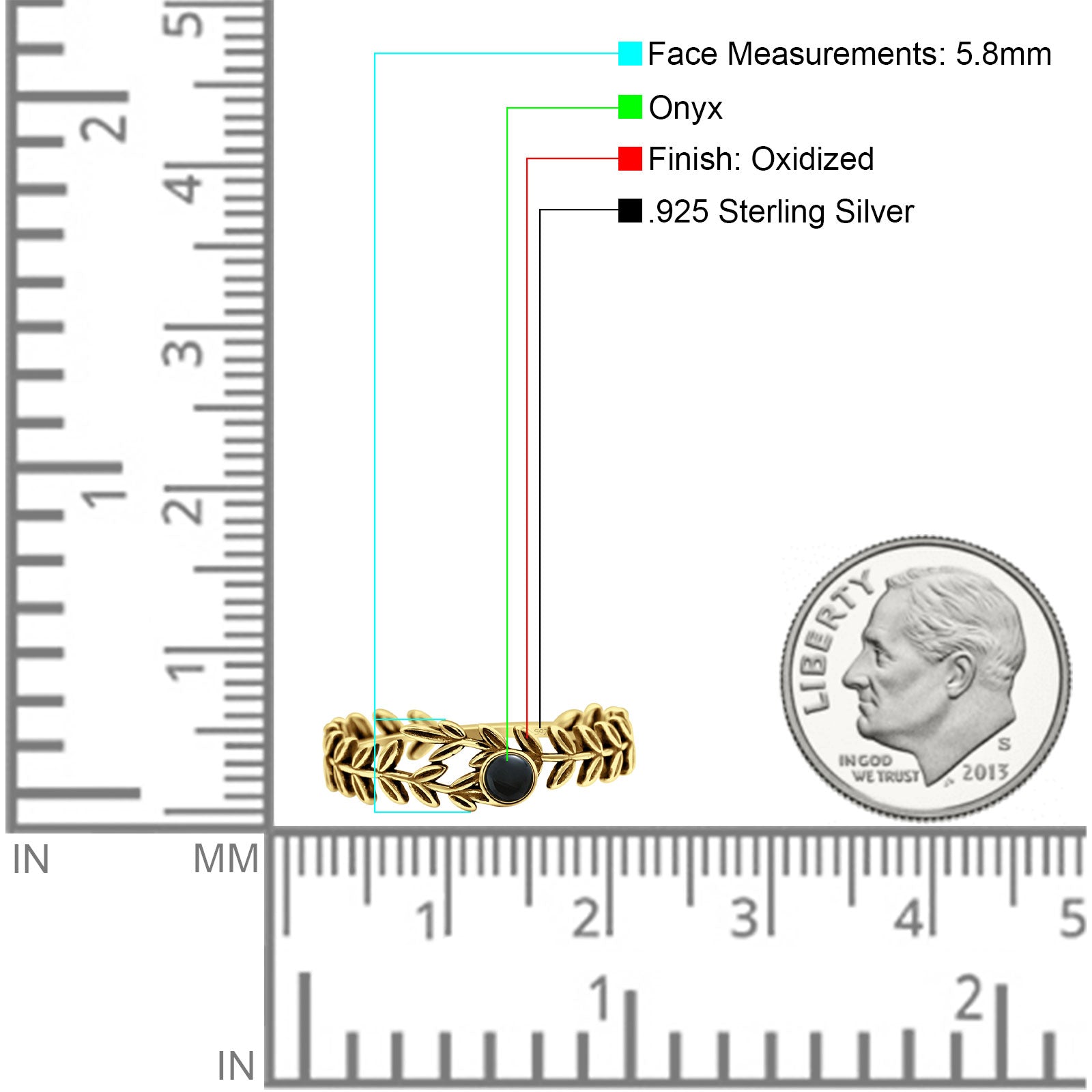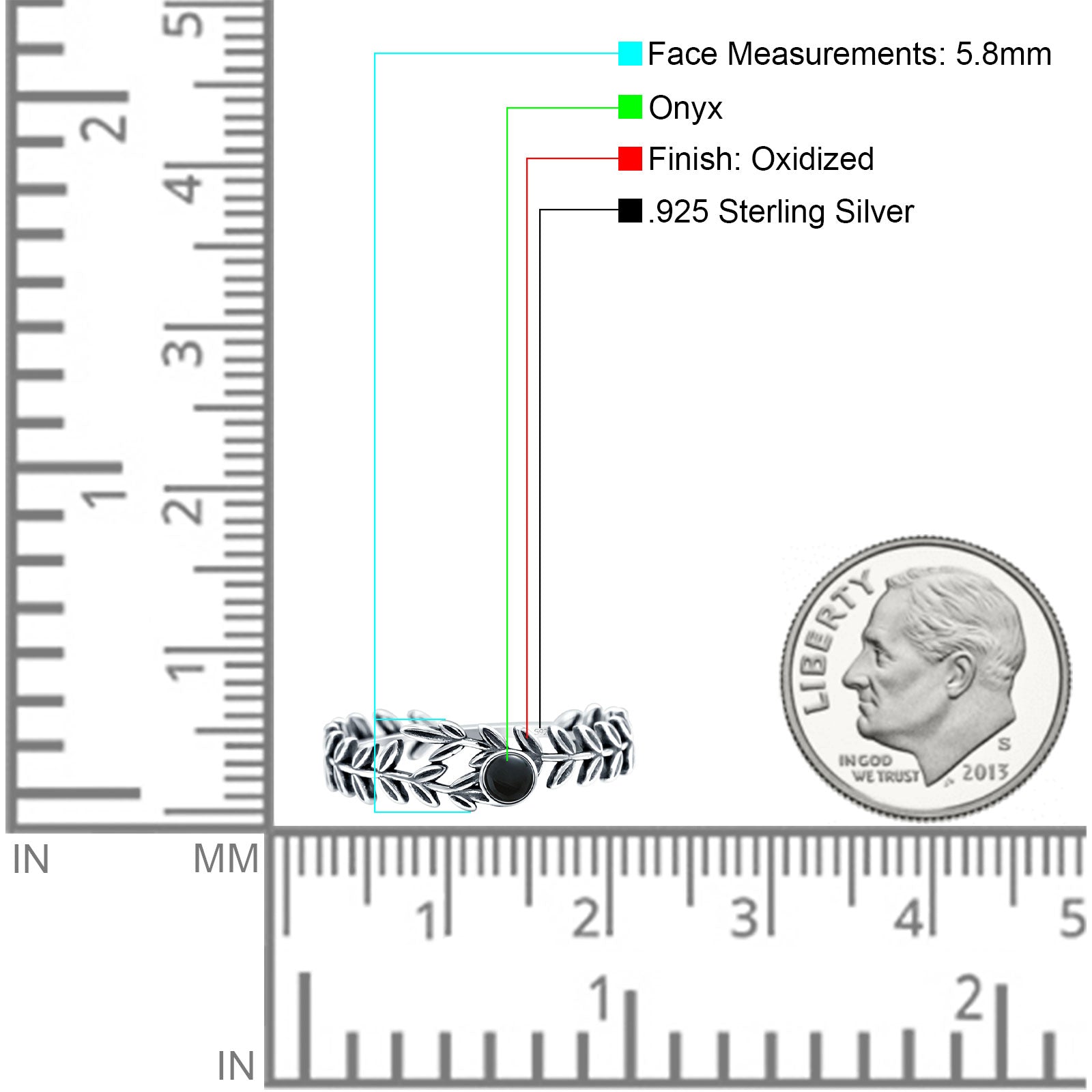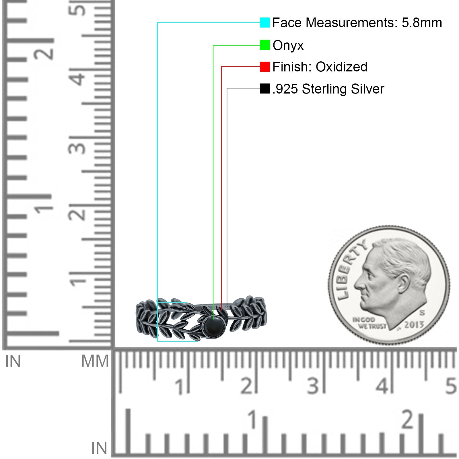Minimalist 5.8mm Round Black Onyx Wreath Ring Oxidized 925 Sterling Silver