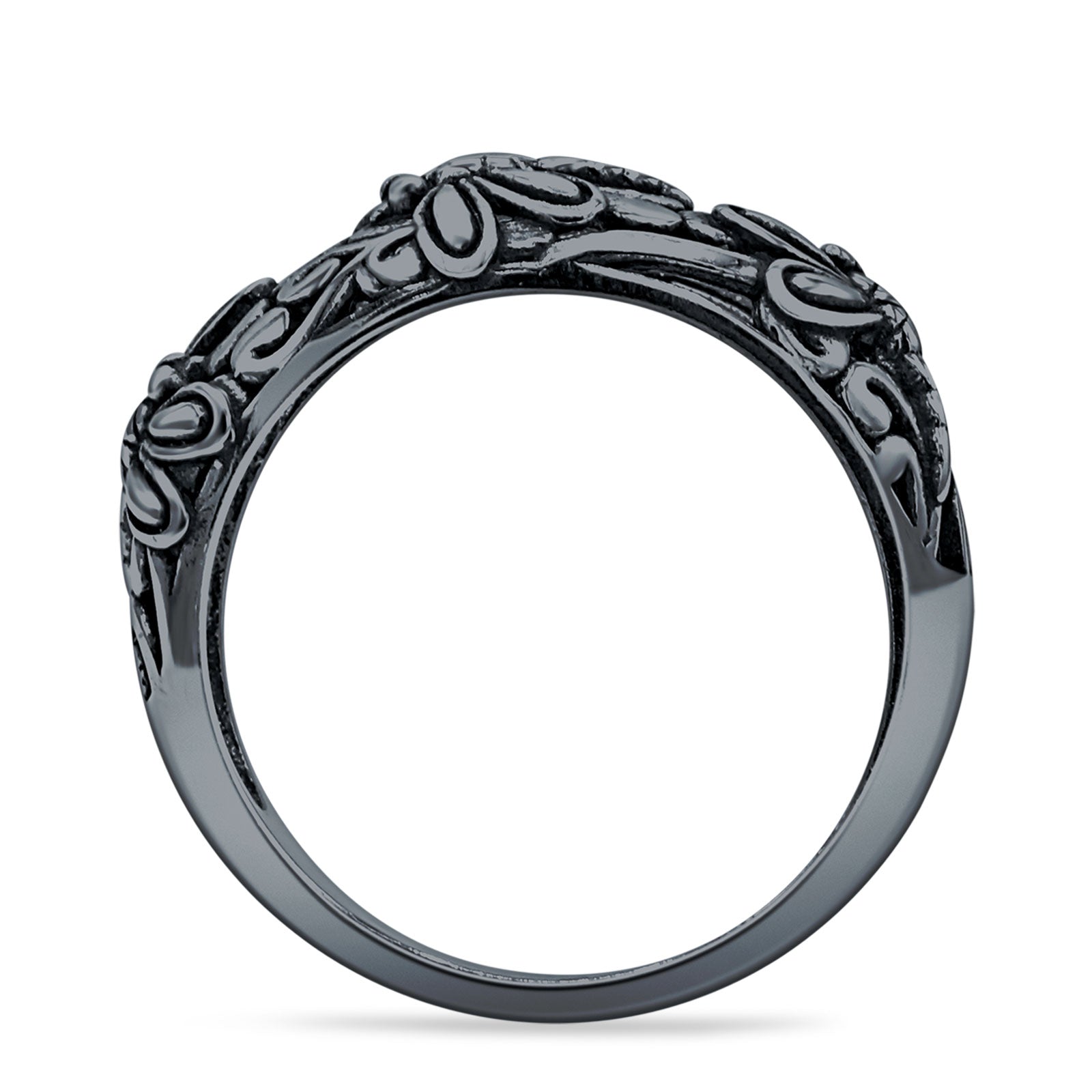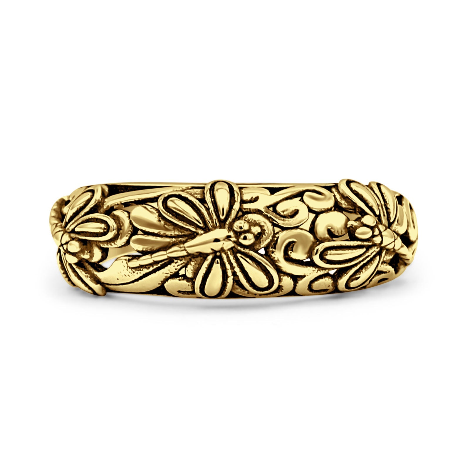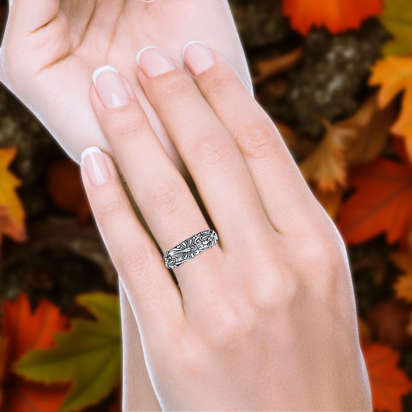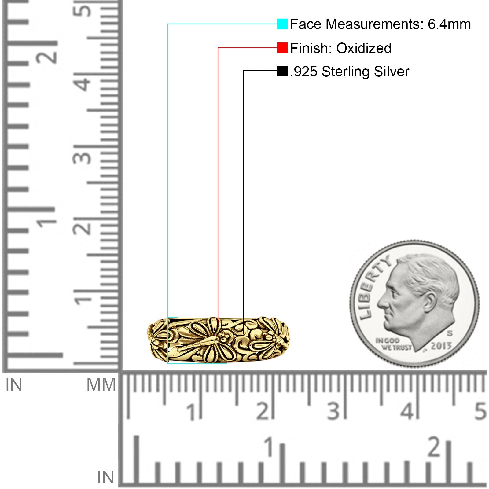 Minimalist 6.4mm Dragonfly Band Oxidized 925 Sterling Silver