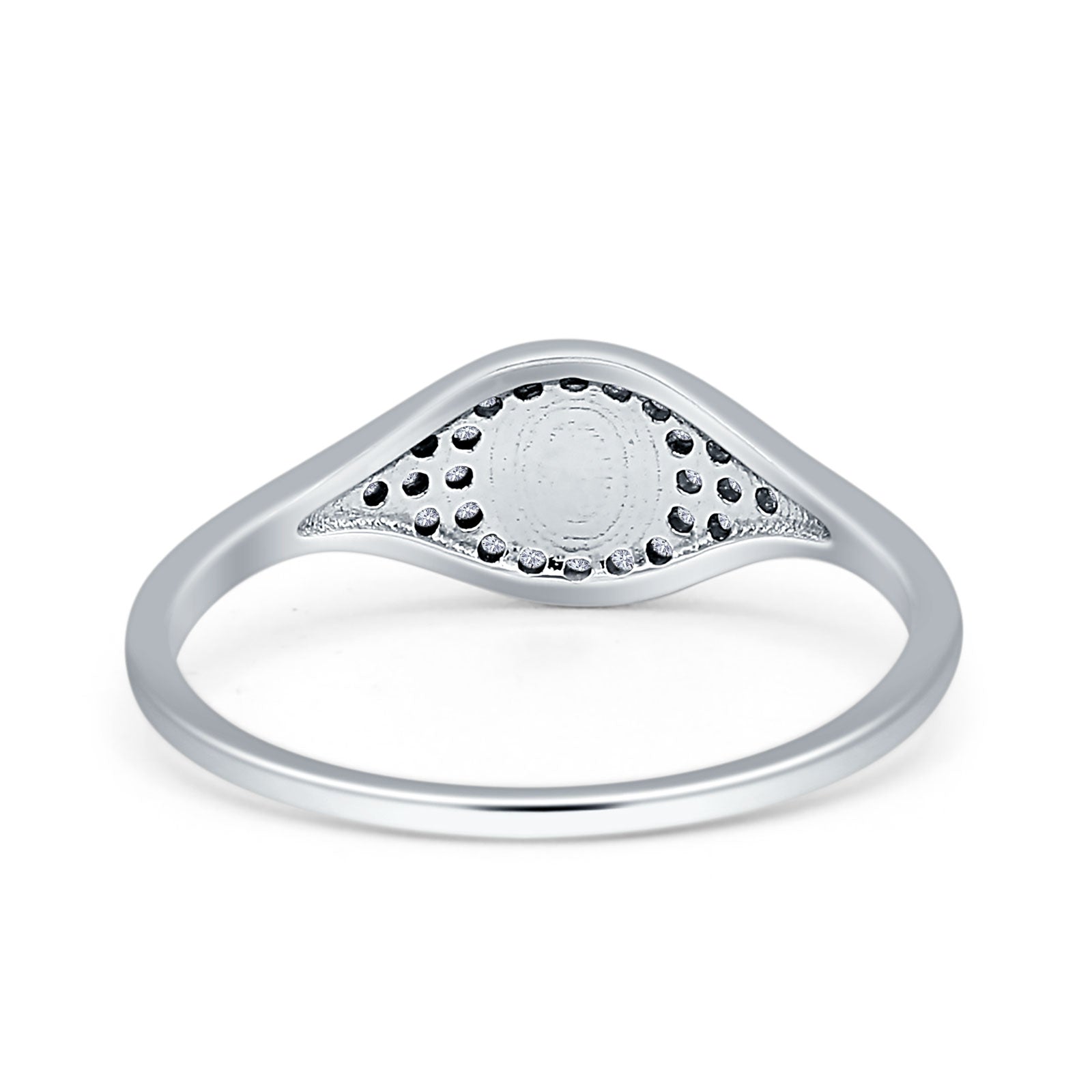 Minimalist 16.6mm Oval Lab Created White Opal & CZ Crab Ring 925 Sterling Silver