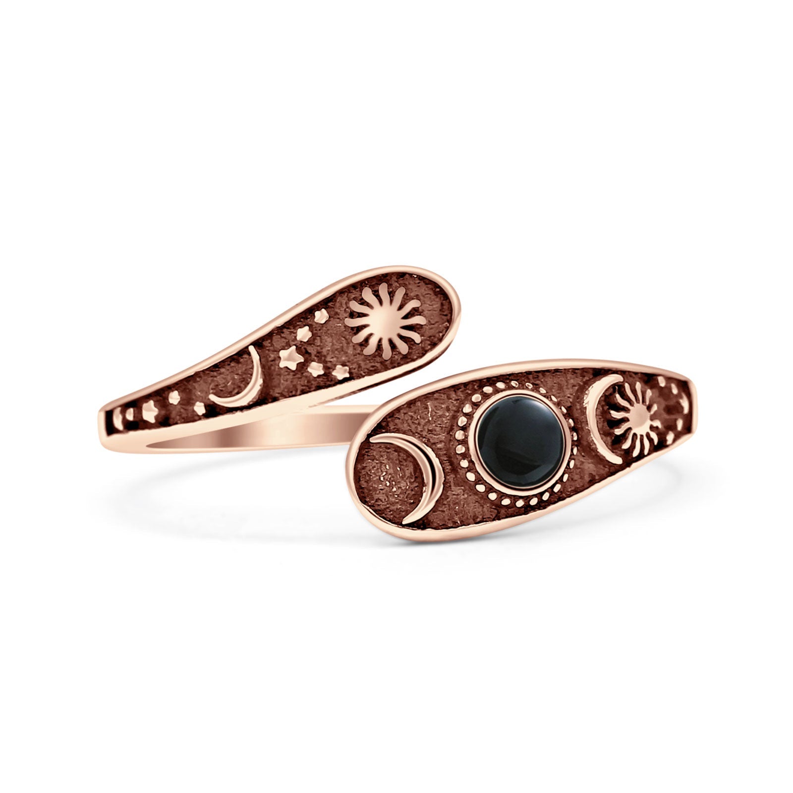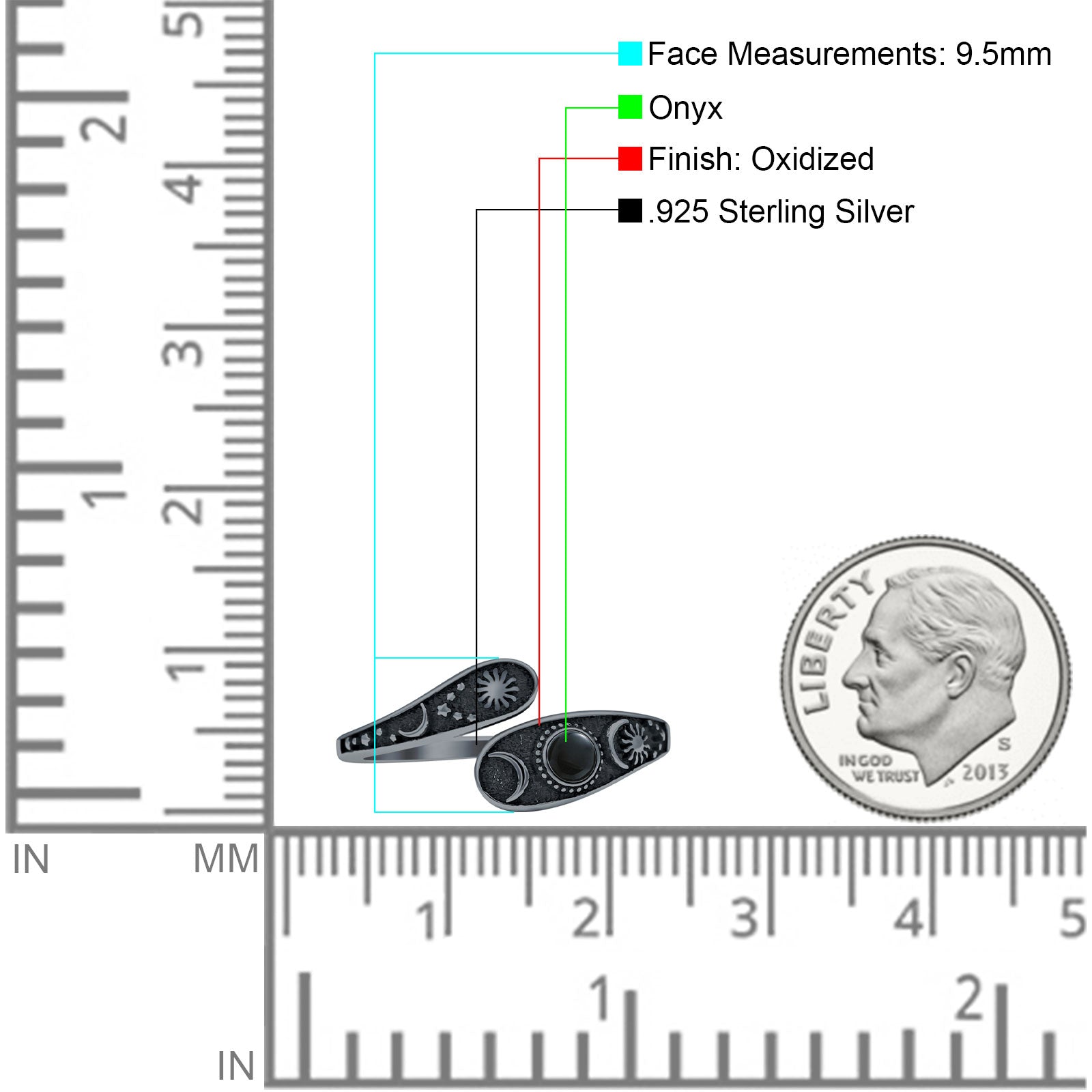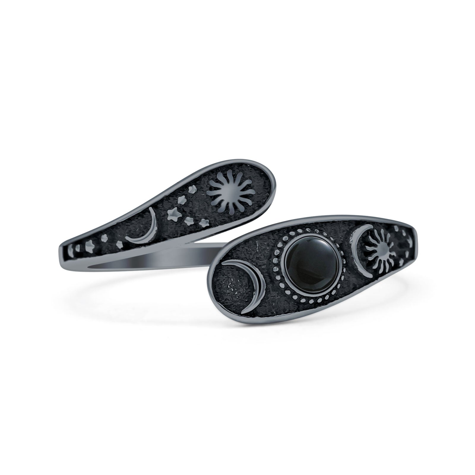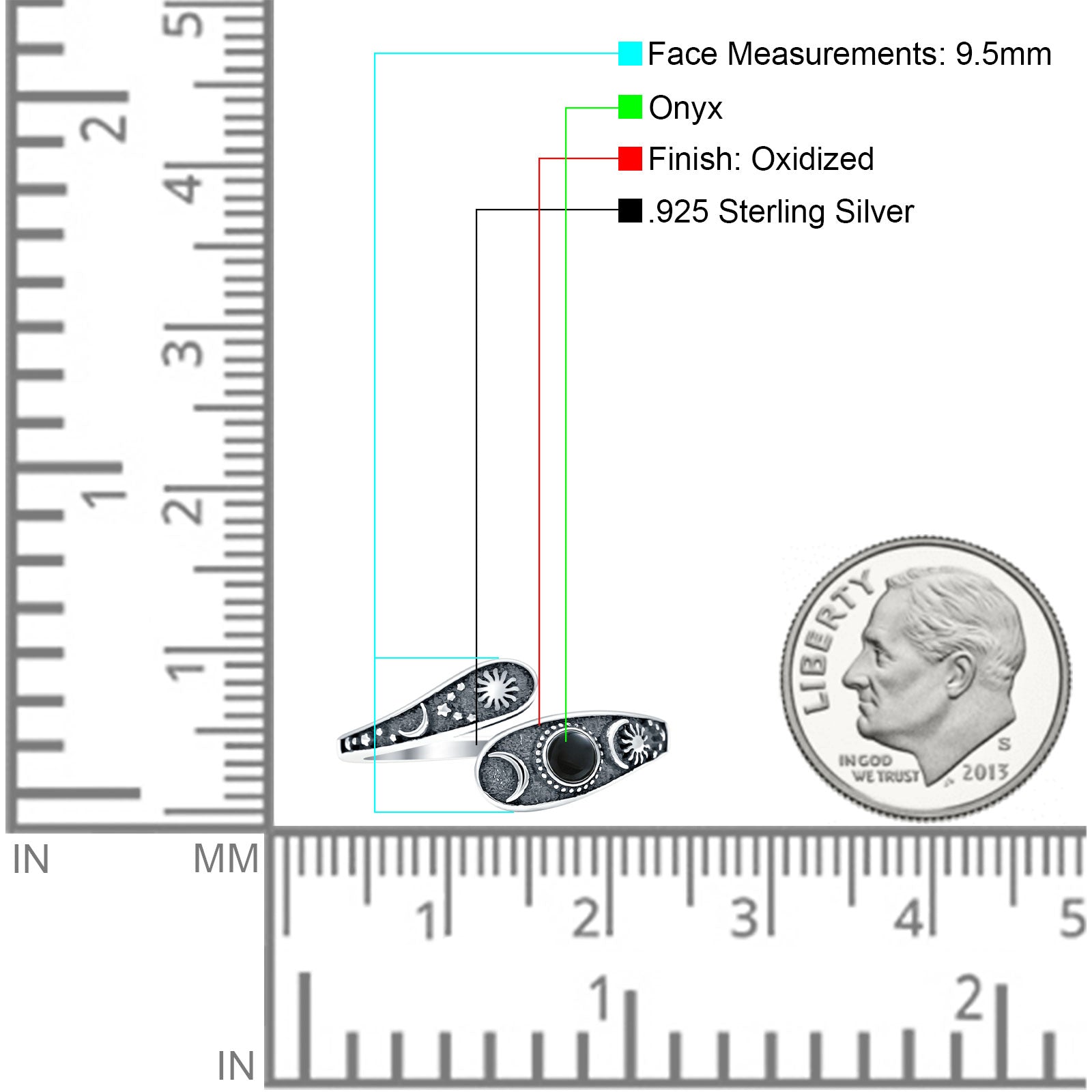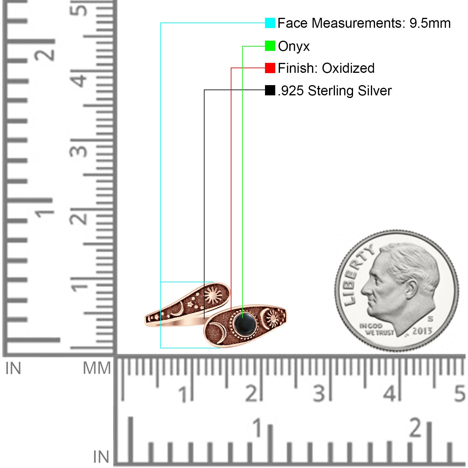 Minimalist 9.5mm Round Black Onyx Moon Sun Stars Ring Oxidized 925 Sterling Silver