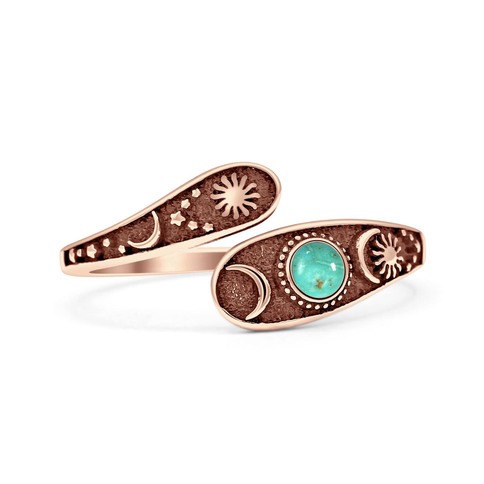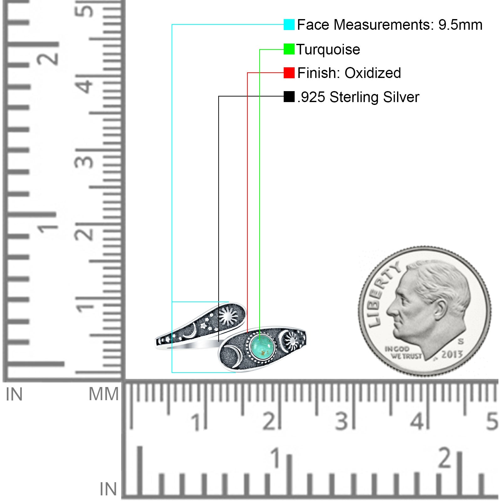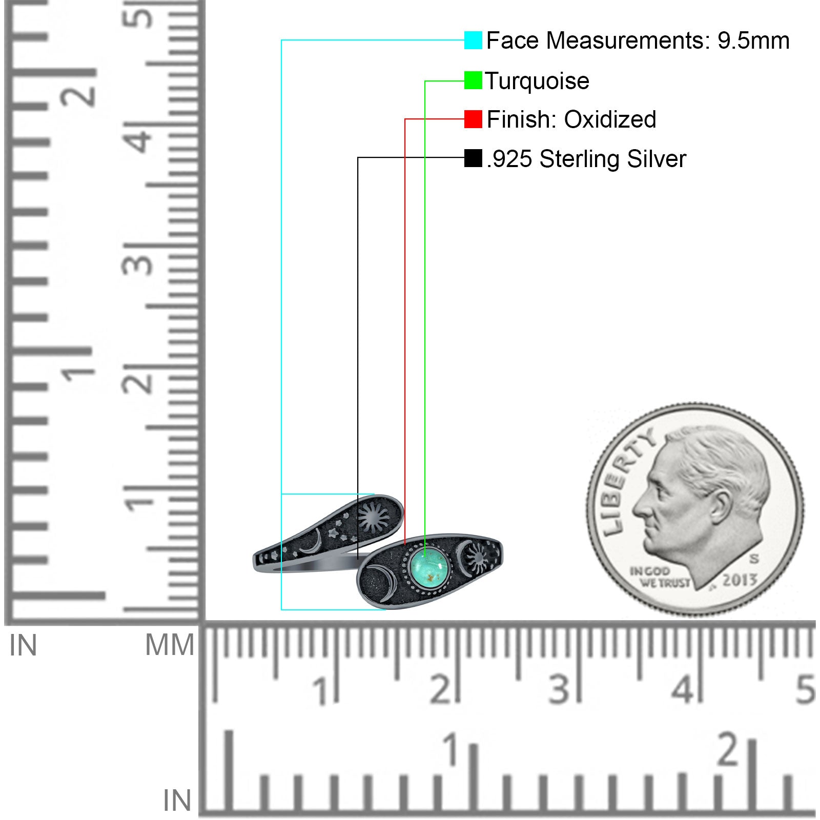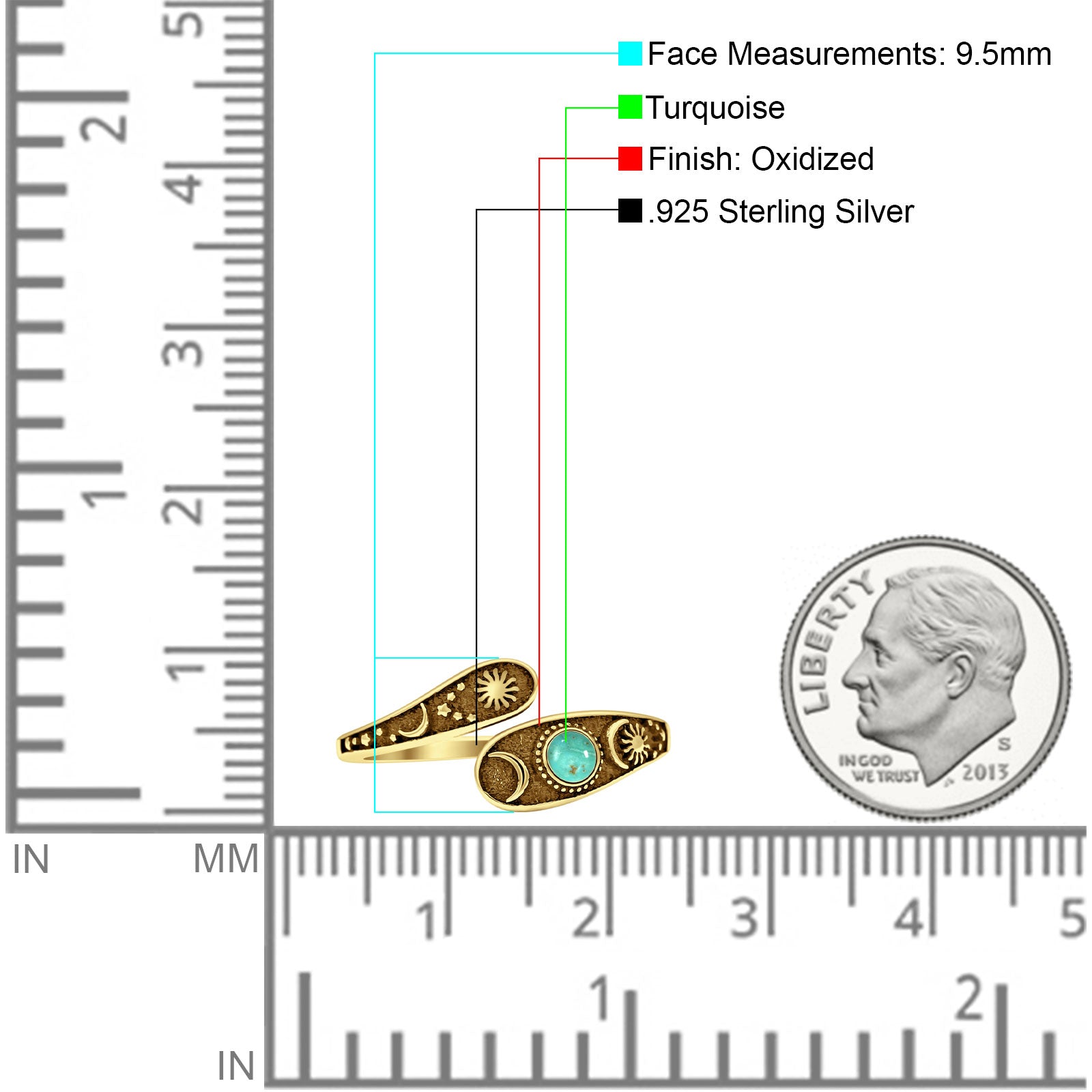 Minimalist 9.5mm Round Turquoise Moon Sun Stars Ring Oxidized 925 Sterling Silver