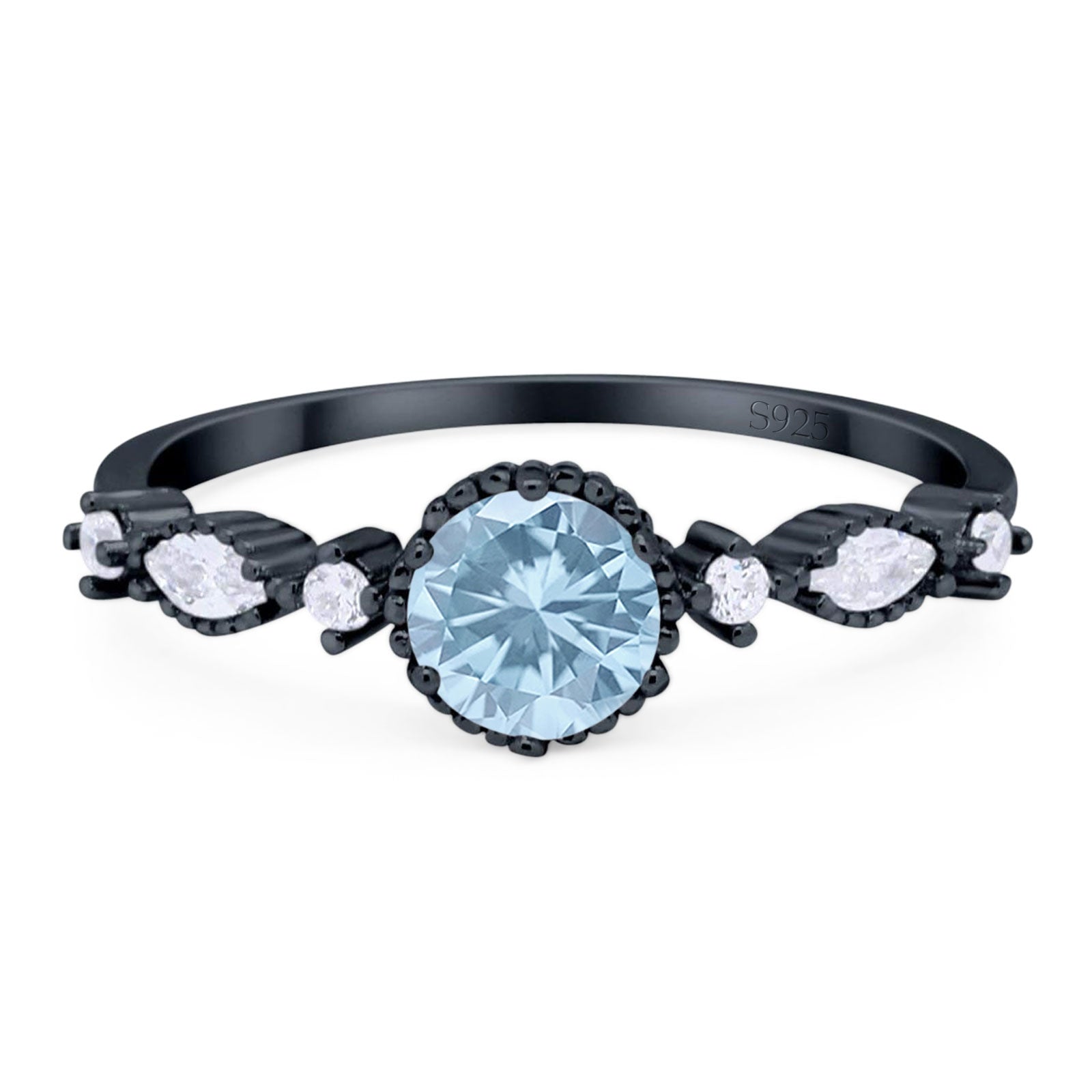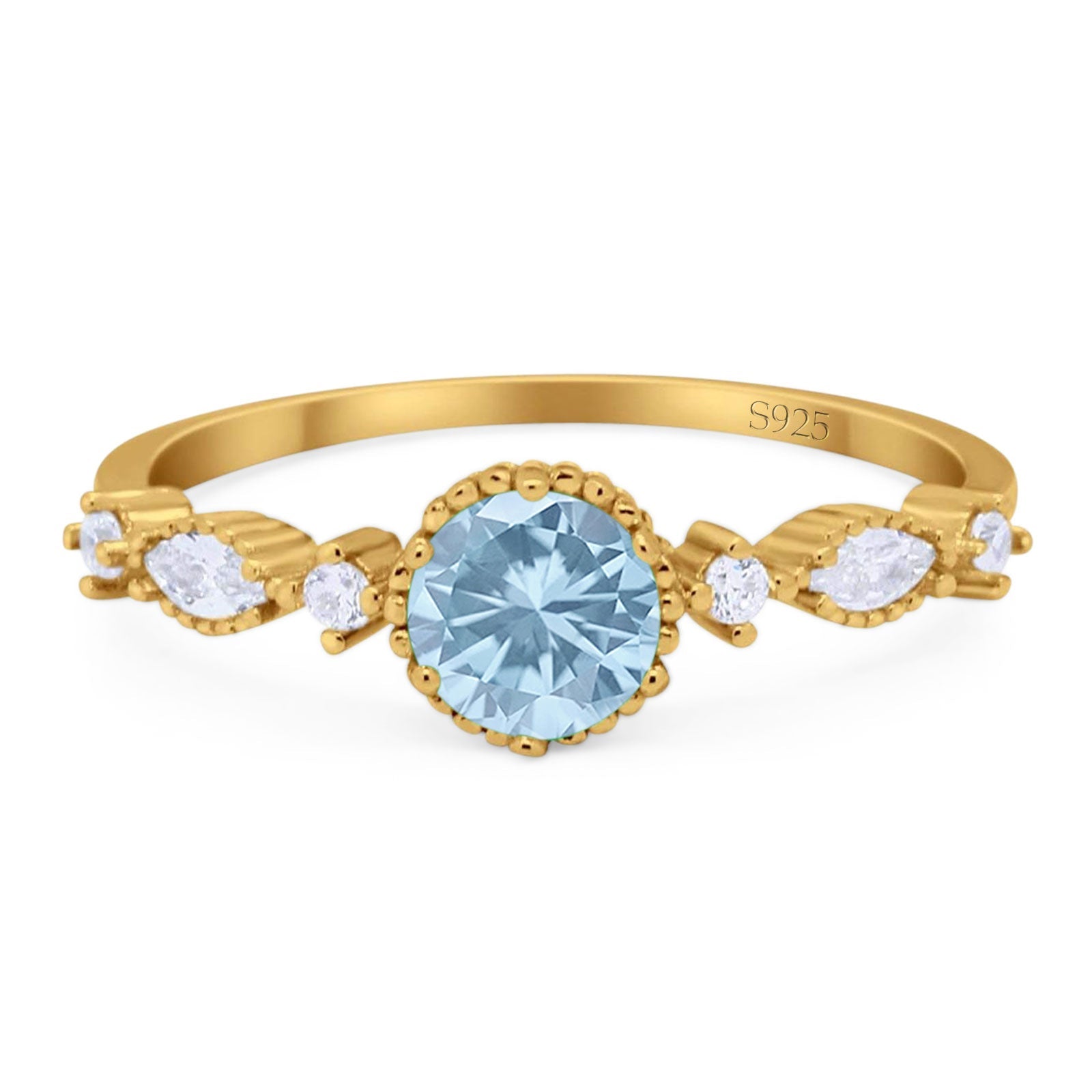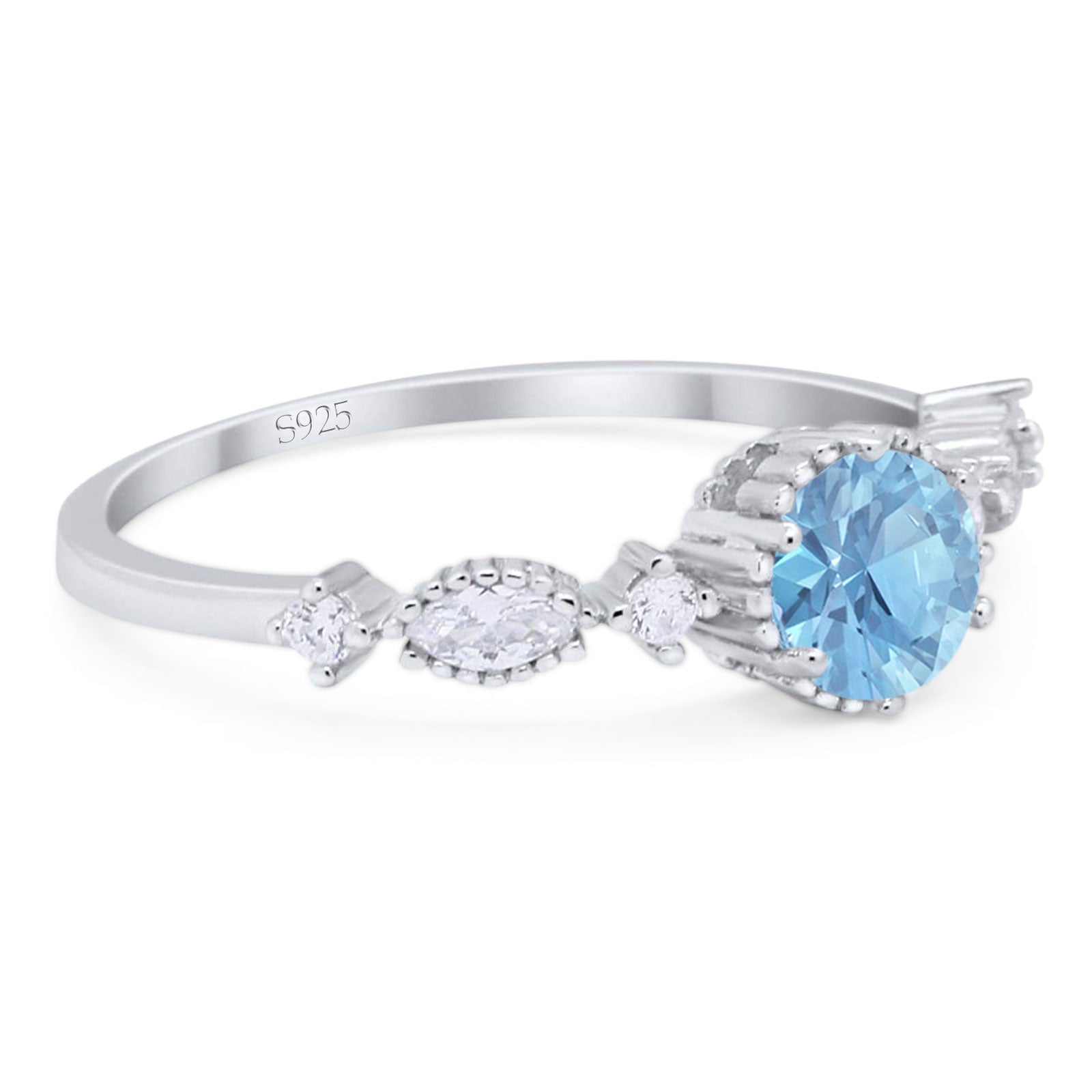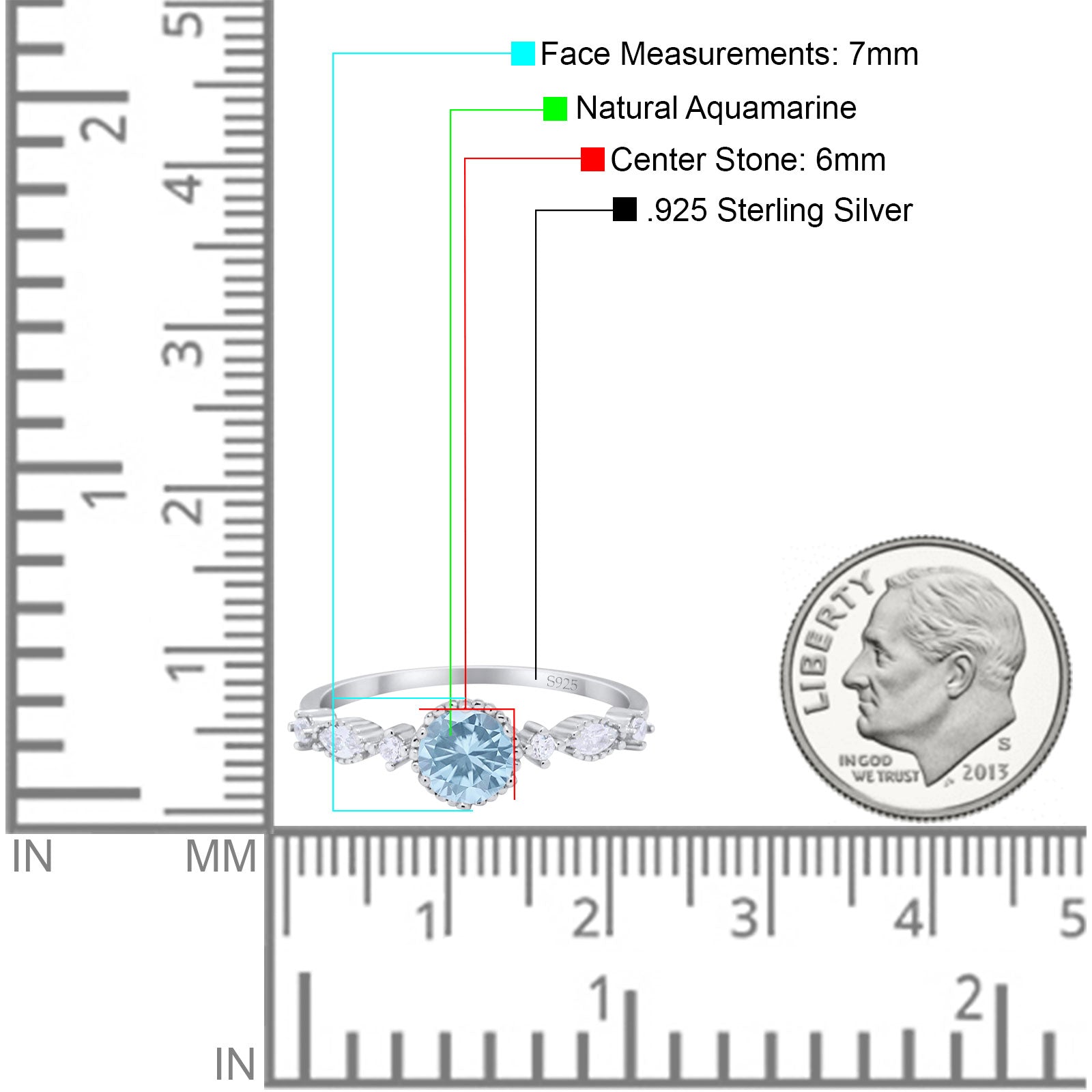 Minimalist Round Natural Aquamarine Beaded Ring 925 Sterling Silver