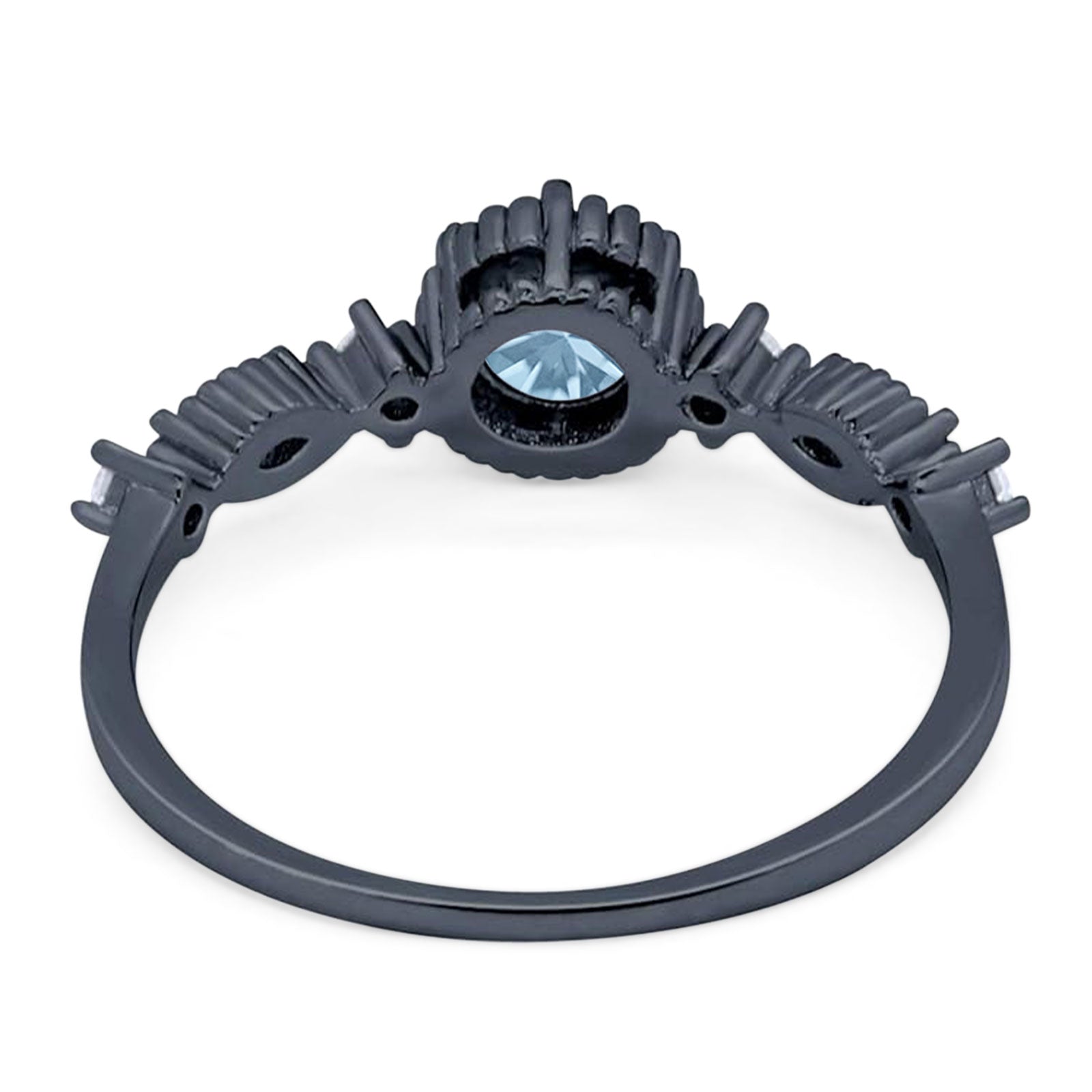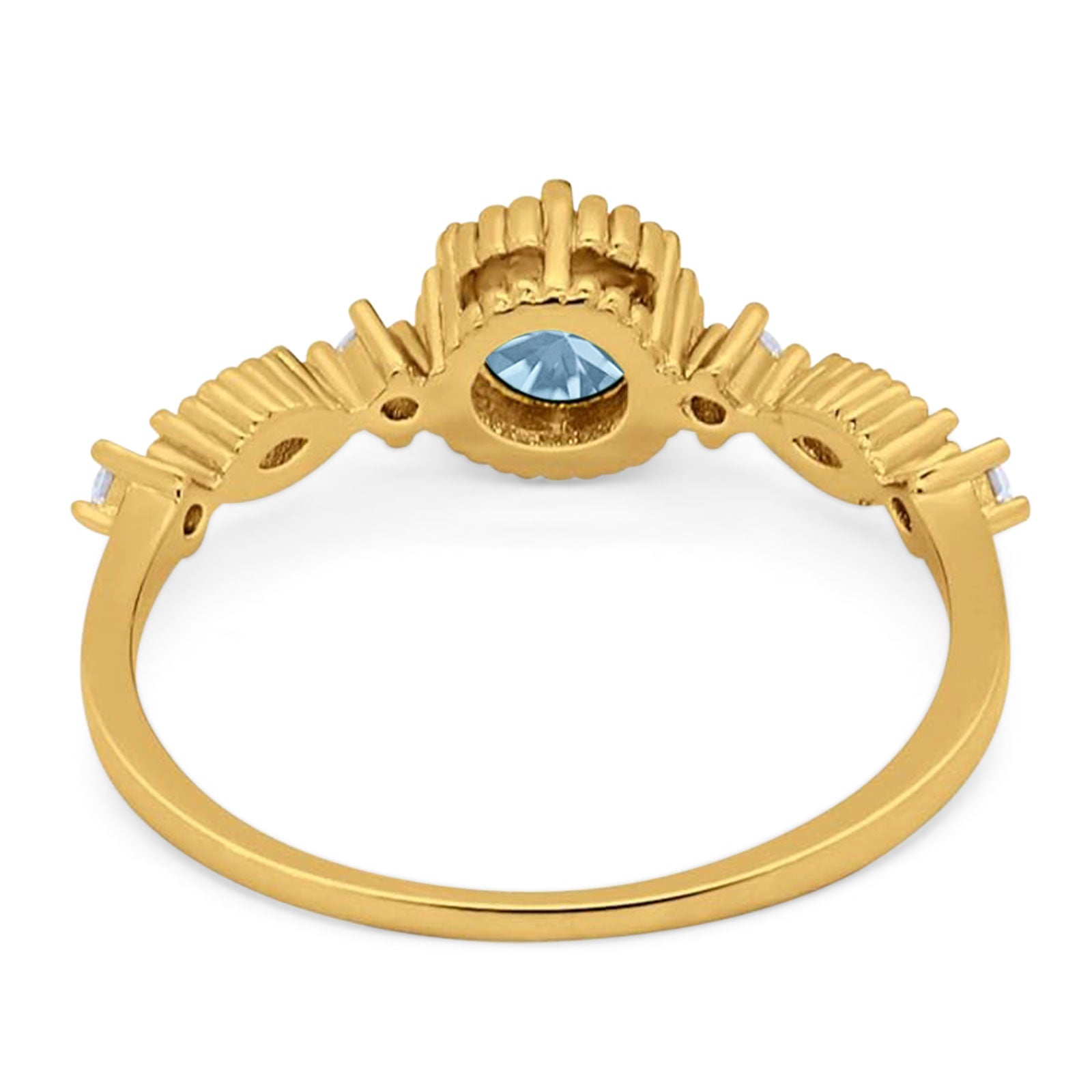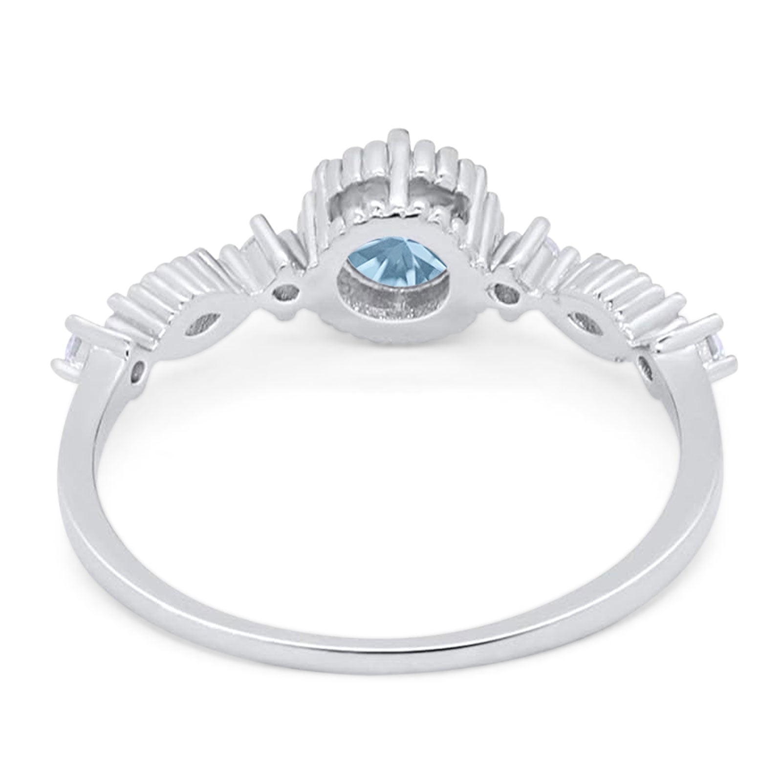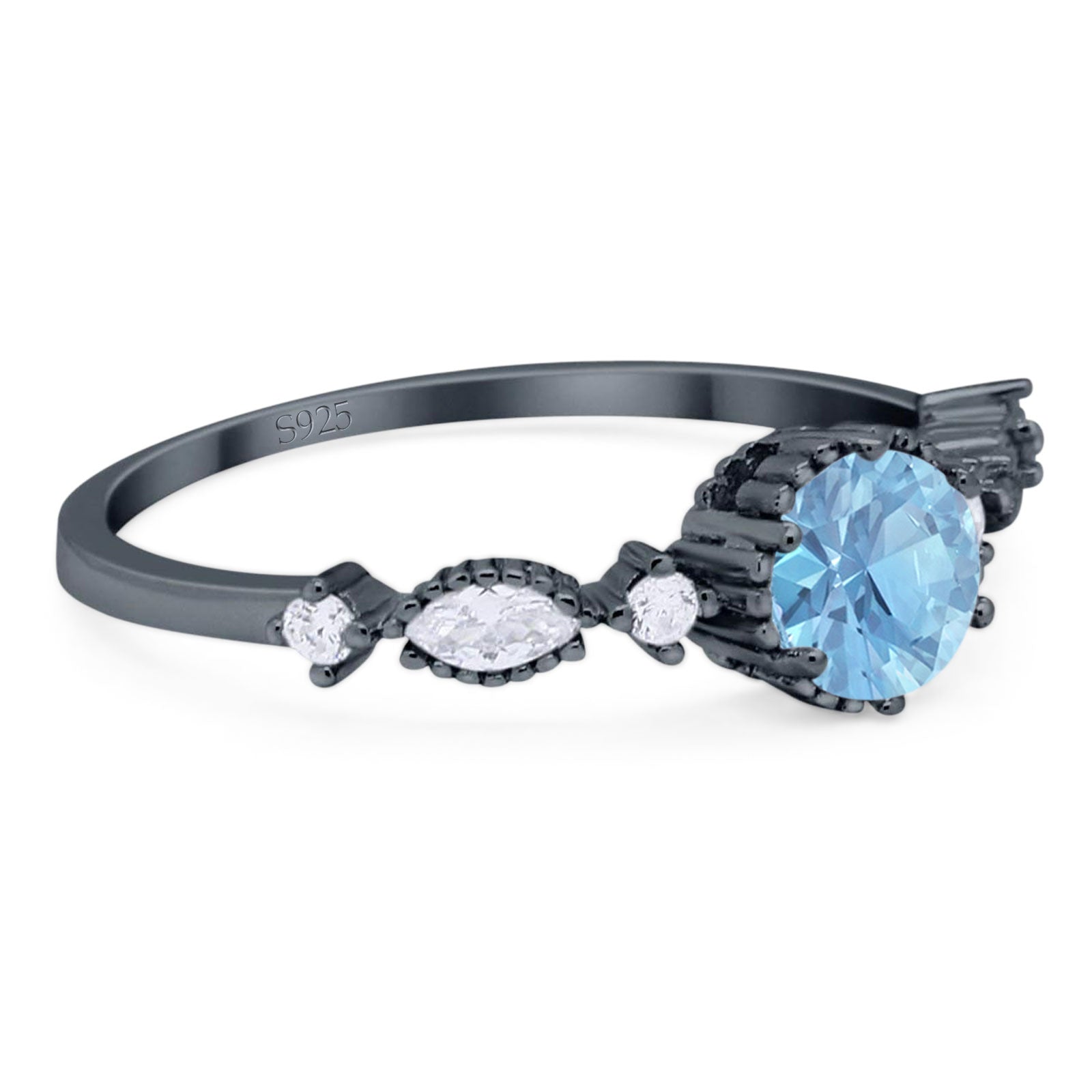 Minimalist Round Natural Aquamarine Beaded Ring 925 Sterling Silver