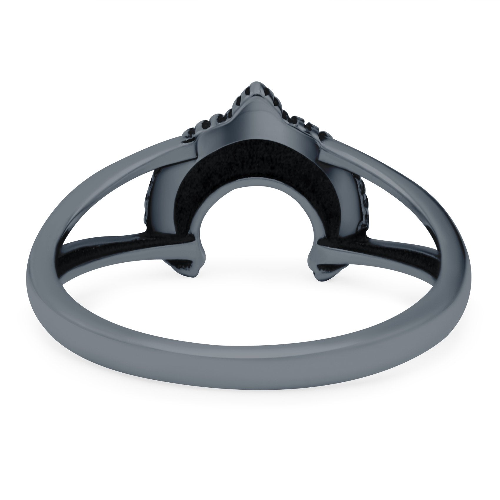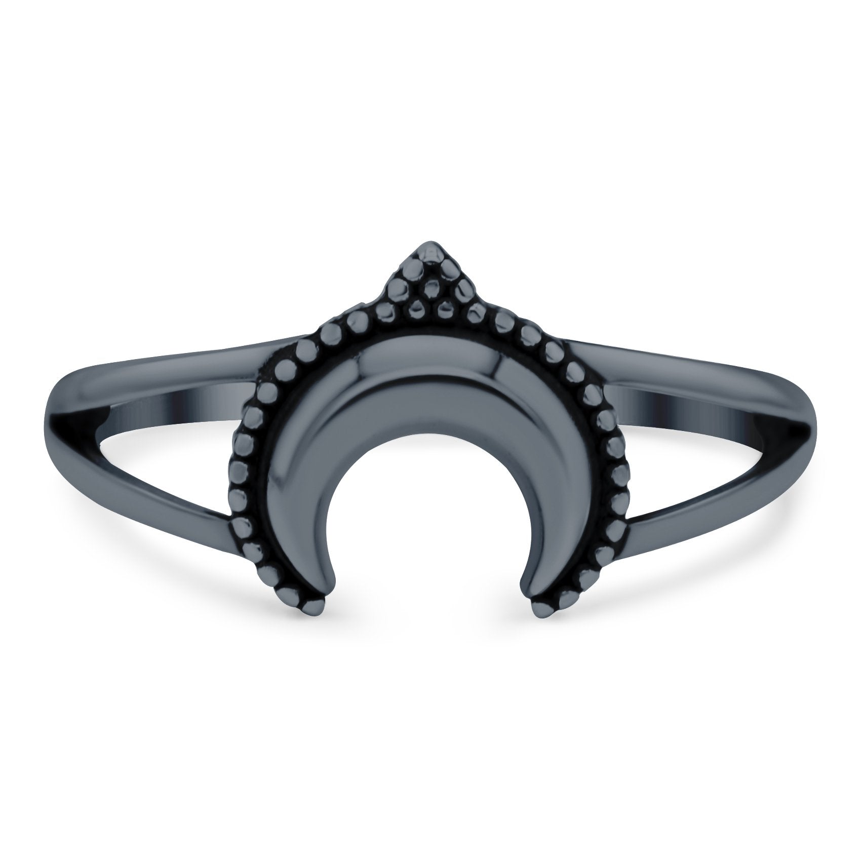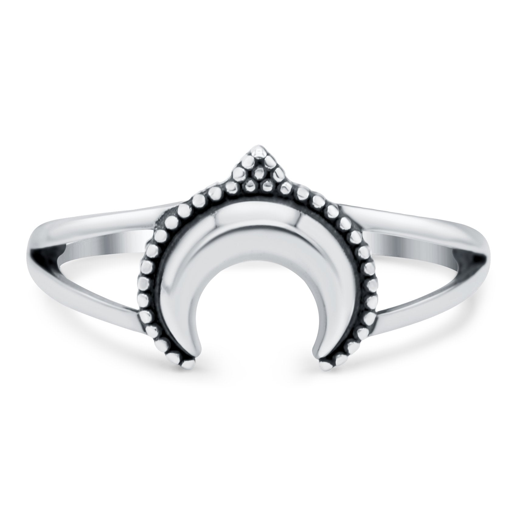 Moon Ring Oxidized Band Solid 925 Sterling Silver Thumb Ring (10mm)