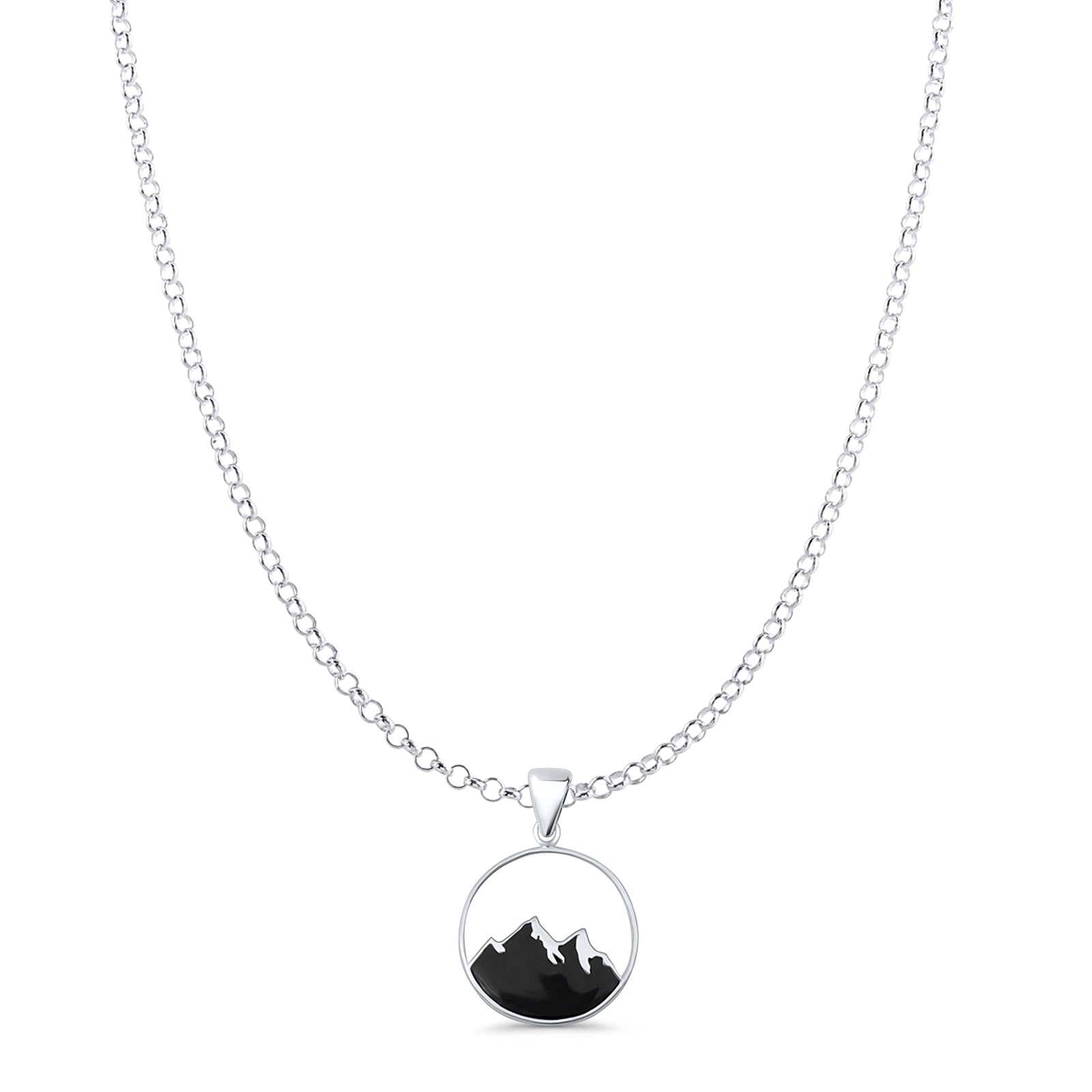 Mountain Silhoutte Pendant Oxidized Rolo Chain Necklace 925 Sterling Silver