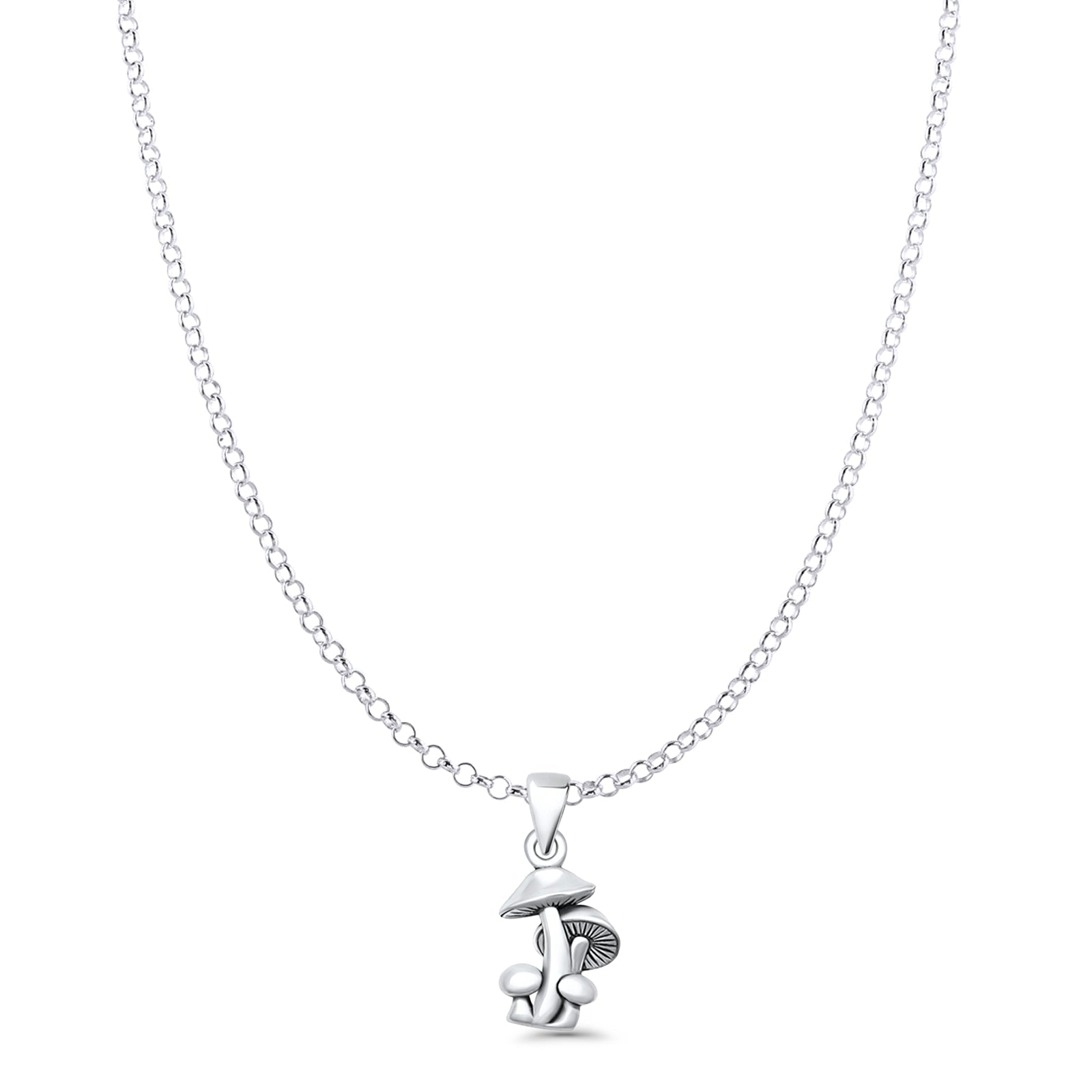 Mushrooms Pendant Oxidized Rolo Chain Necklace 925 Sterling Silver