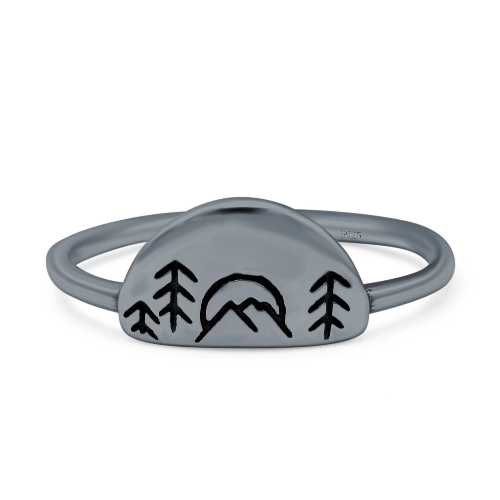 Nature Ring Oxidized Band Solid 925 Sterling Silver Thumb Ring (7mm)