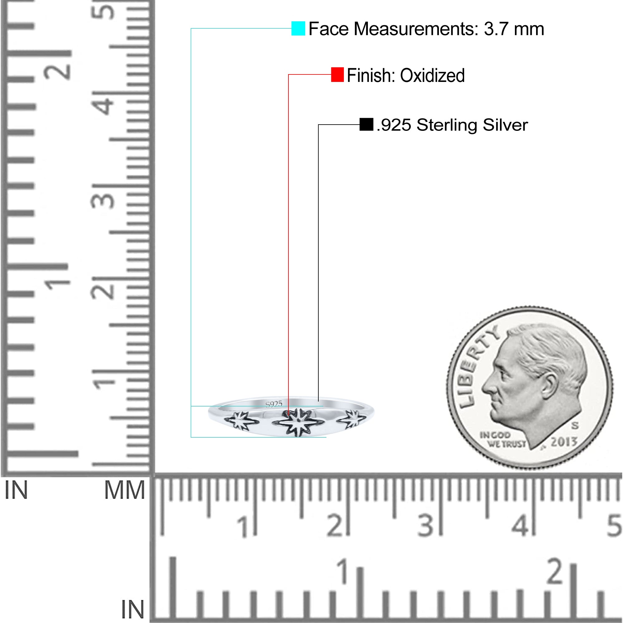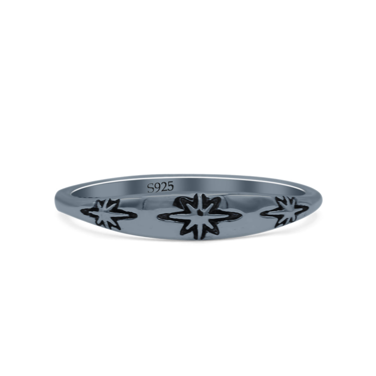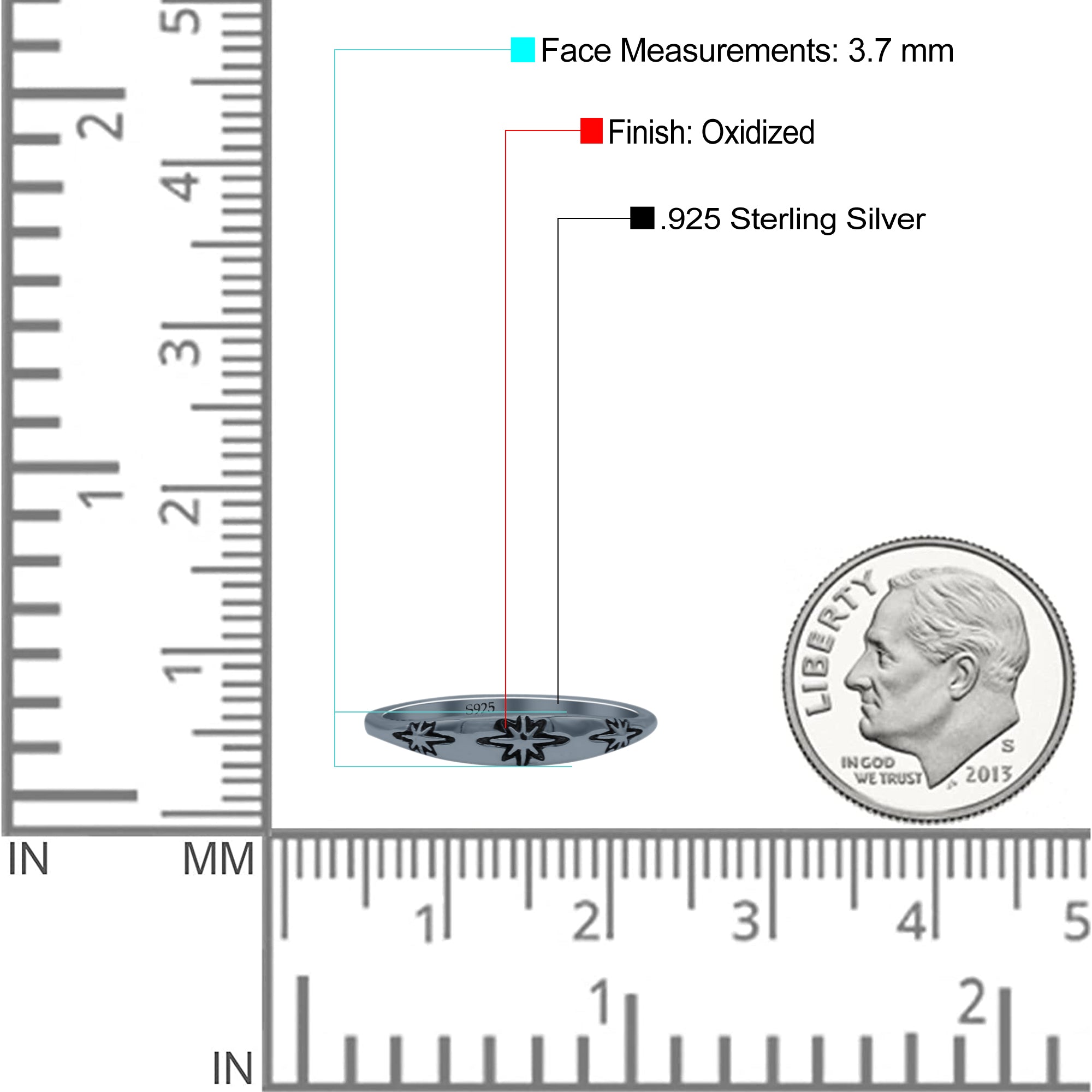 North Star Ring Oxidized Solid 925 Sterling Silver (3.7mm)