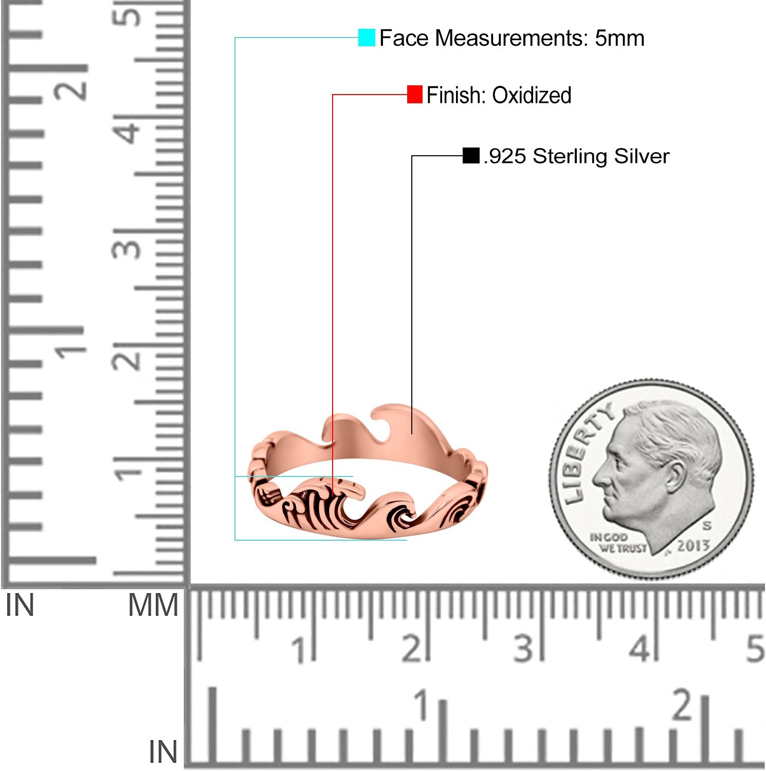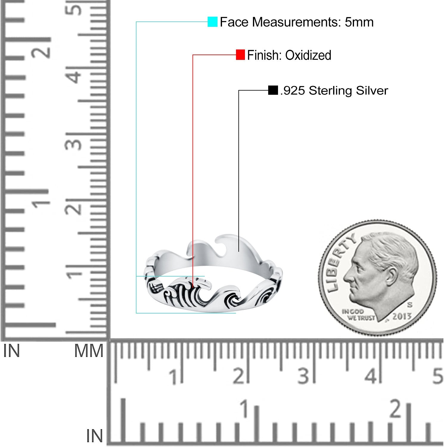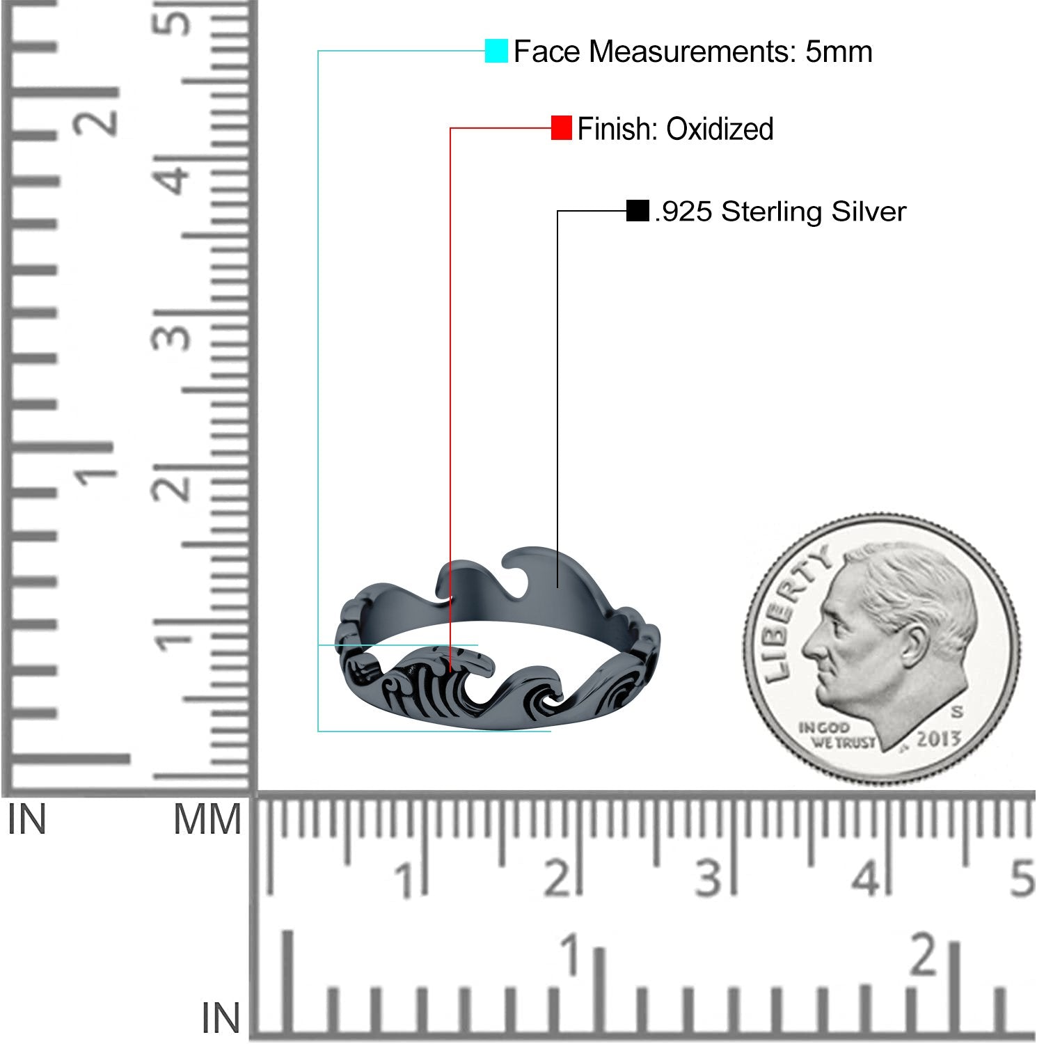 Ocean Waves Band Oxidized Ring Solid 925 Sterling Silver Thumb Ring (5mm)