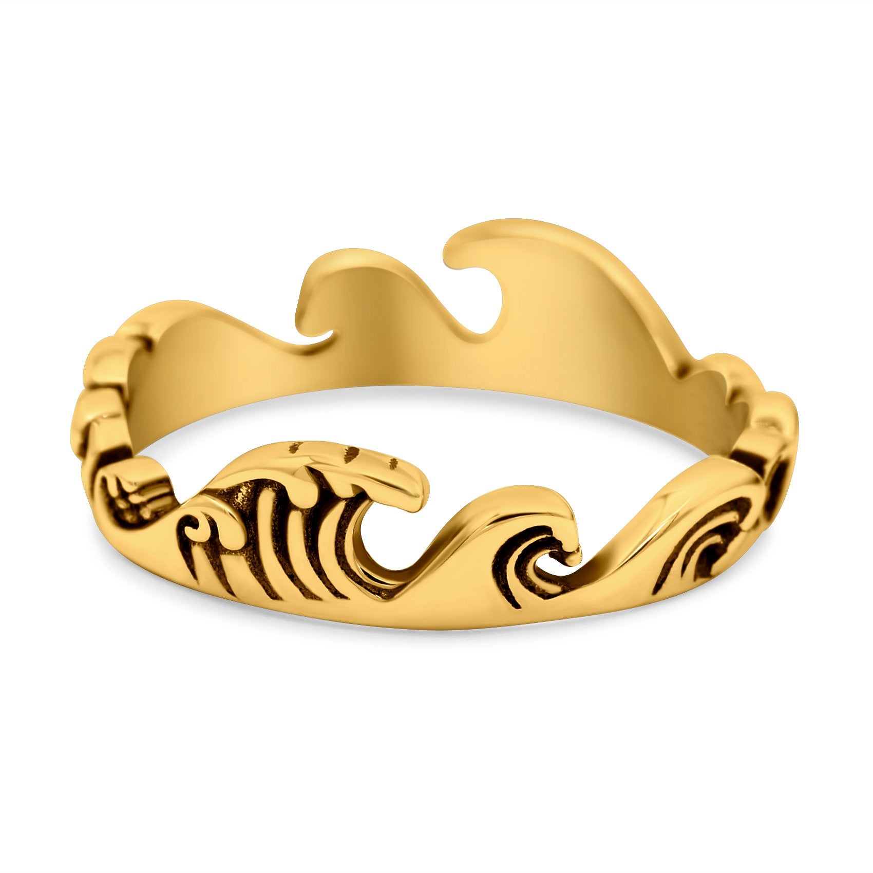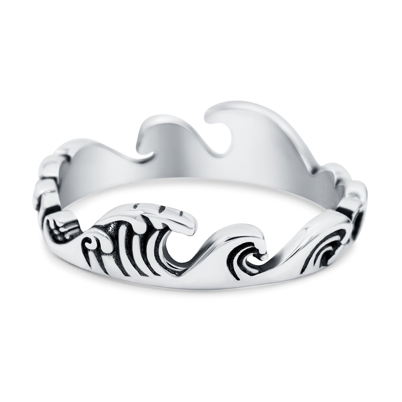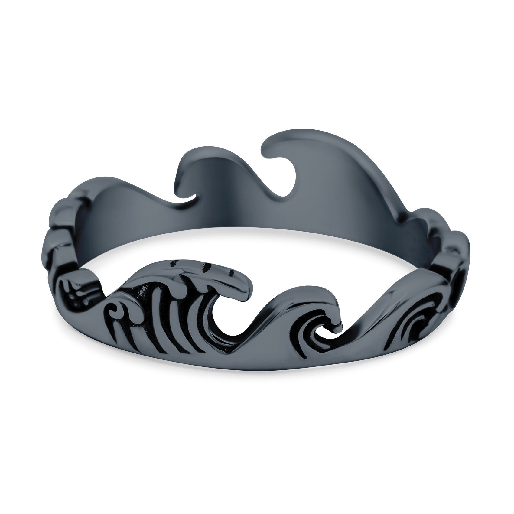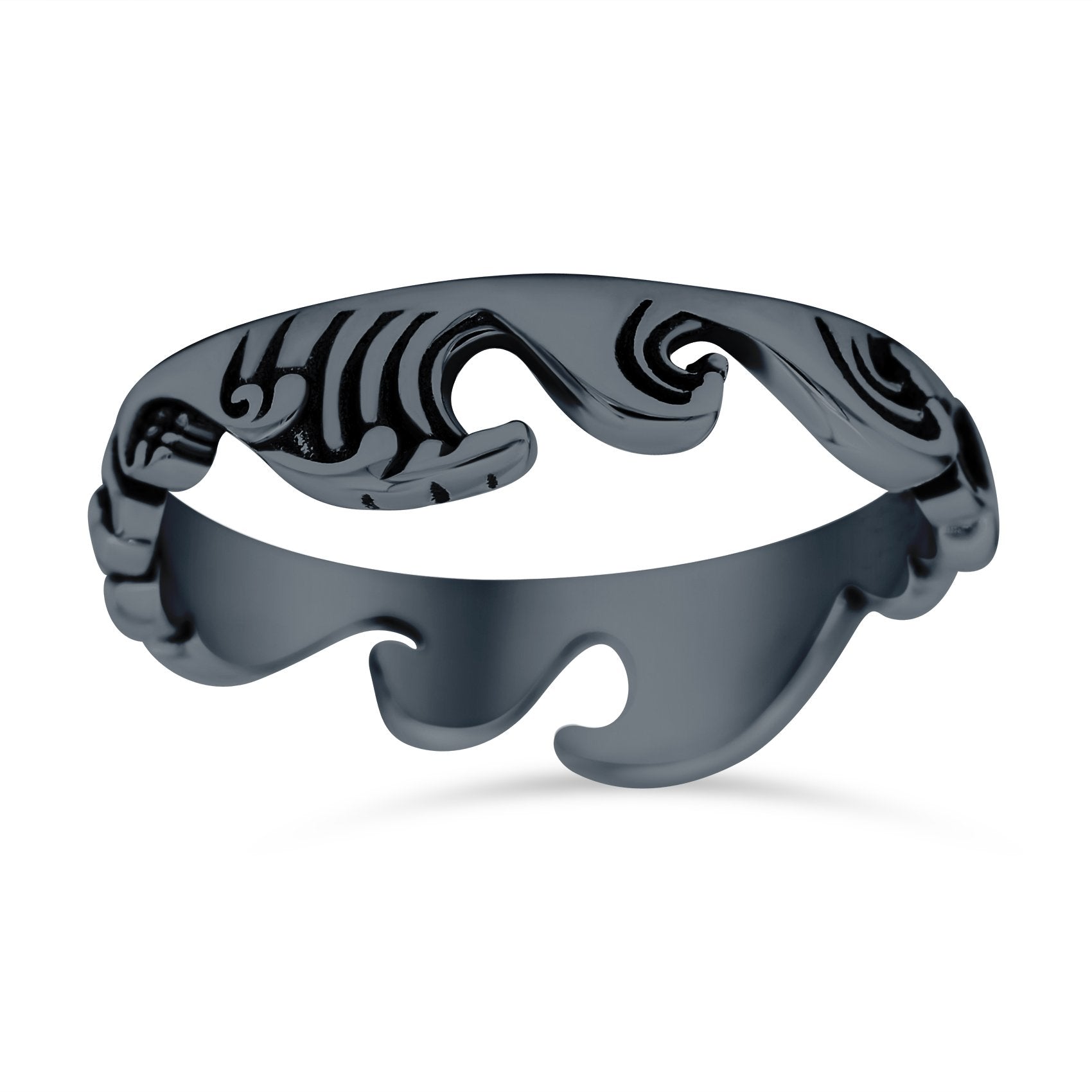 Ocean Waves Band Oxidized Ring Solid 925 Sterling Silver Thumb Ring (5mm)